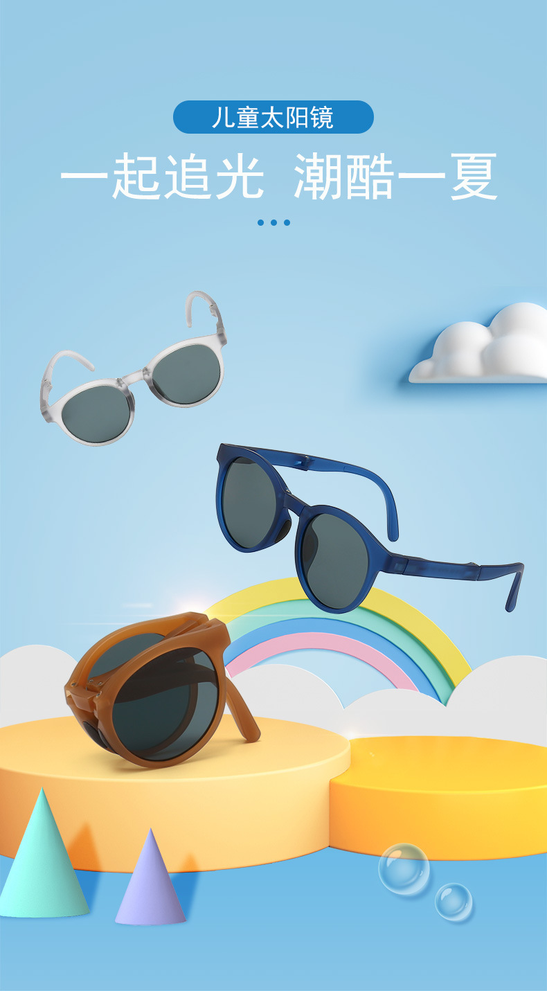 새로운 접는 어린이 선글라스 둥근 프레임 편광 선글라스 아기 선글라스 9-078 공장 도매스토어 가기