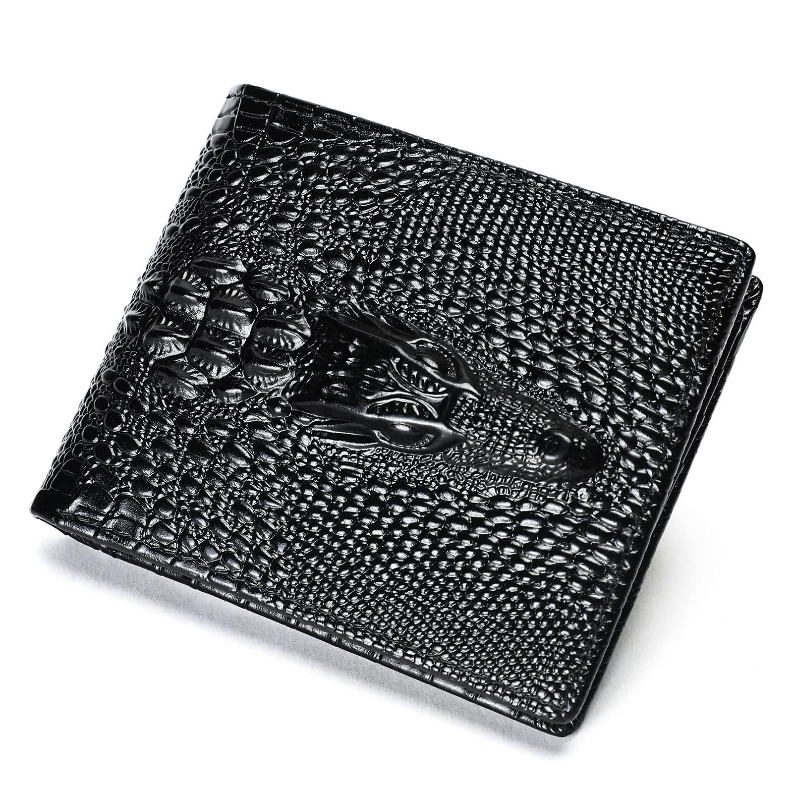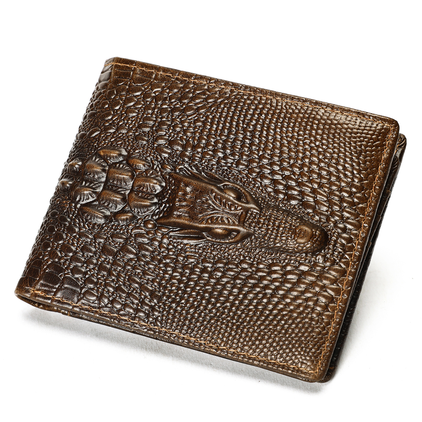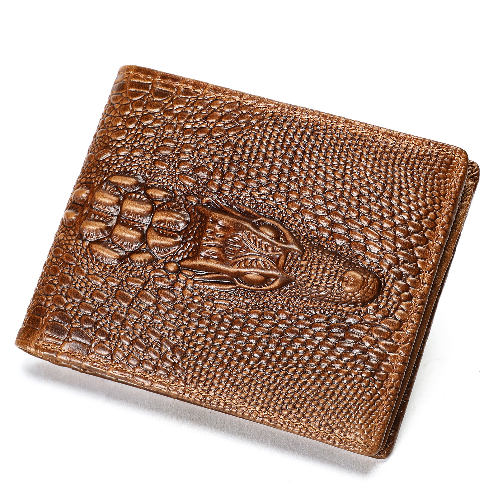 NIUCUNZH 빈티지 악어-인쇄 Cowhide 지갑 탑 레이어 Cowhide 짧은 골드 클립 멀티 카드 지갑스토어 가기