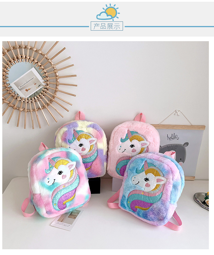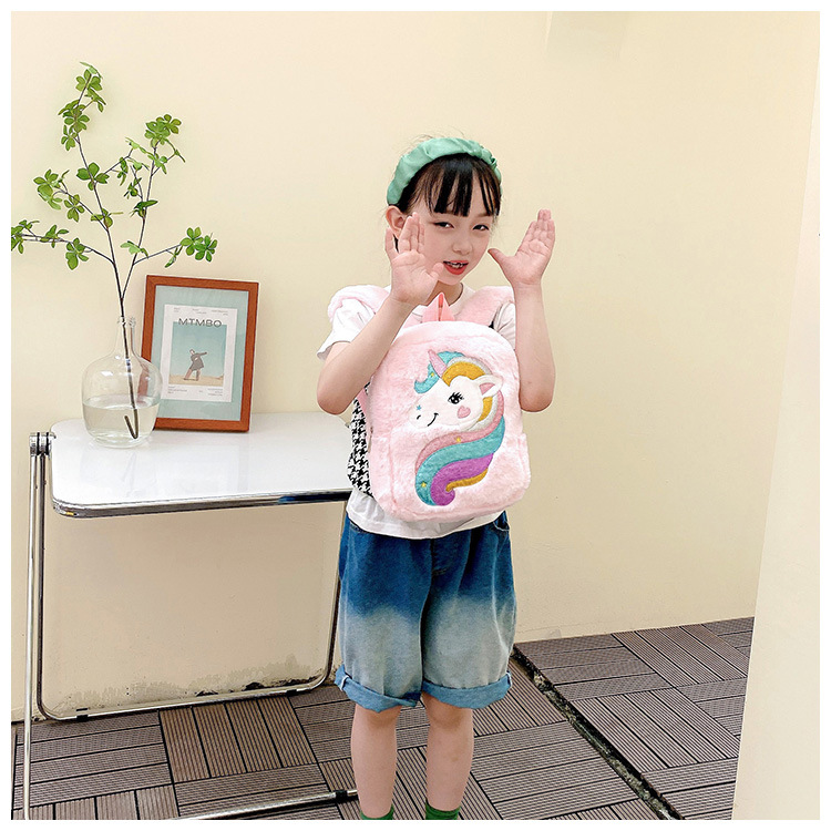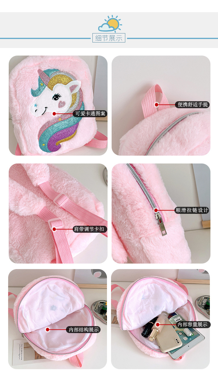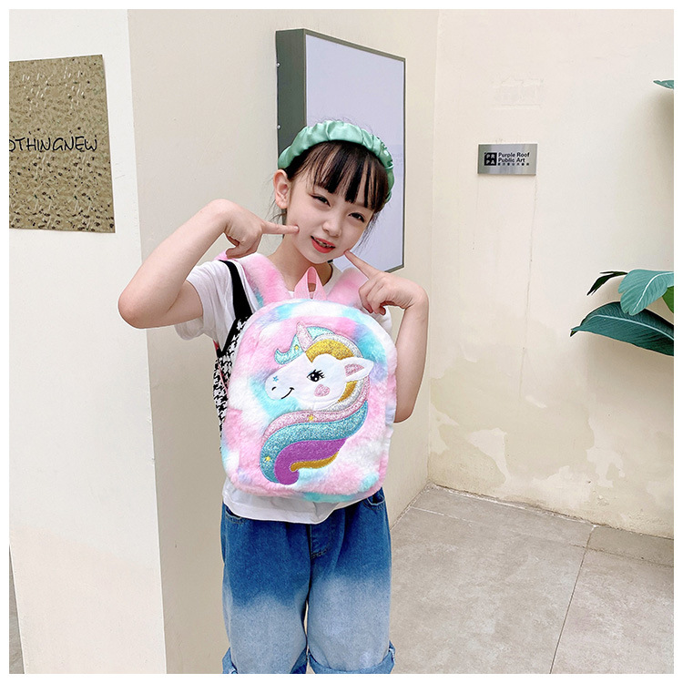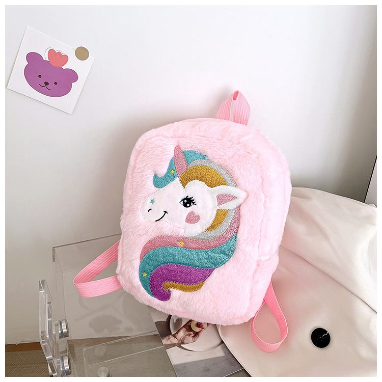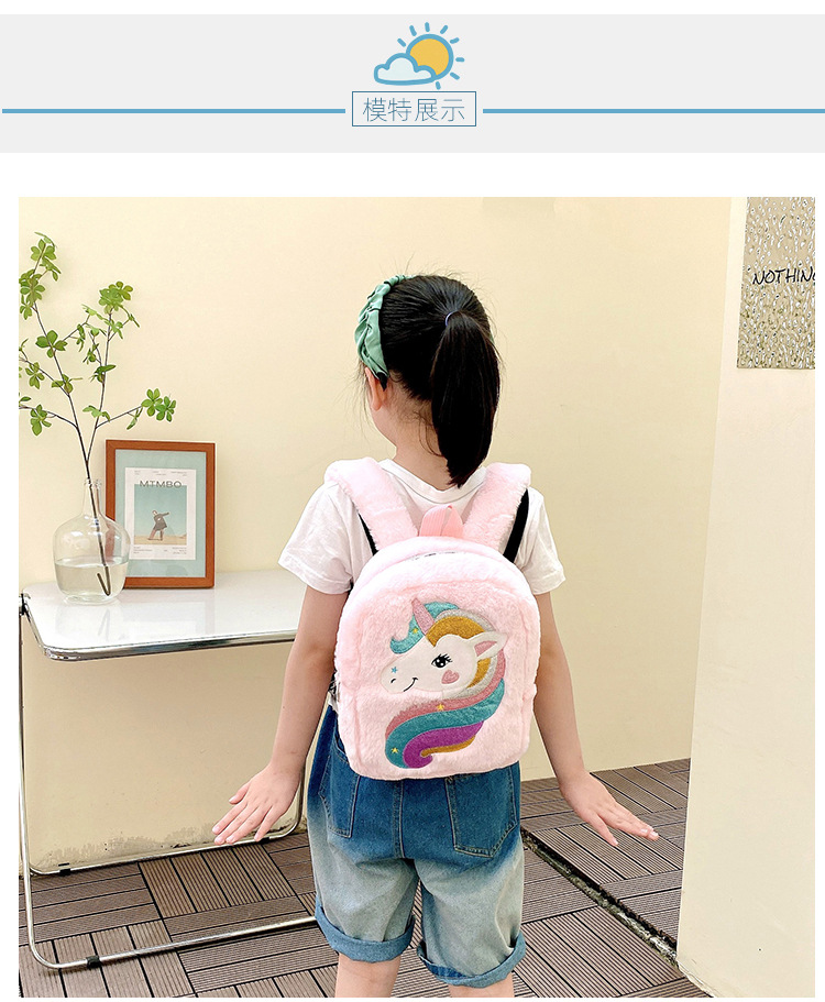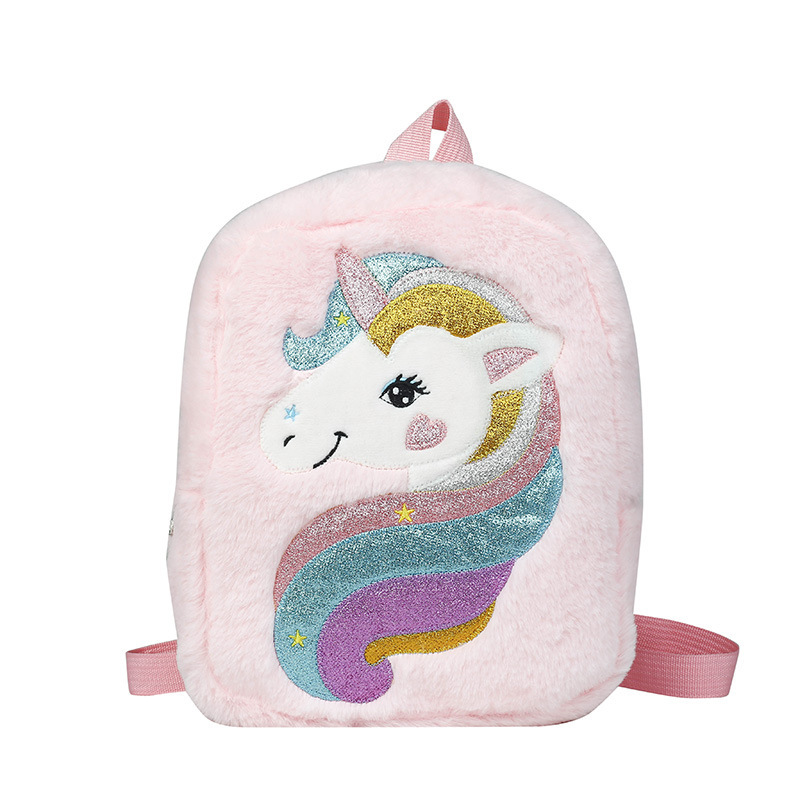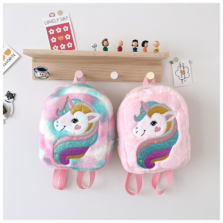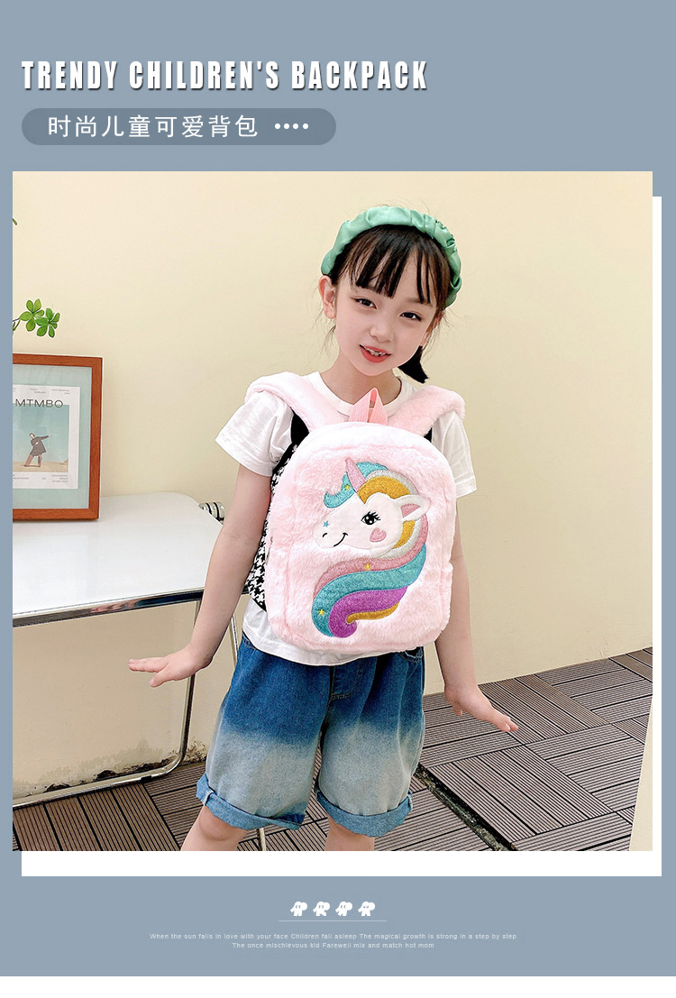 新款绣花独角兽卡通毛绒双肩背包大容量女童双肩包幼儿园可爱书包