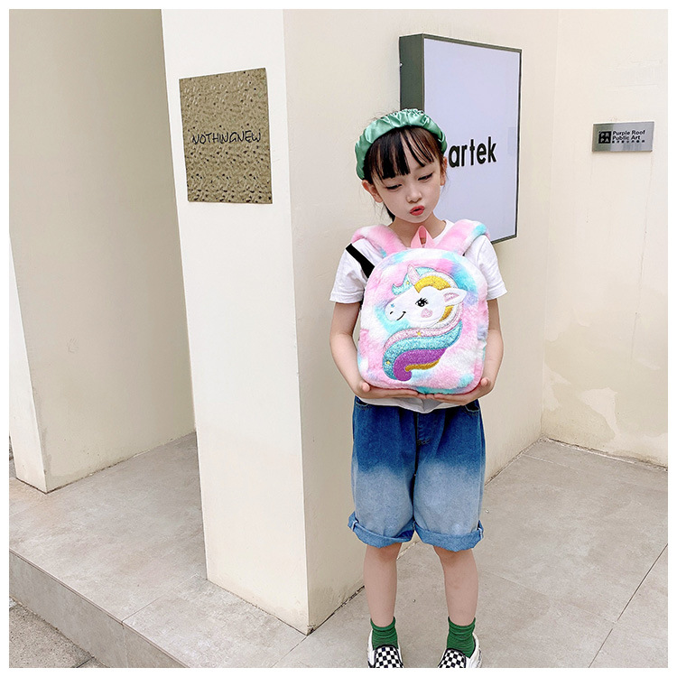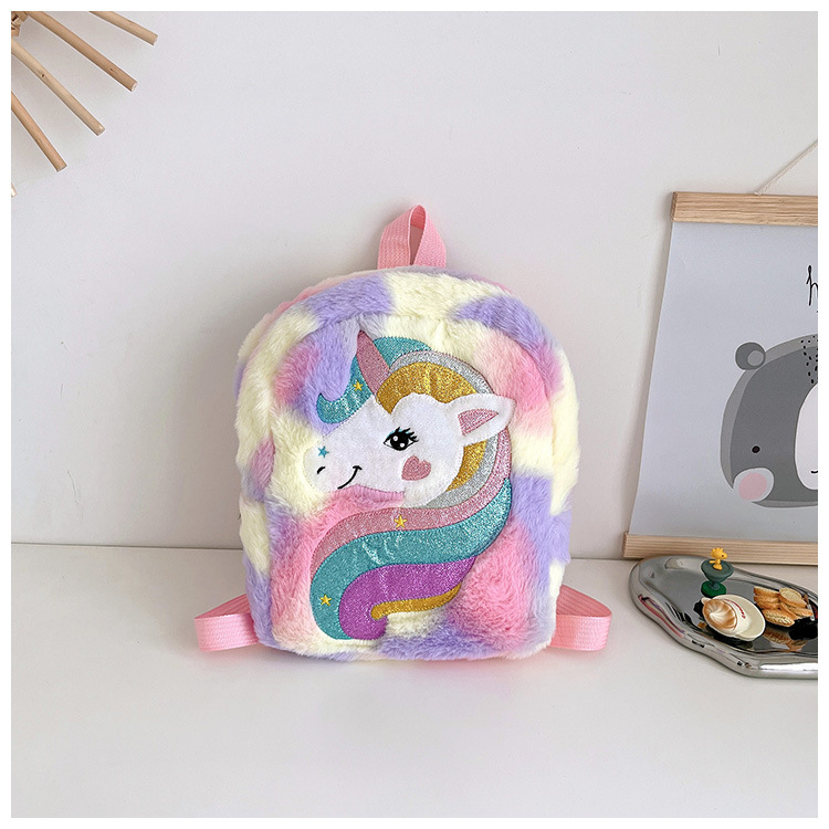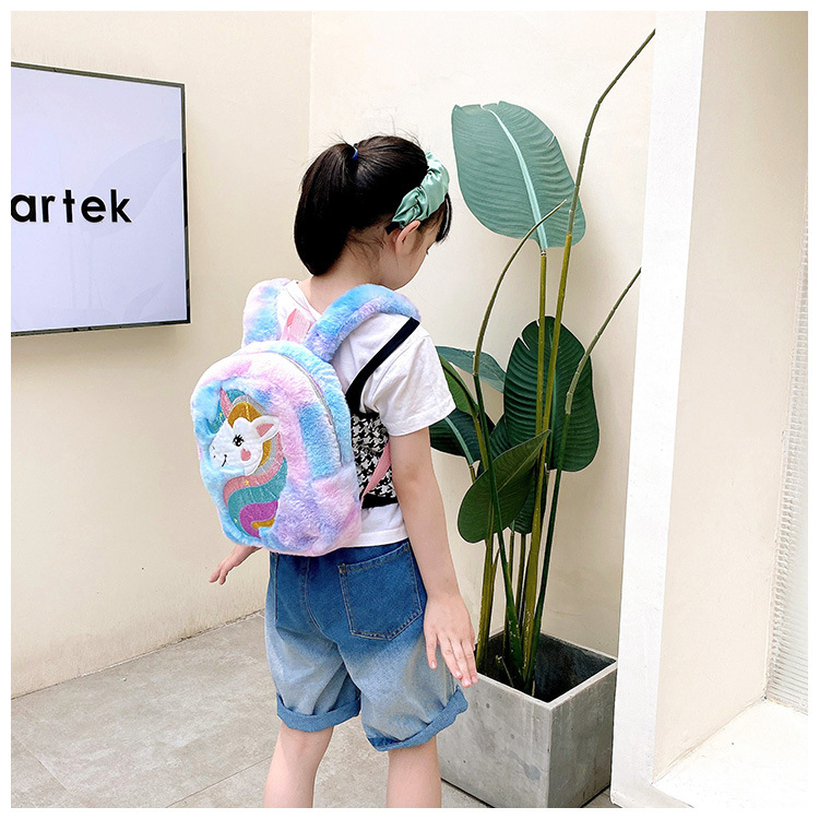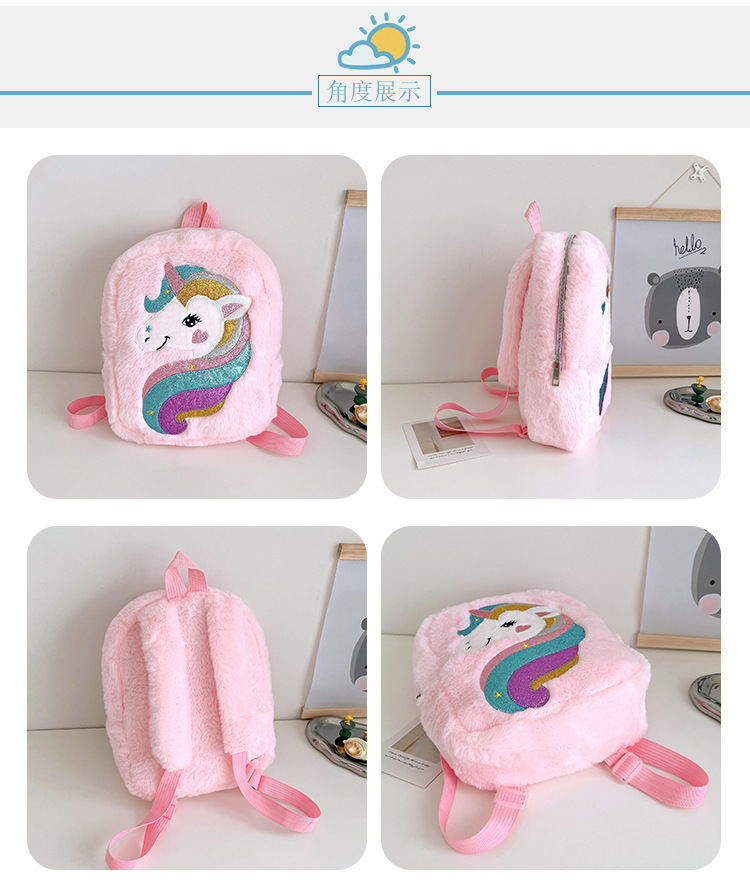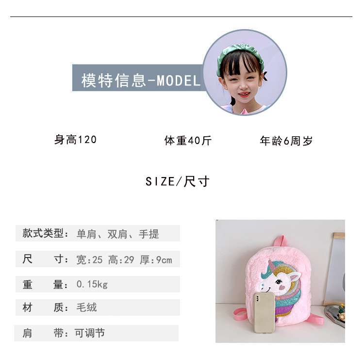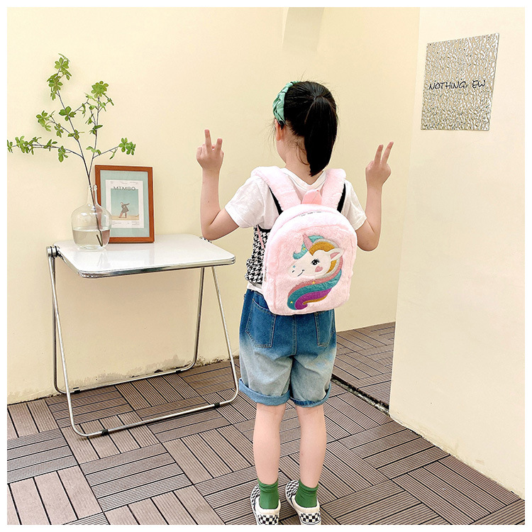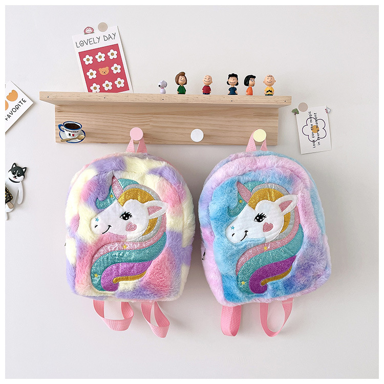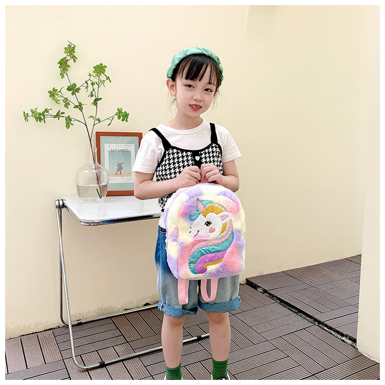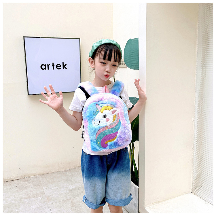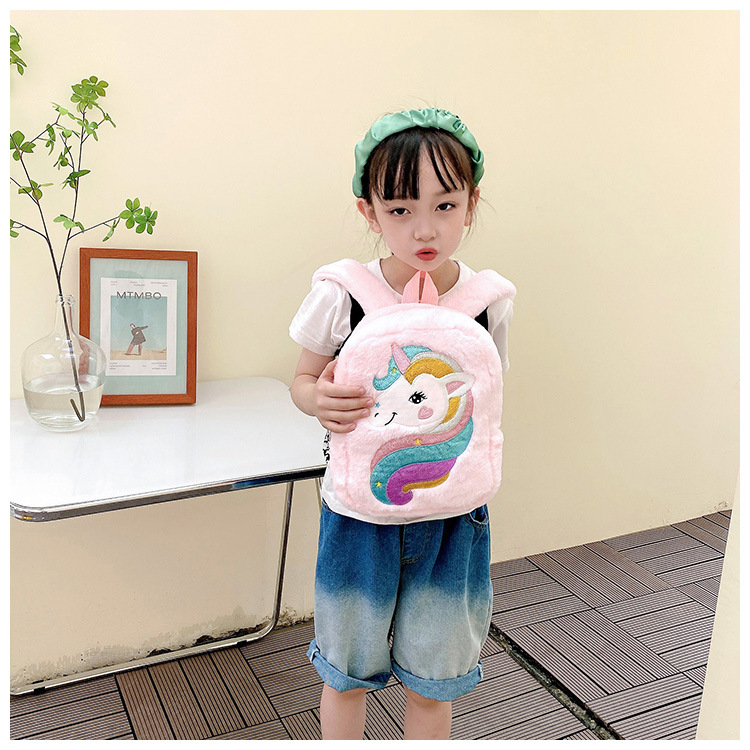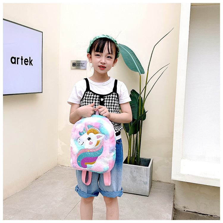 新款绣花独角兽卡通毛绒双肩背包大容量女童双肩包幼儿园可爱书包