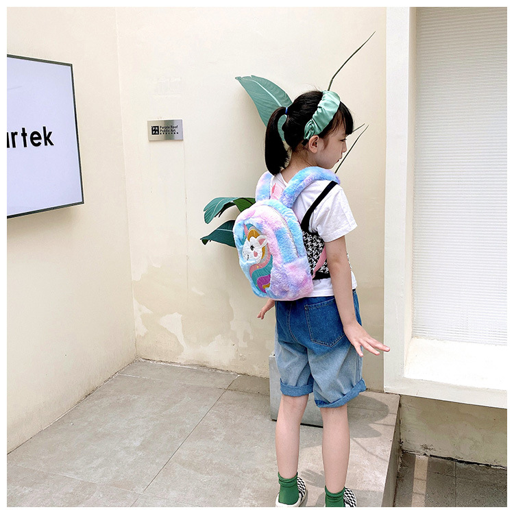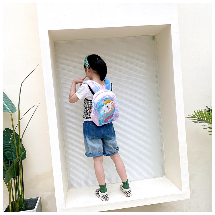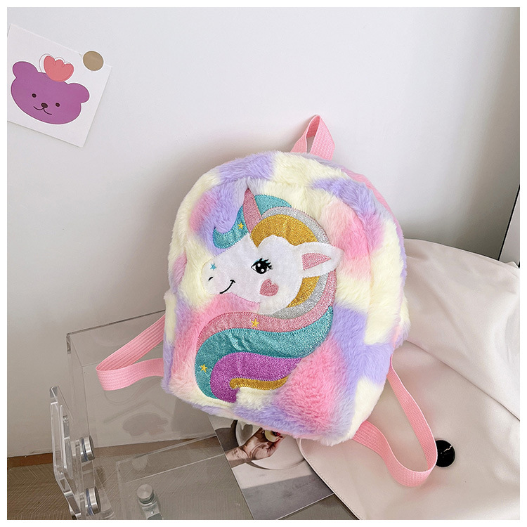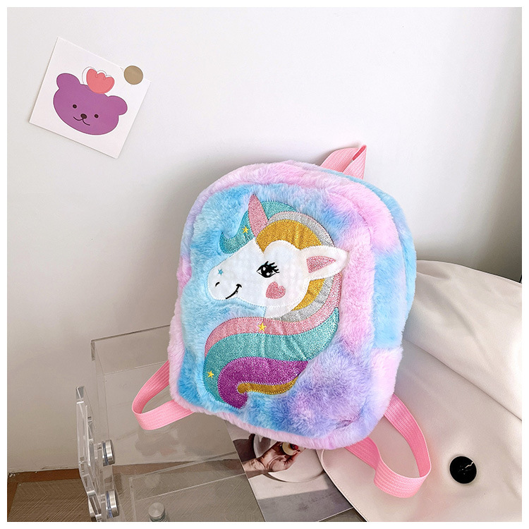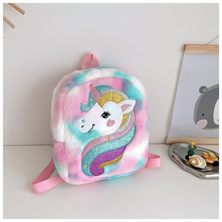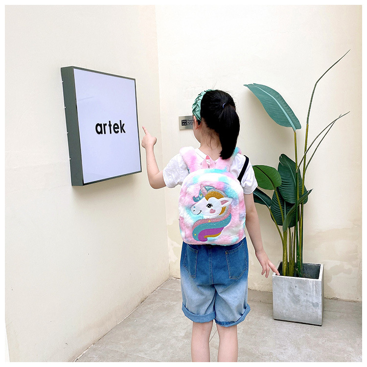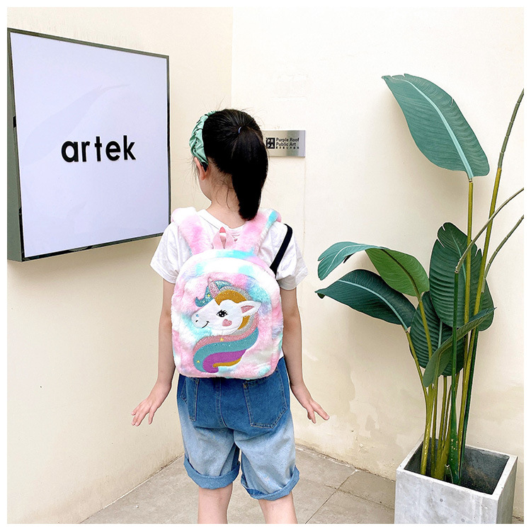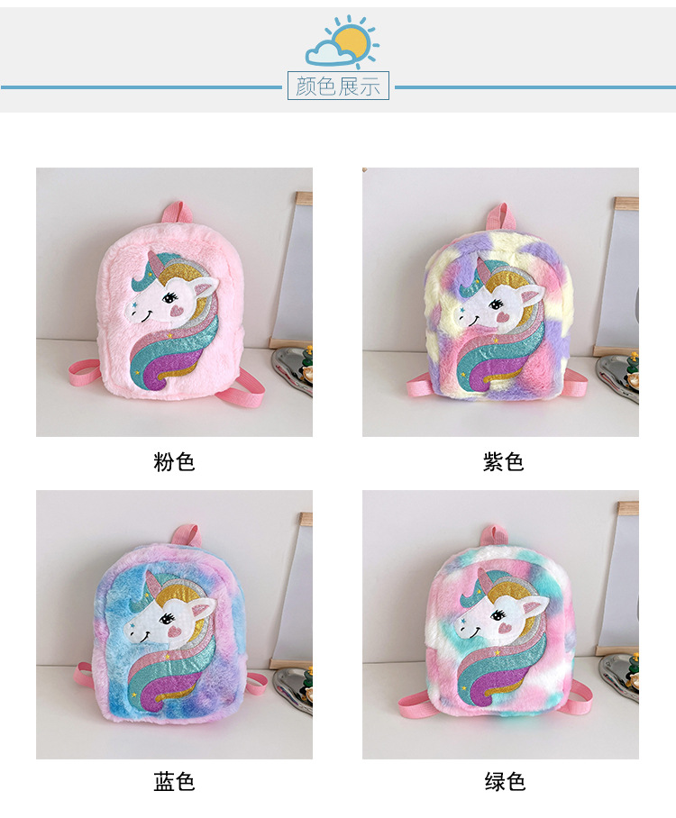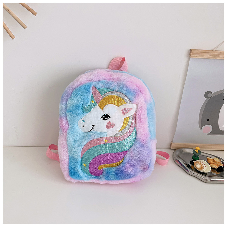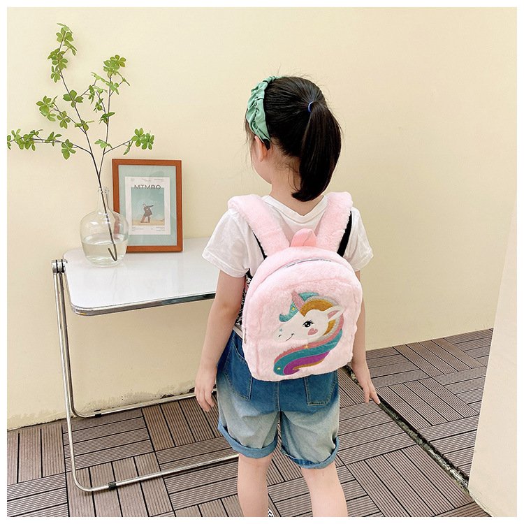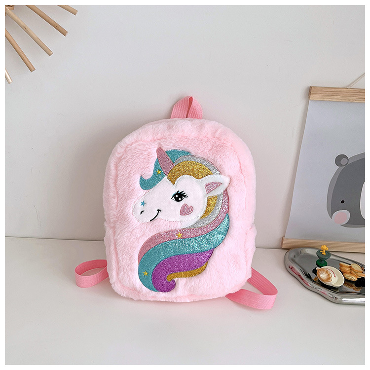 新款绣花独角兽卡通毛绒双肩背包大容量女童双肩包幼儿园可爱书包