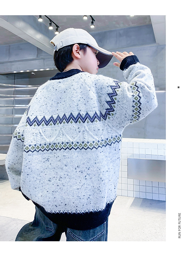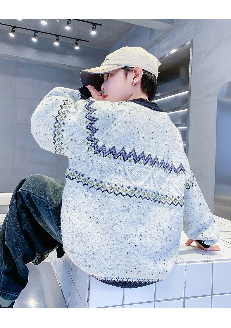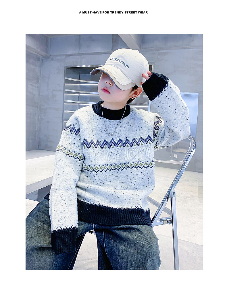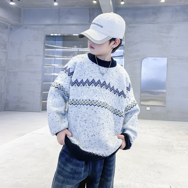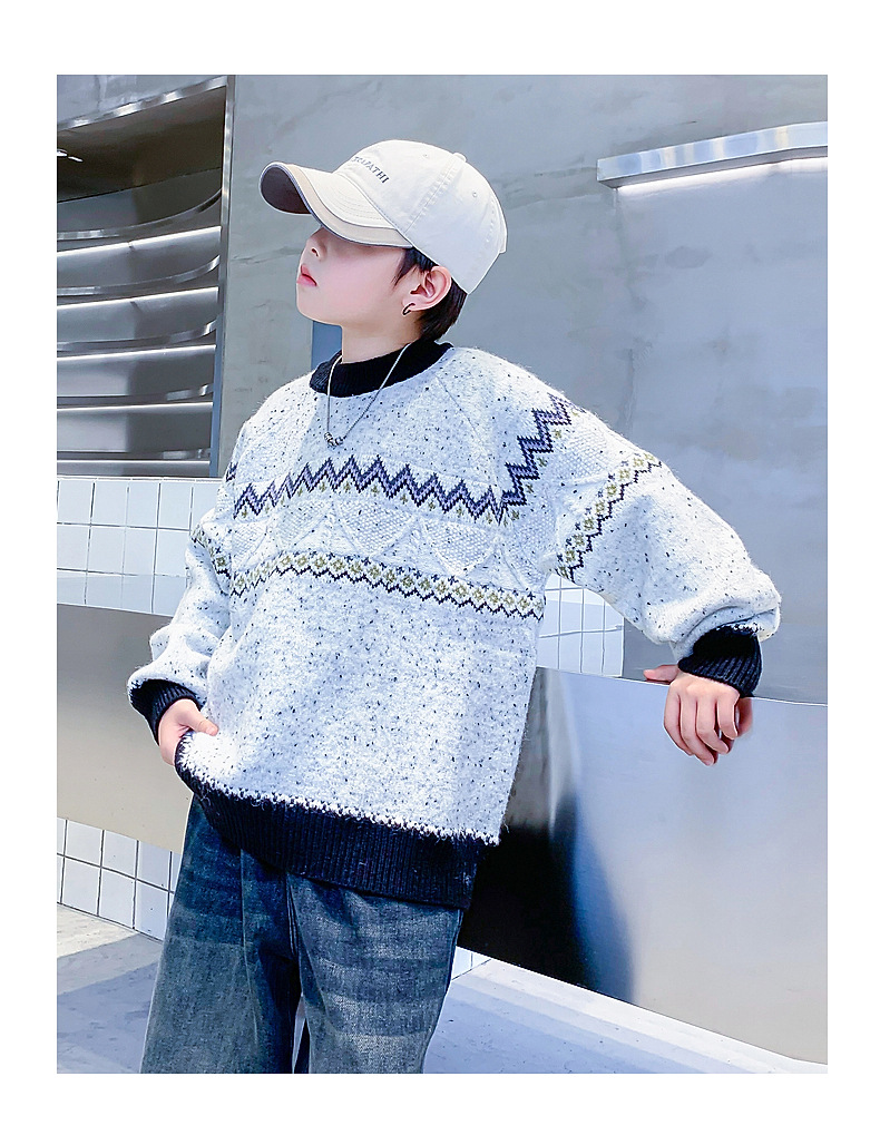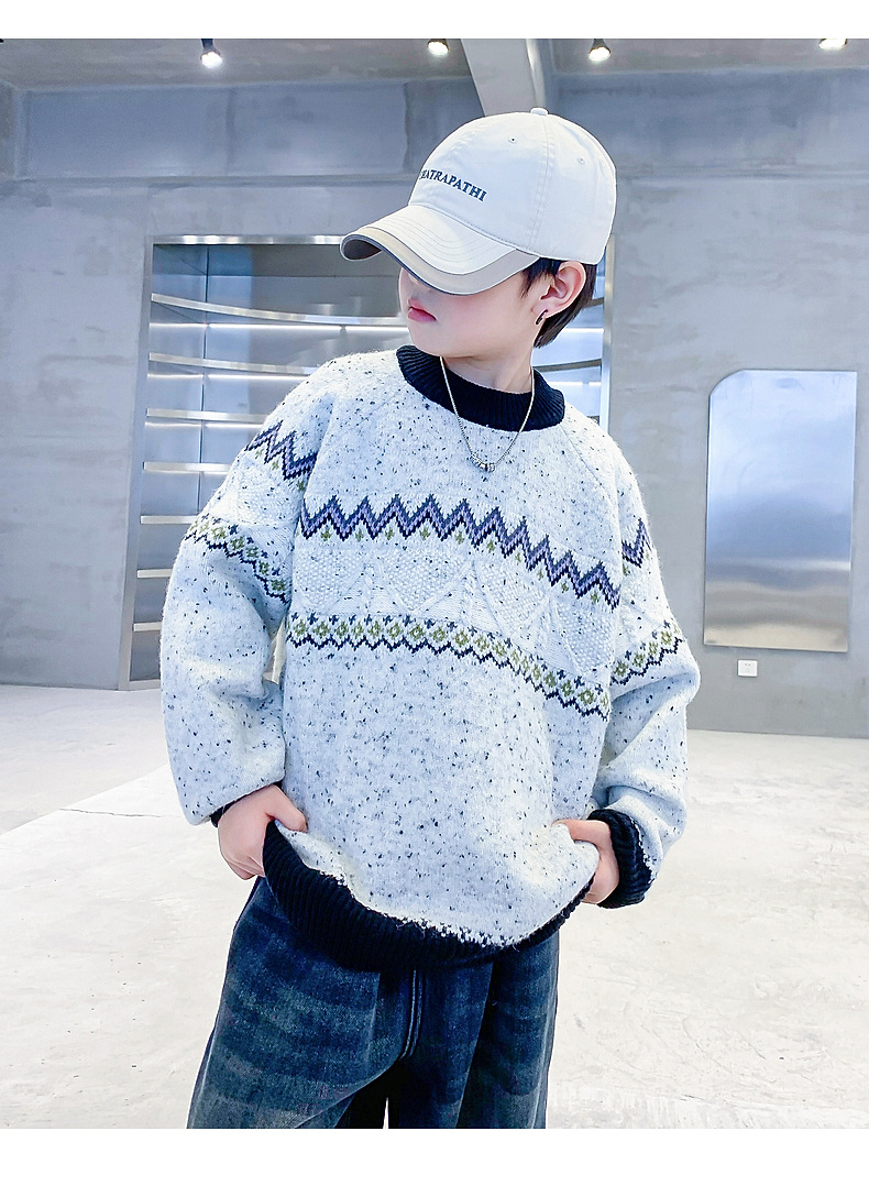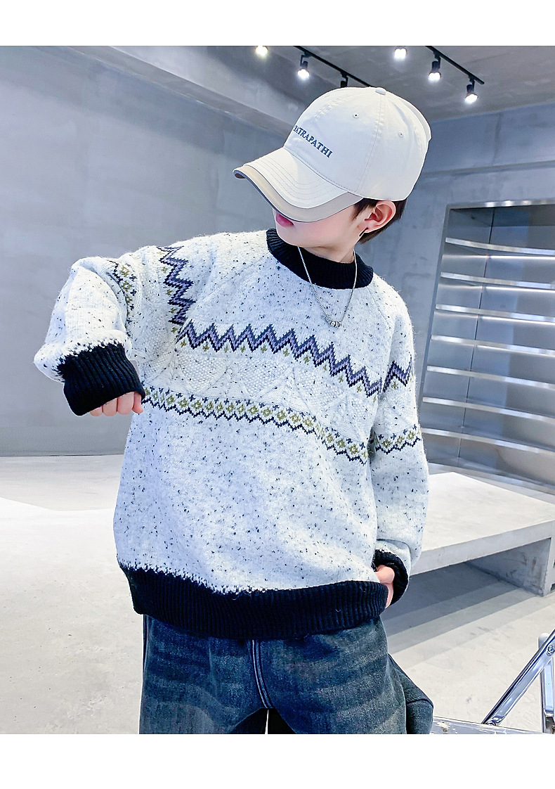 남아 겨울 한국 스타일 배색 풀오버 스웨터 2025 신상 아동 남아 가을 겨울 두꺼운 니트 상의