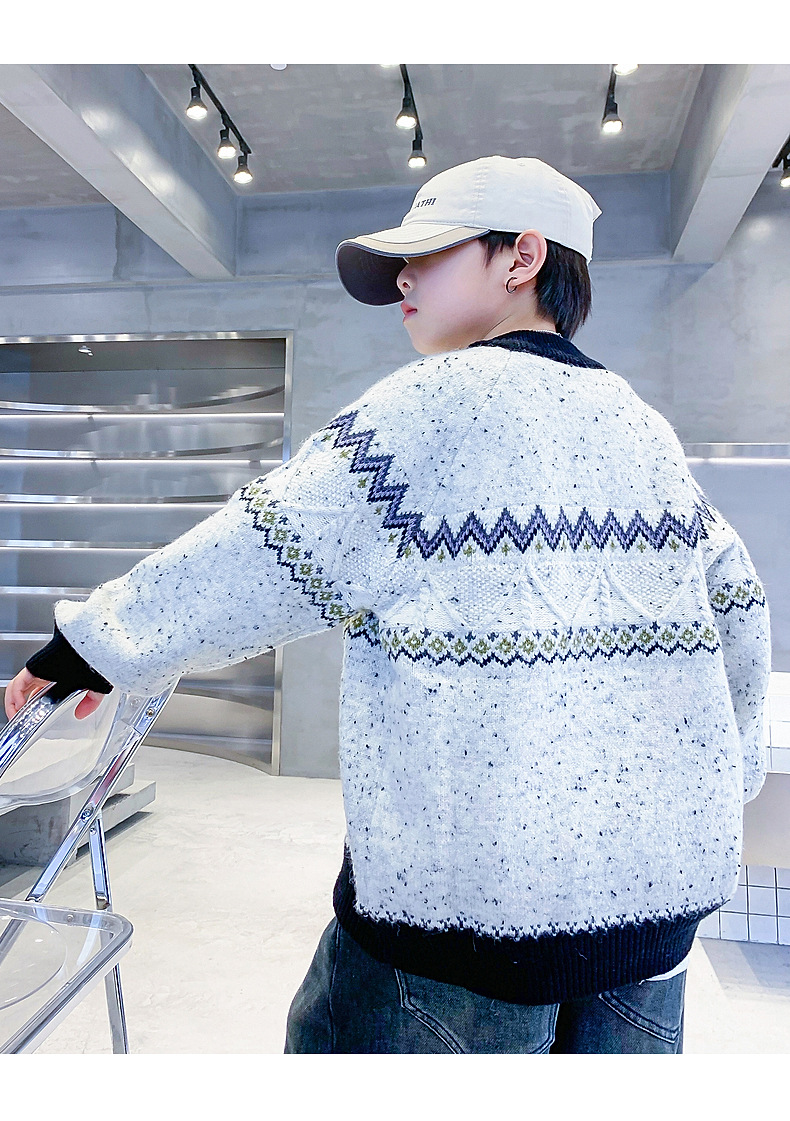 남아 겨울 한국 스타일 배색 풀오버 스웨터 2025 신상 아동 남아 가을 겨울 두꺼운 니트 상의스토어 가기