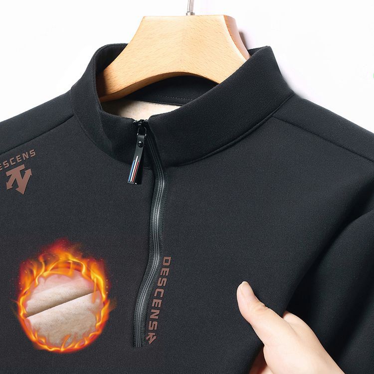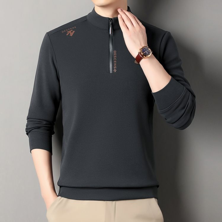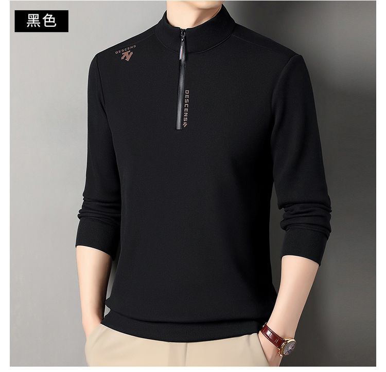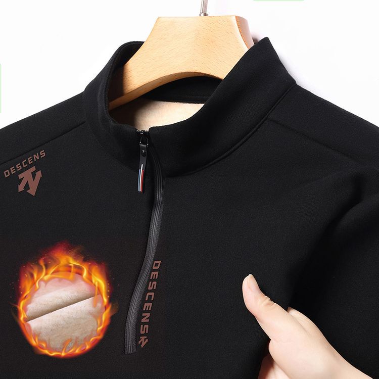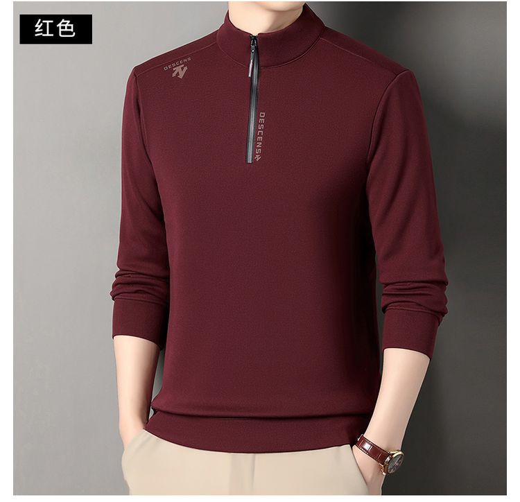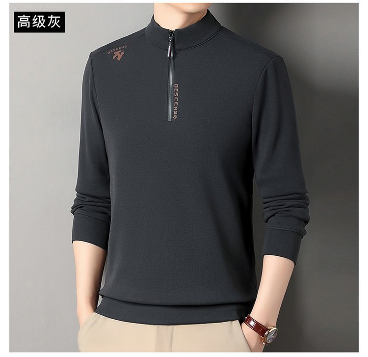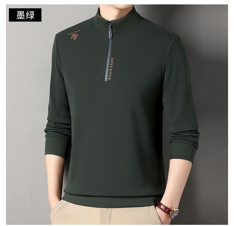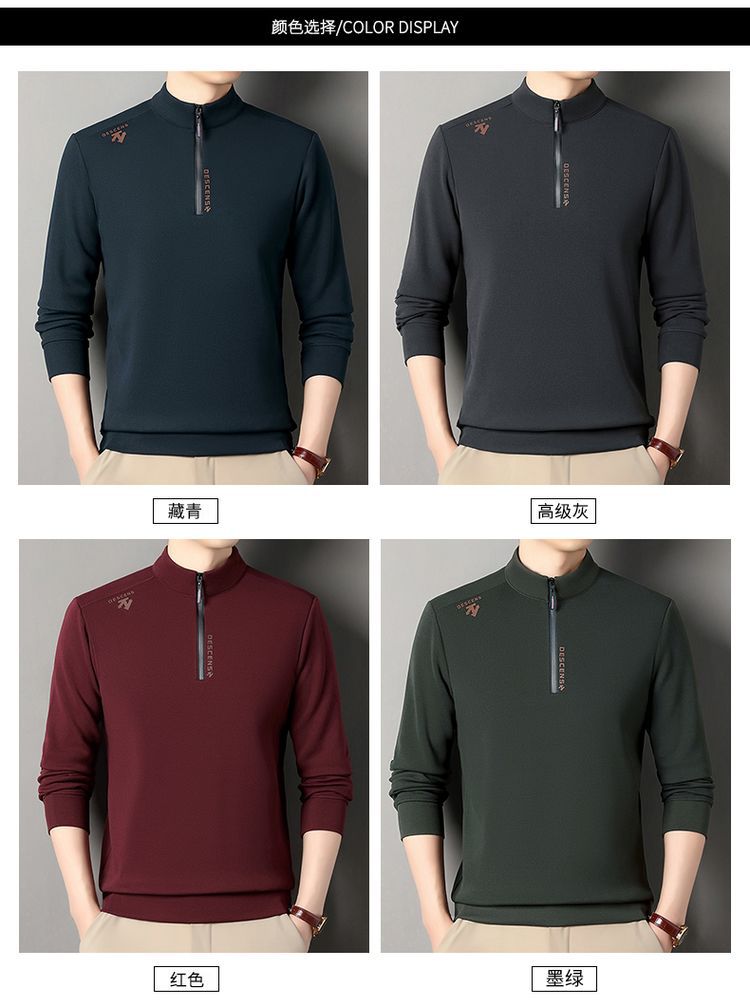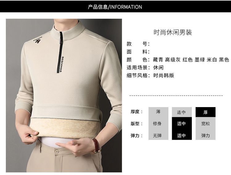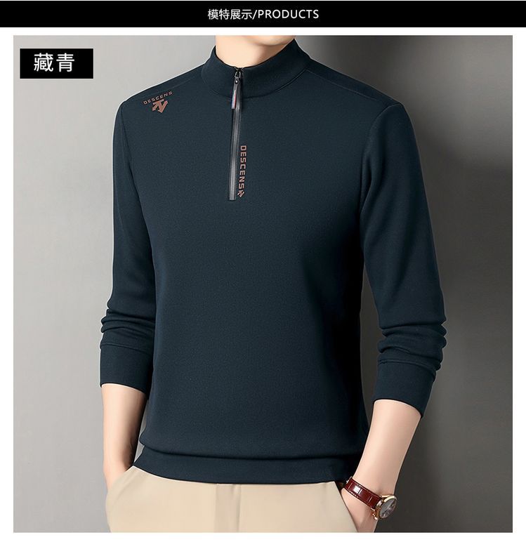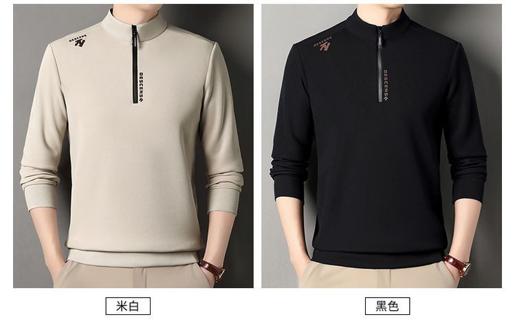 2024 가을과 겨울 새로운 긴 소매 스웨터 남성 가을과 겨울 기모 두꺼운 반 지퍼베이스 셔츠 티셔츠
