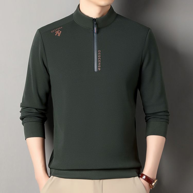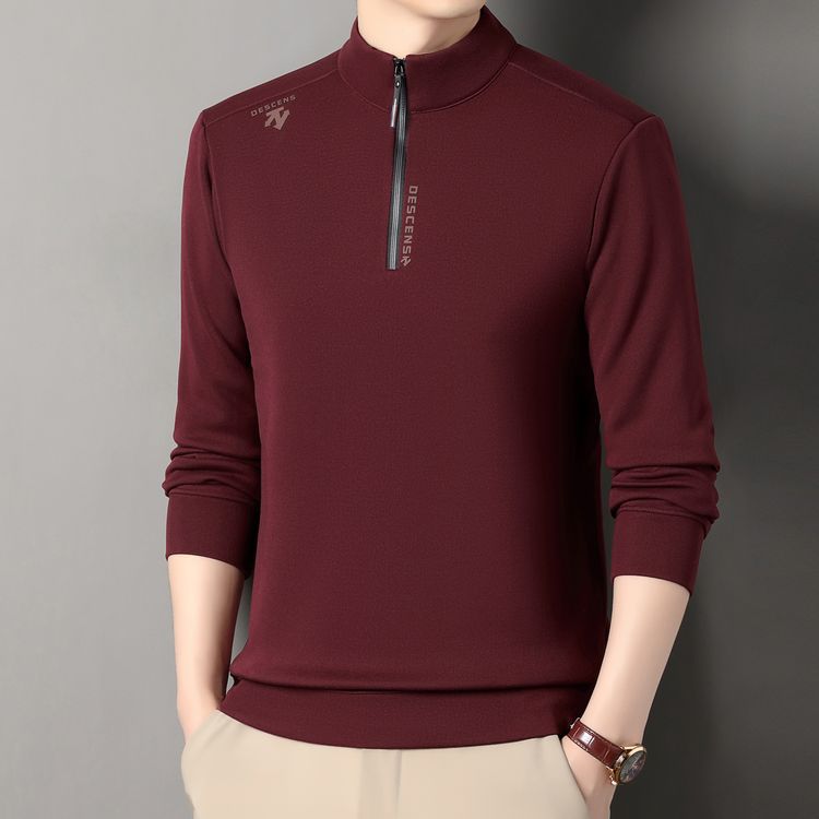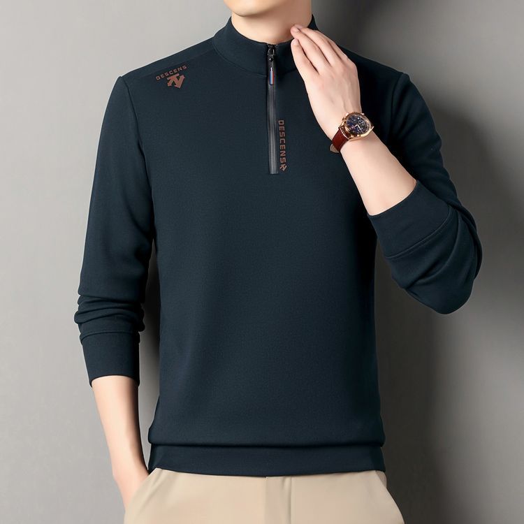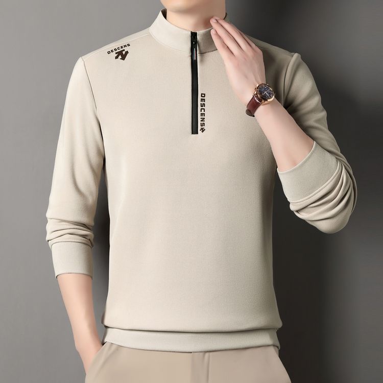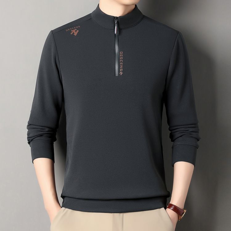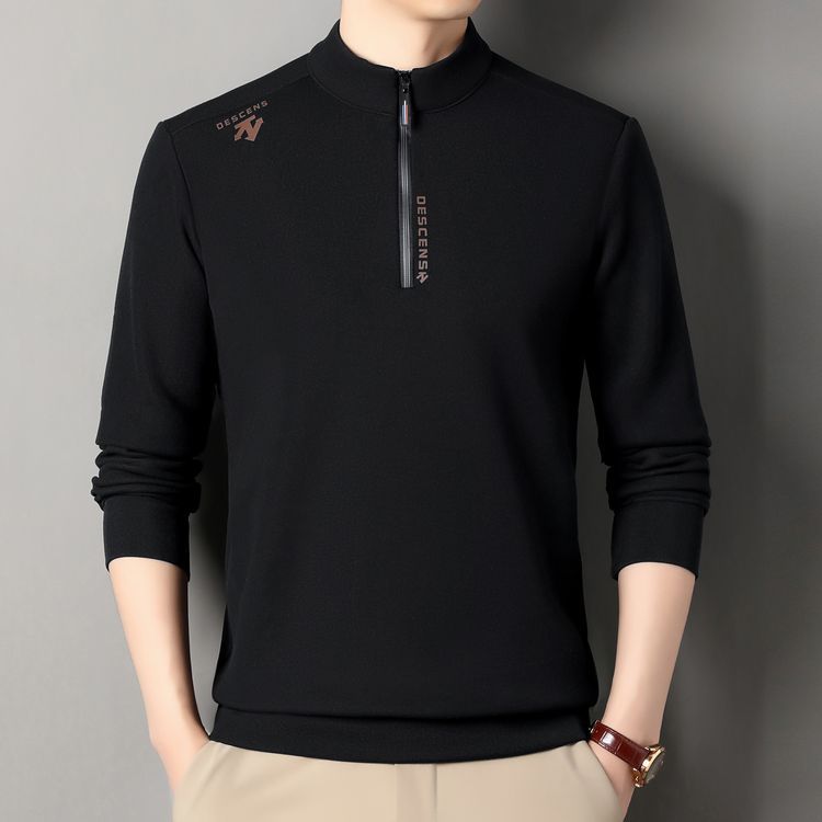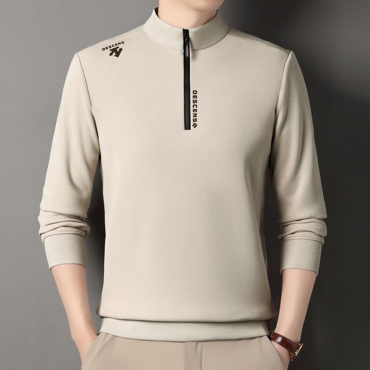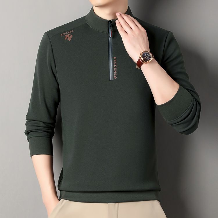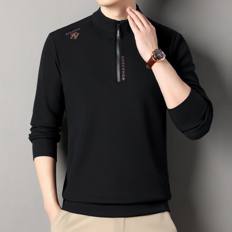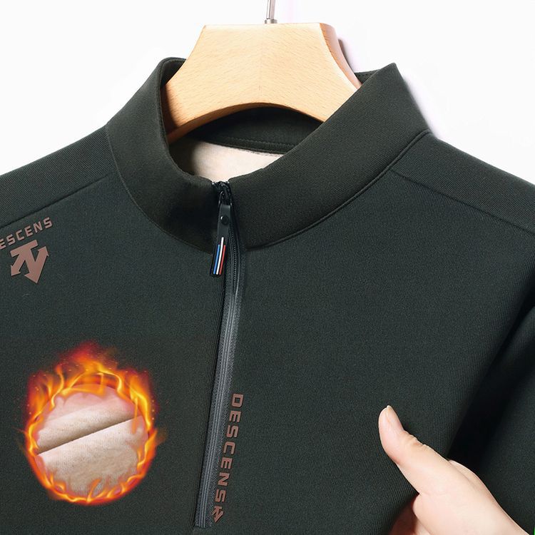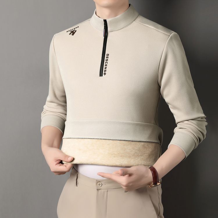 2024 가을과 겨울 새로운 긴 소매 스웨터 남성 가을과 겨울 기모 두꺼운 반 지퍼베이스 셔츠 티셔츠