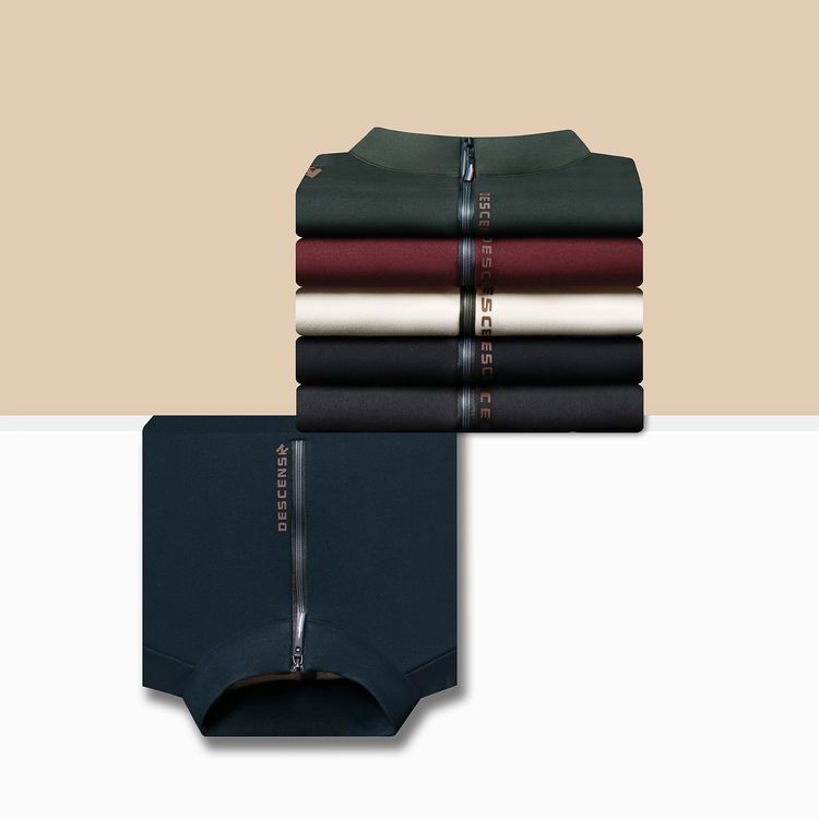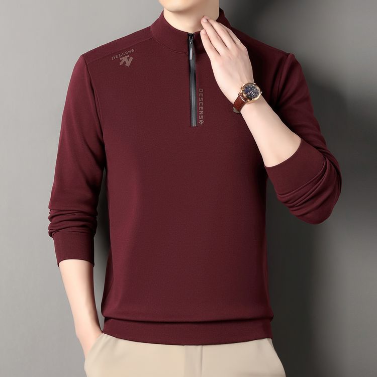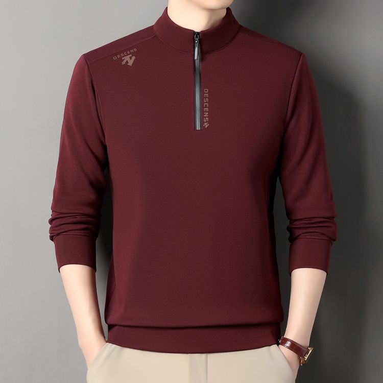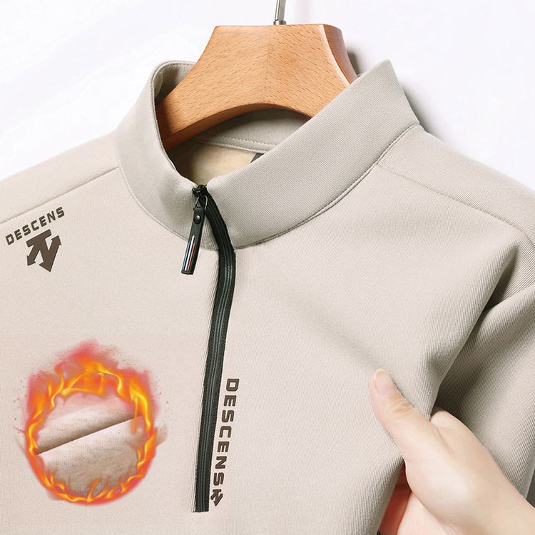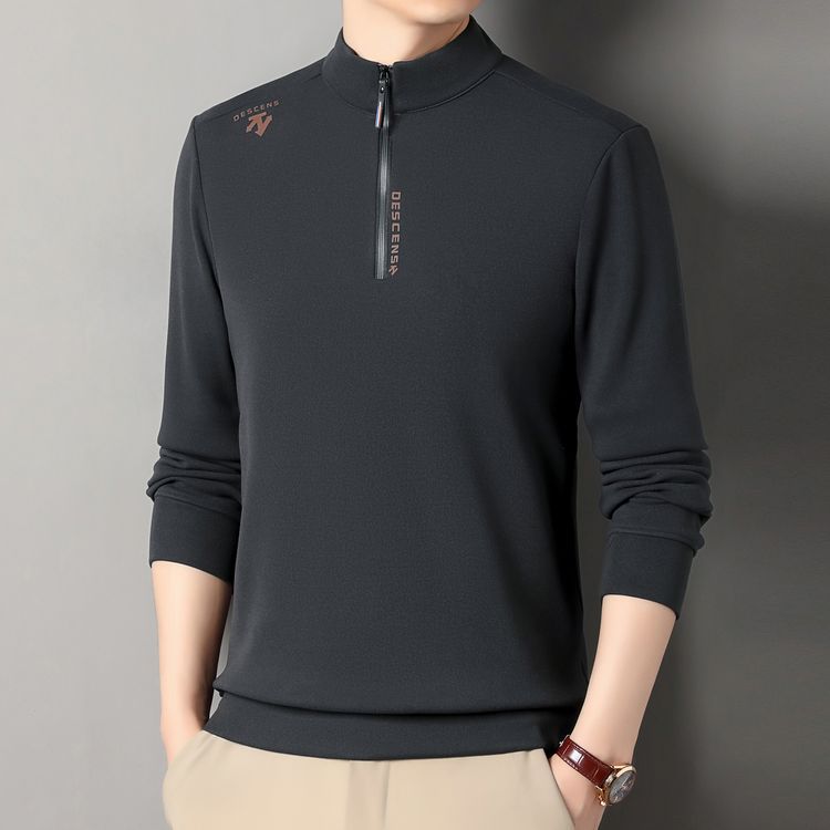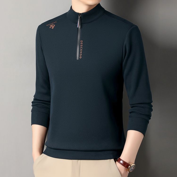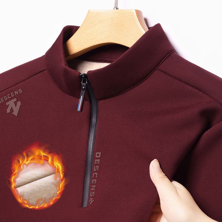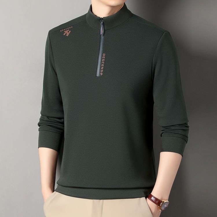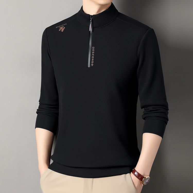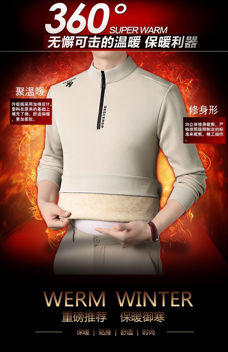 2024 가을과 겨울 새로운 긴 소매 스웨터 남성 가을과 겨울 기모 두꺼운 반 지퍼베이스 셔츠 티셔츠