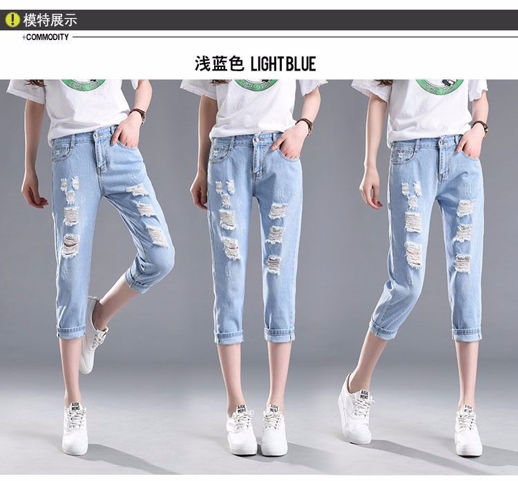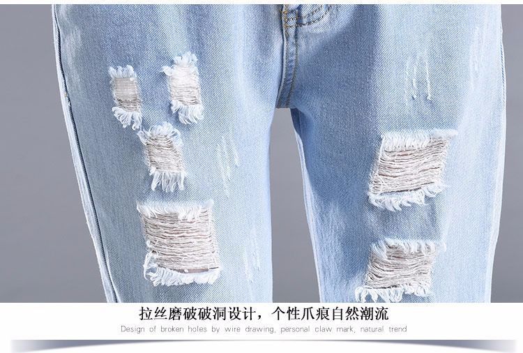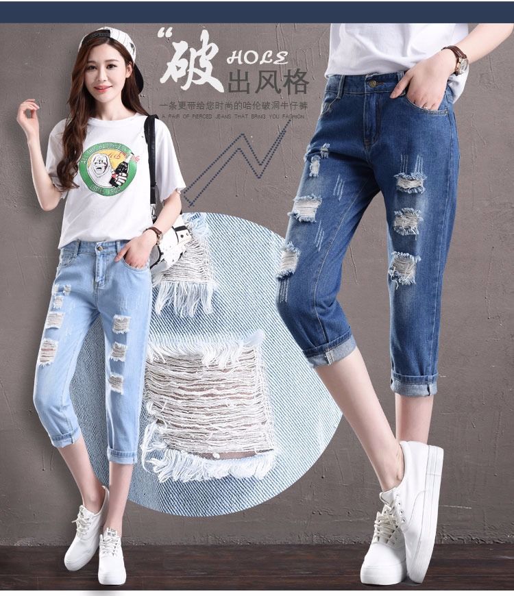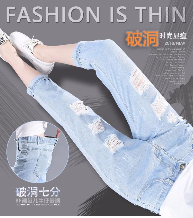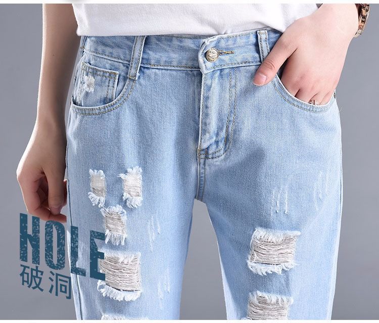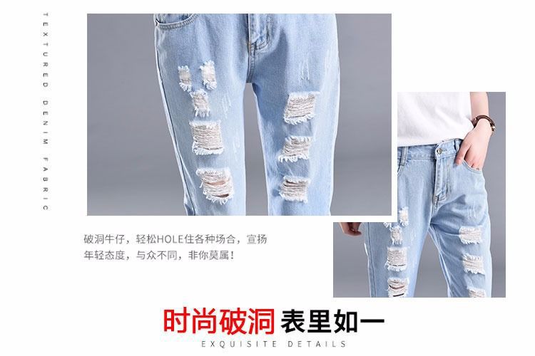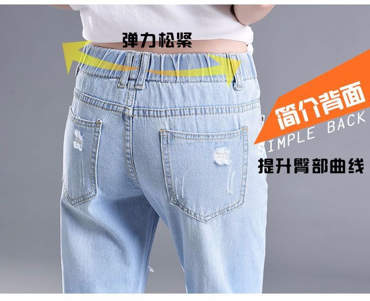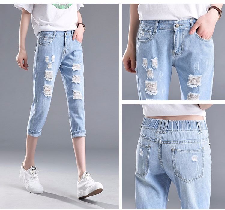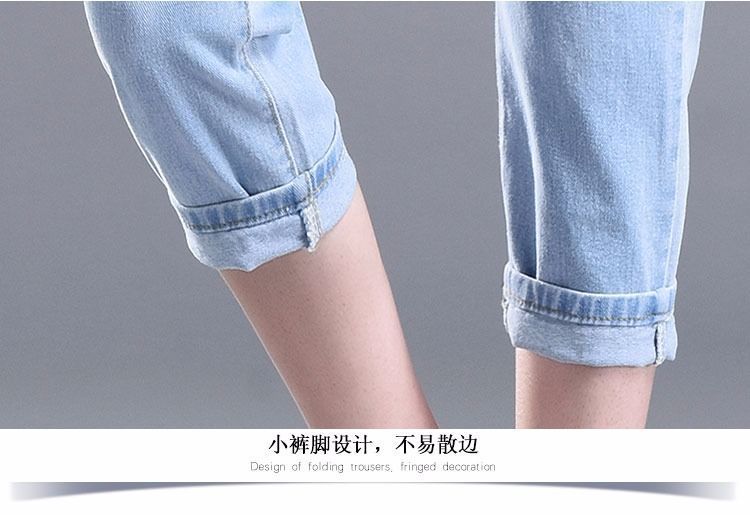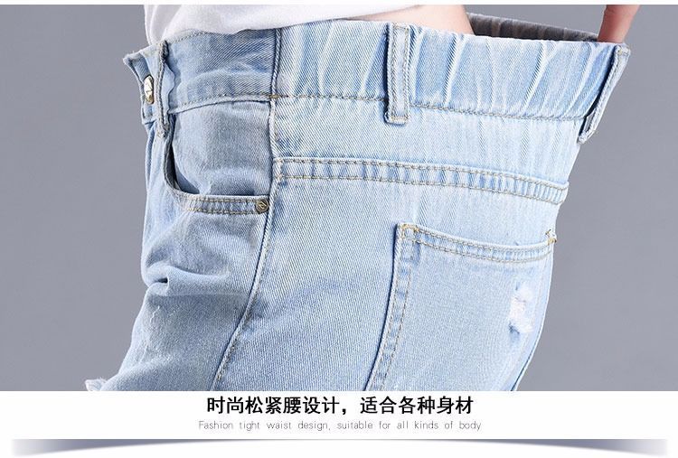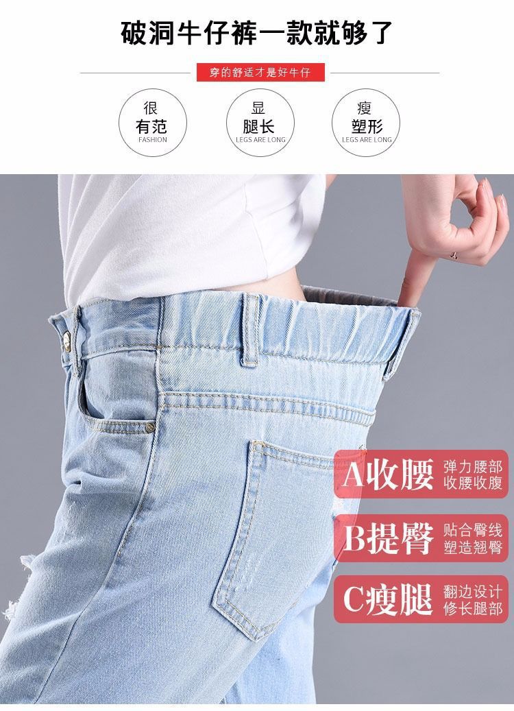 찢어진 청바지 여자 탄성 허리 느슨한 슬림 높은 허리 하렘 바지 한국식 스트레치 올매치 발목 길이 바지스토어 가기