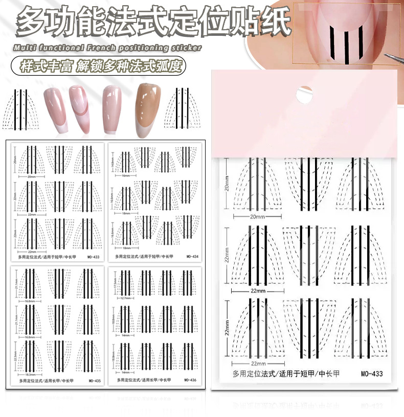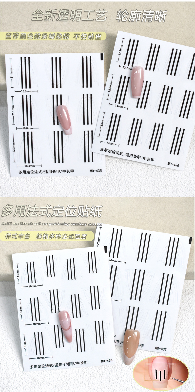 국경 간 네일 아트 스티커 다중 사용 포지셔닝 프랑스 보조 스티커 투명 기술 다중 라디안 독립형 보조 라인 손가락스토어 가기