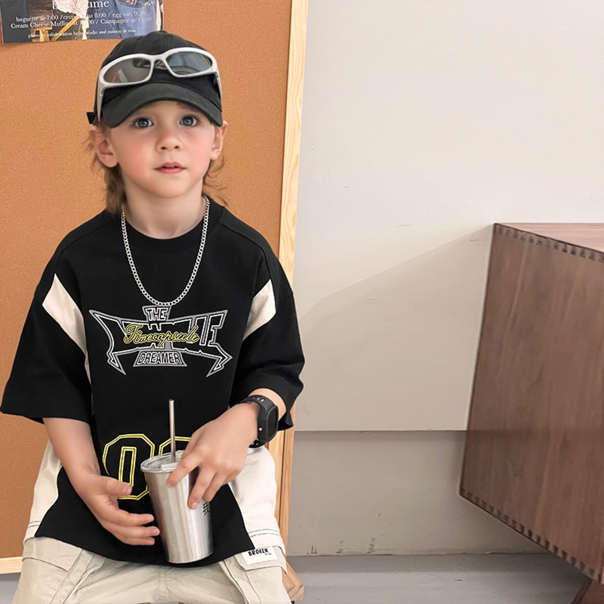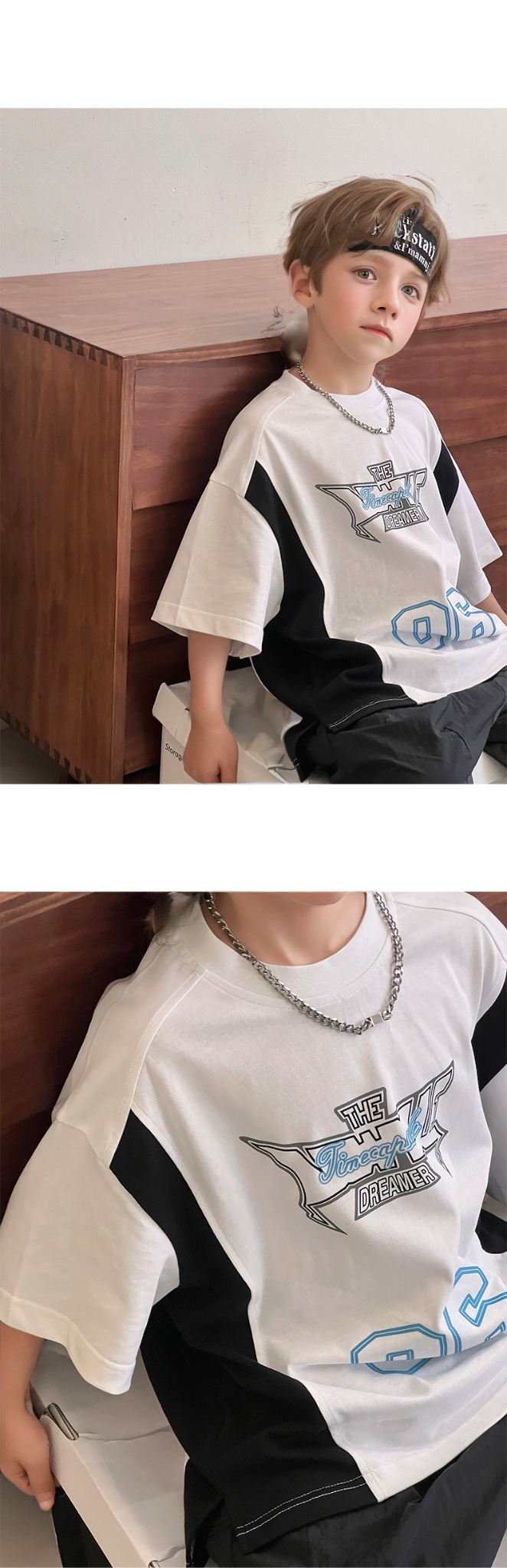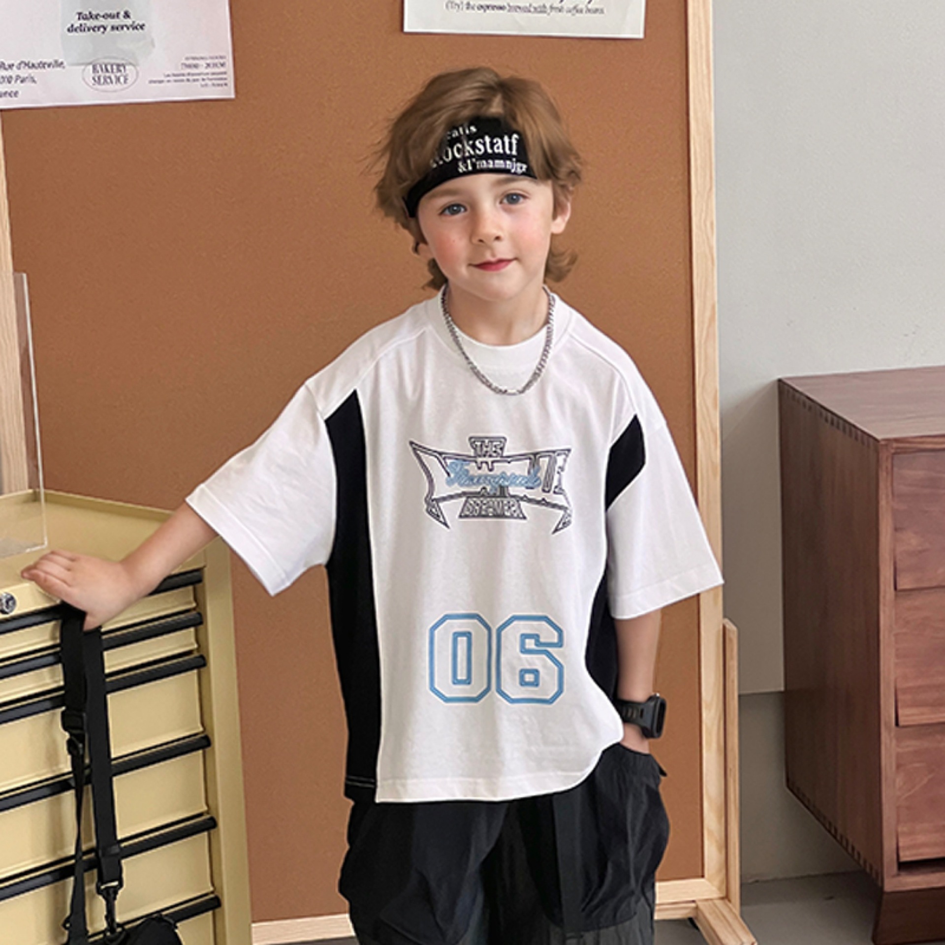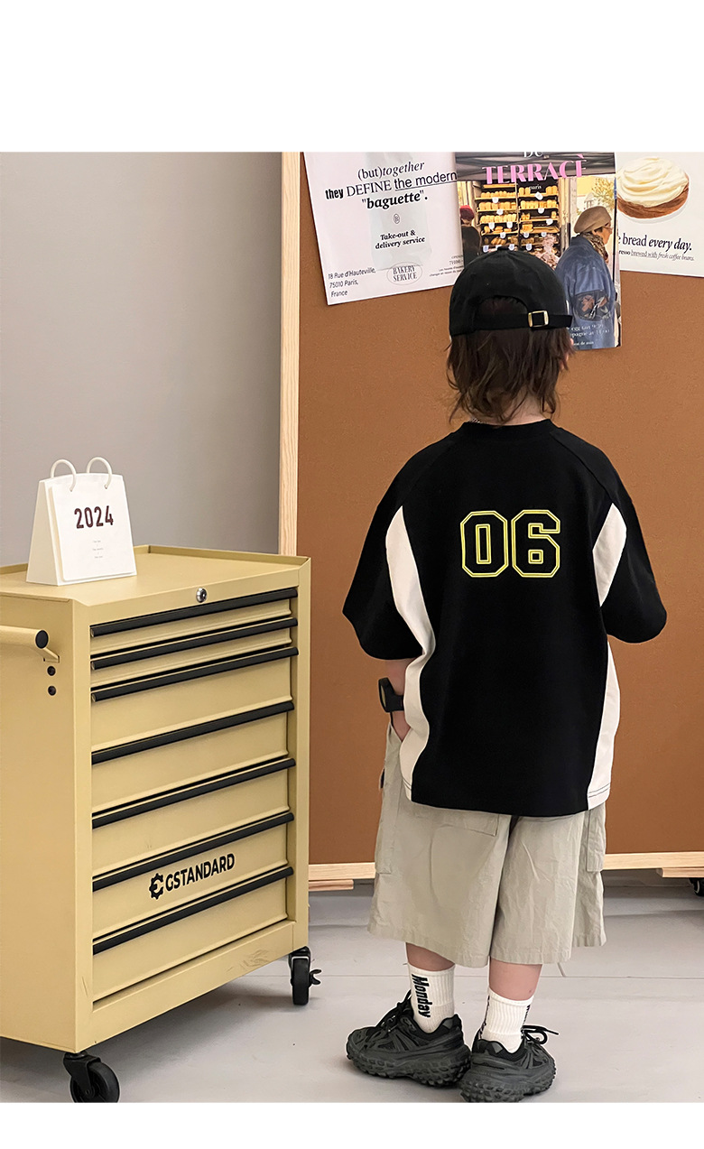 소년 반팔 티셔츠 2025 여름 새로운 스타일 힙합 어린이 잘 생긴 티셔츠 순수 코튼 중대형 어린이 스트리트 탑 얇은스토어 가기