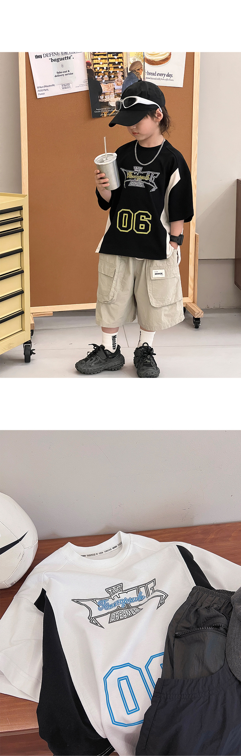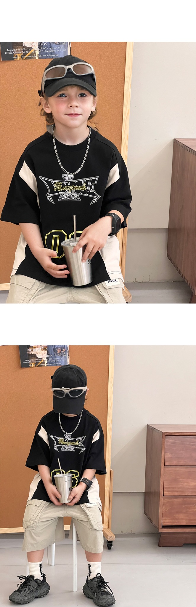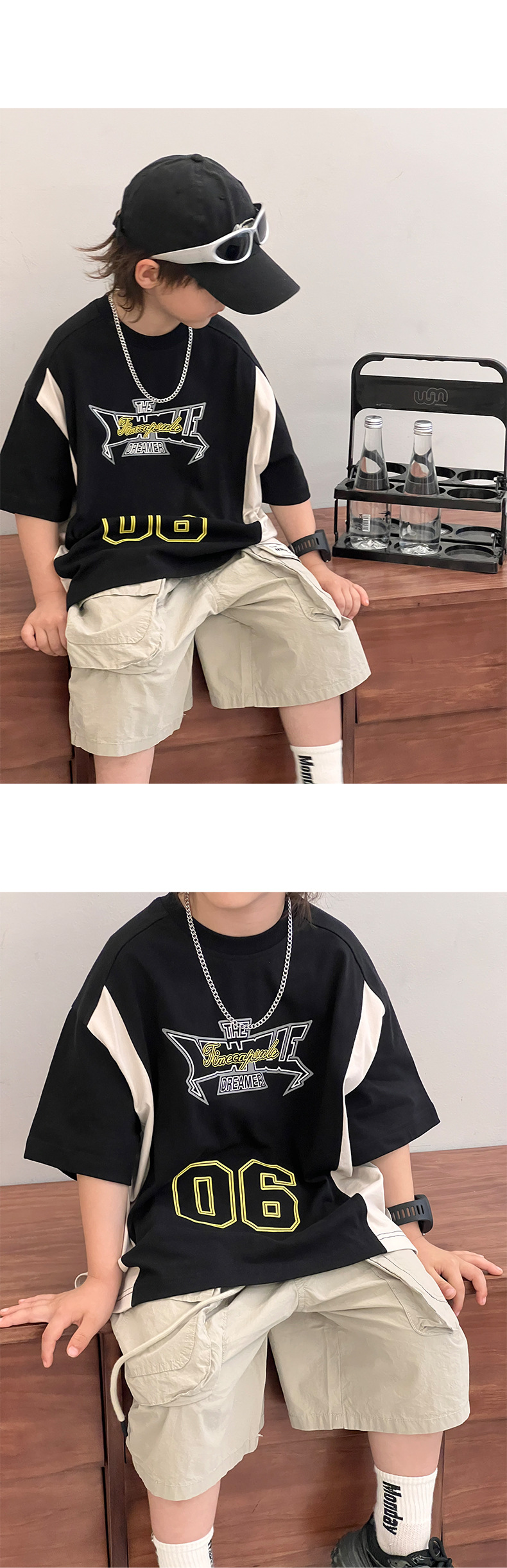 소년 반팔 티셔츠 2025 여름 새로운 스타일 힙합 어린이 잘 생긴 티셔츠 순수 코튼 중대형 어린이 스트리트 탑 얇은스토어 가기