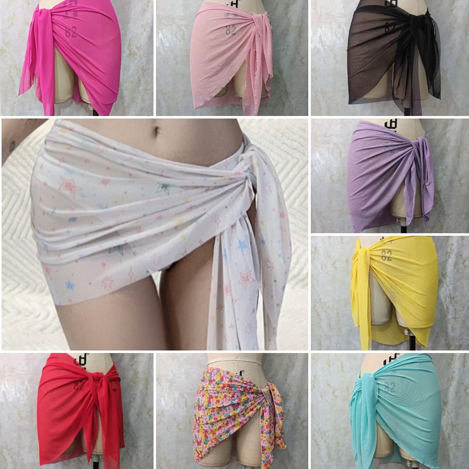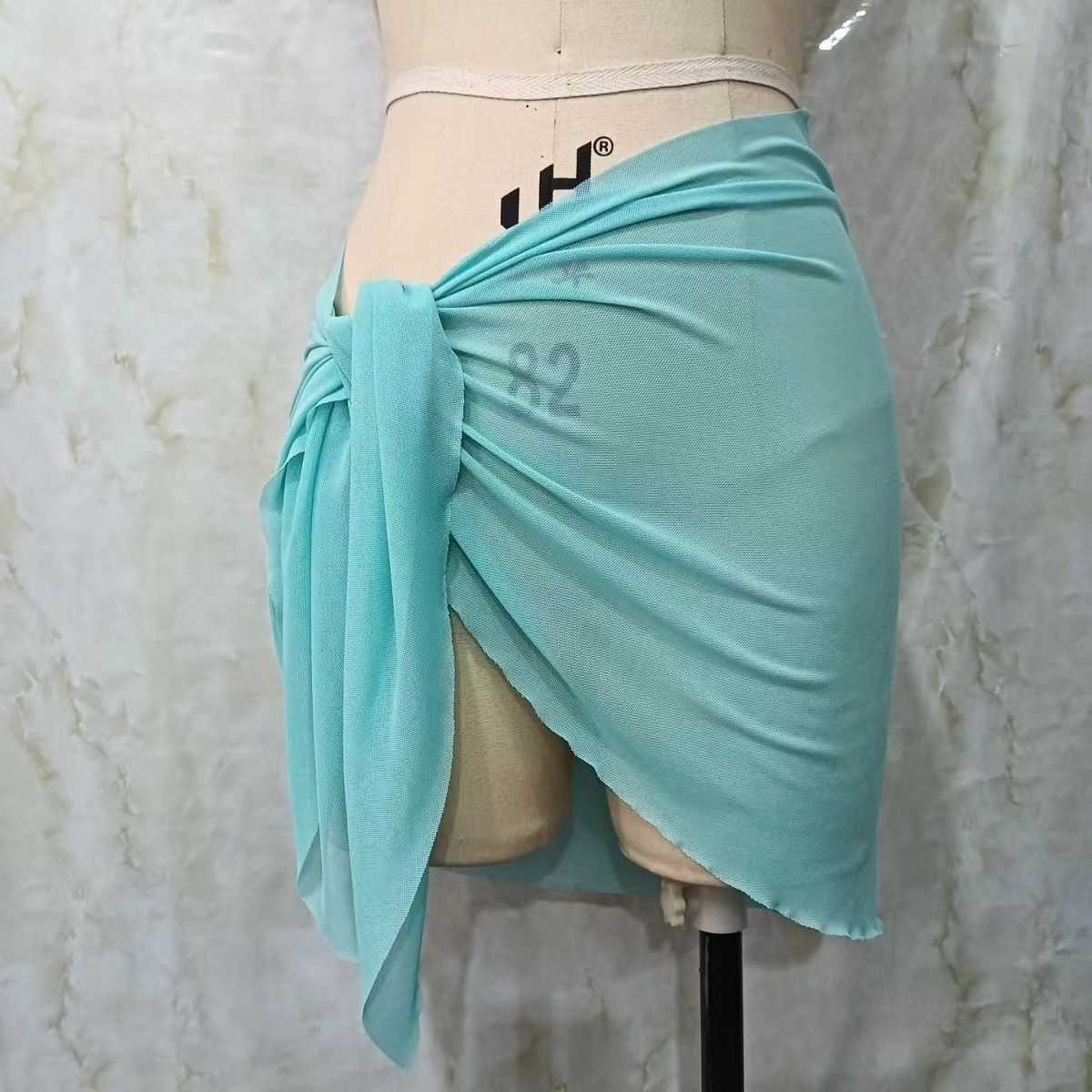 한 어깨 목도리 포장 치마 비키니 스카프 선 스크린 스커트 목도리 해변 휴가 사진 단색 꽃스토어 가기