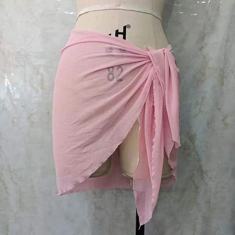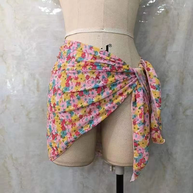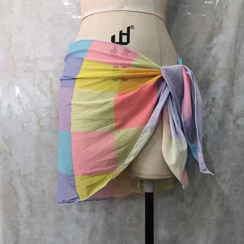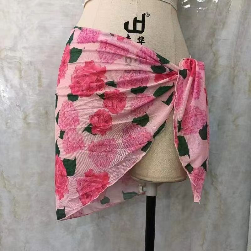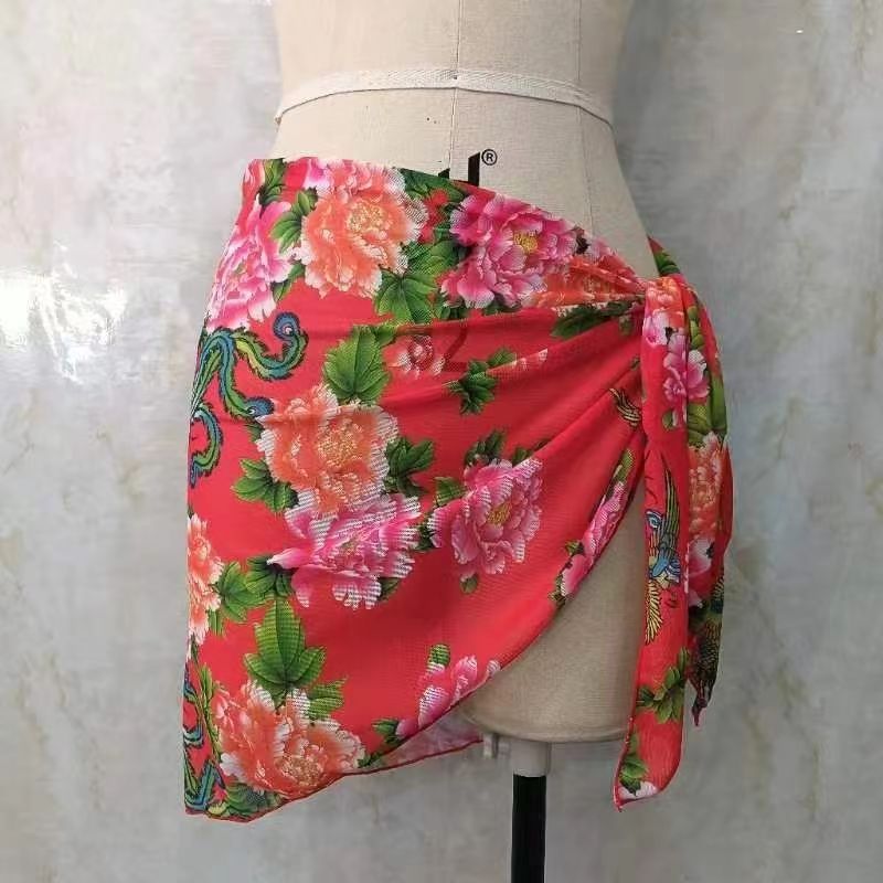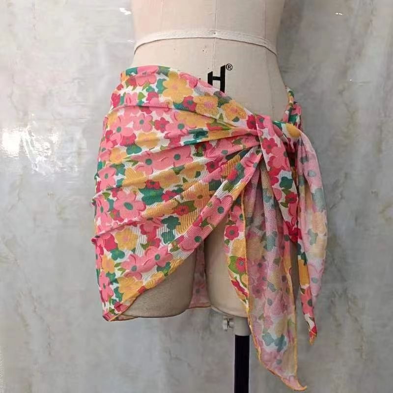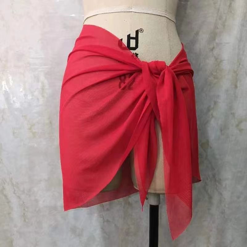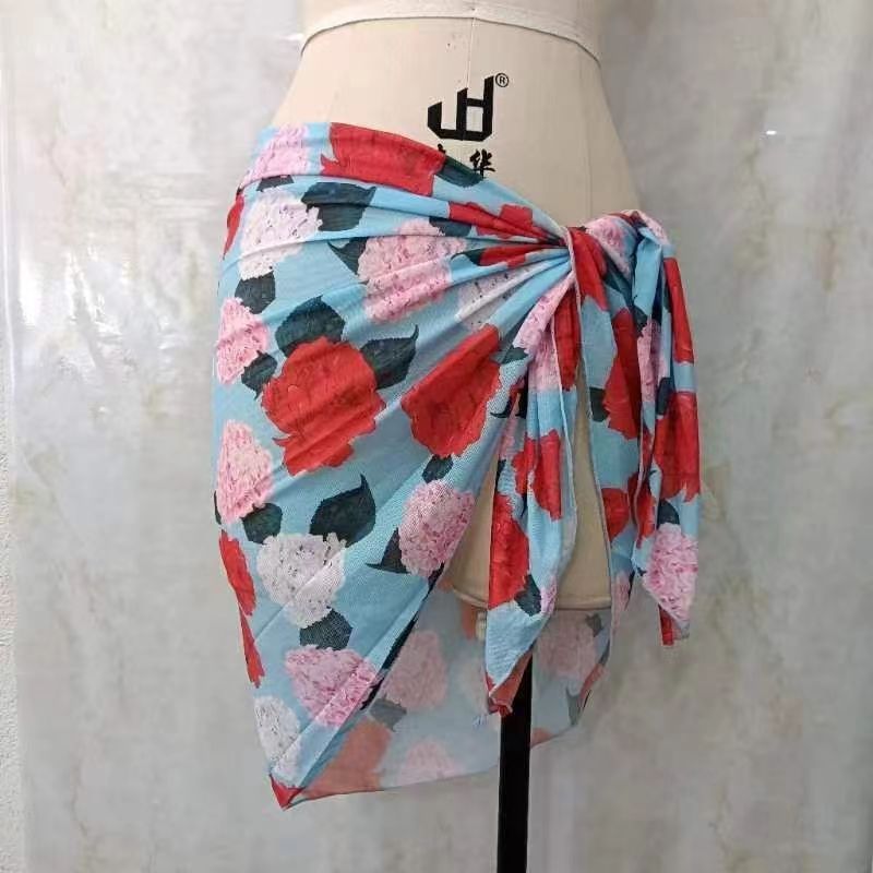 한 어깨 목도리 포장 치마 비키니 스카프 선 스크린 스커트 목도리 해변 휴가 사진 단색 꽃