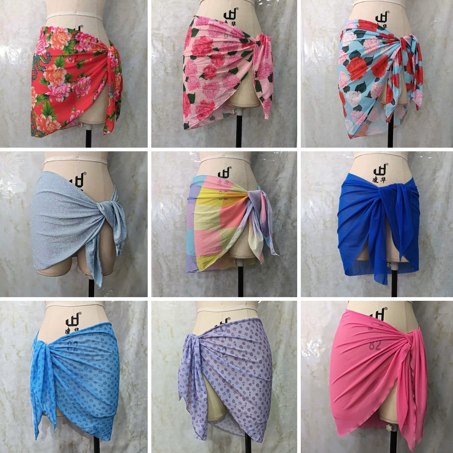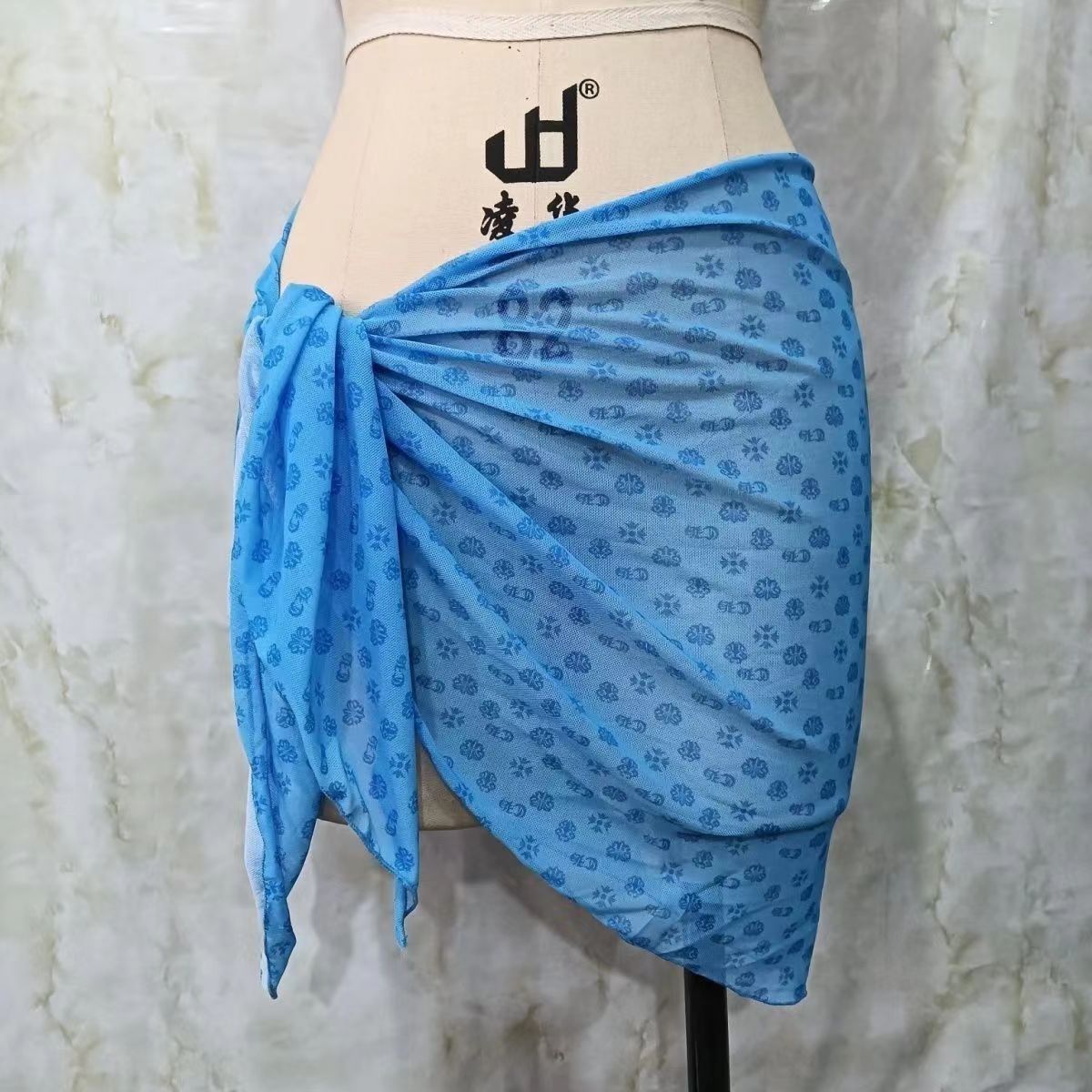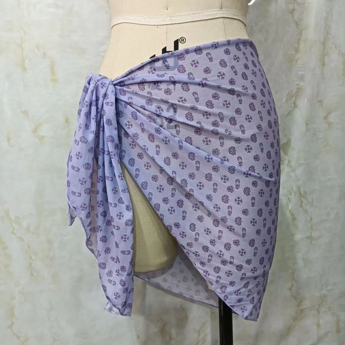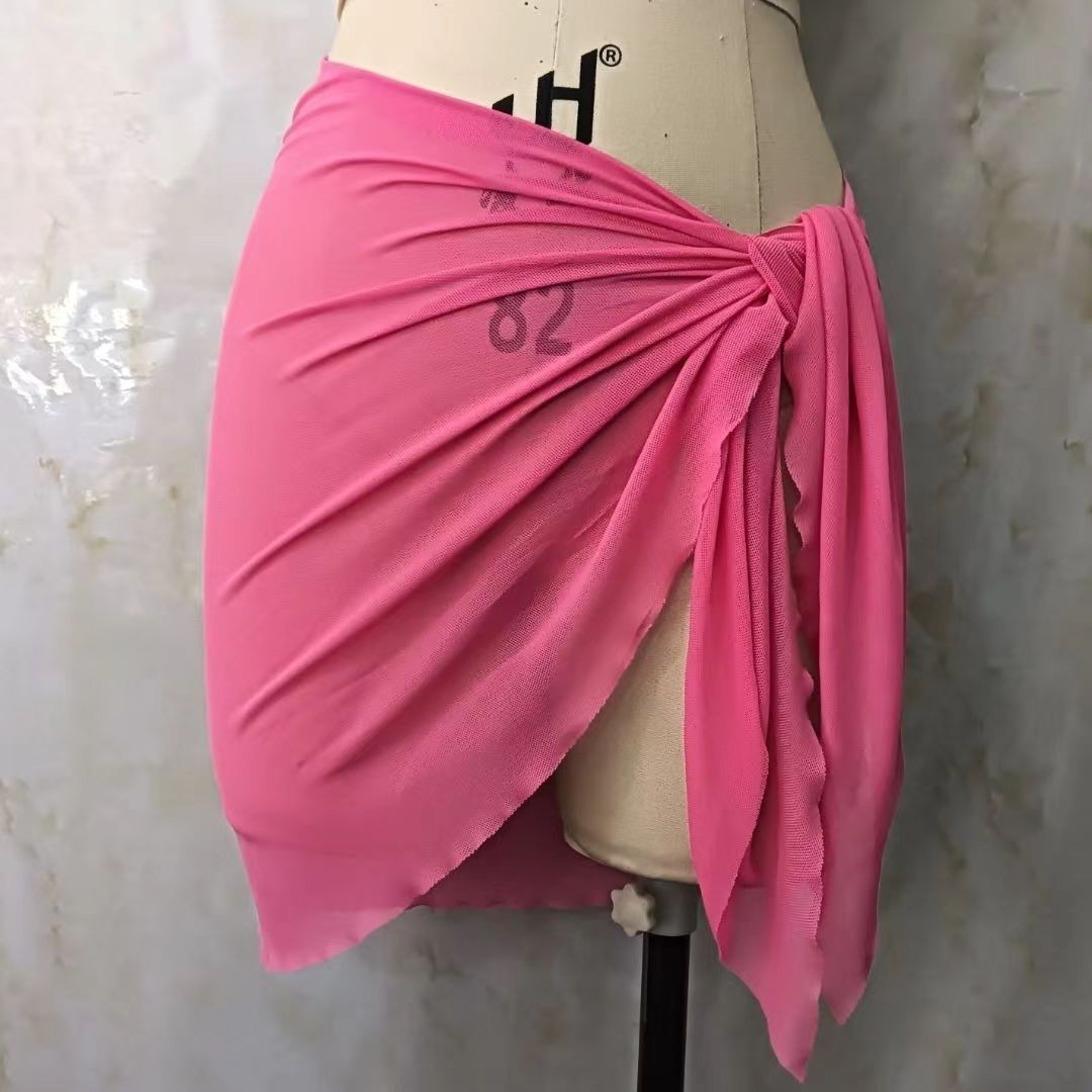한 어깨 목도리 포장 치마 비키니 스카프 선 스크린 스커트 목도리 해변 휴가 사진 단색 꽃