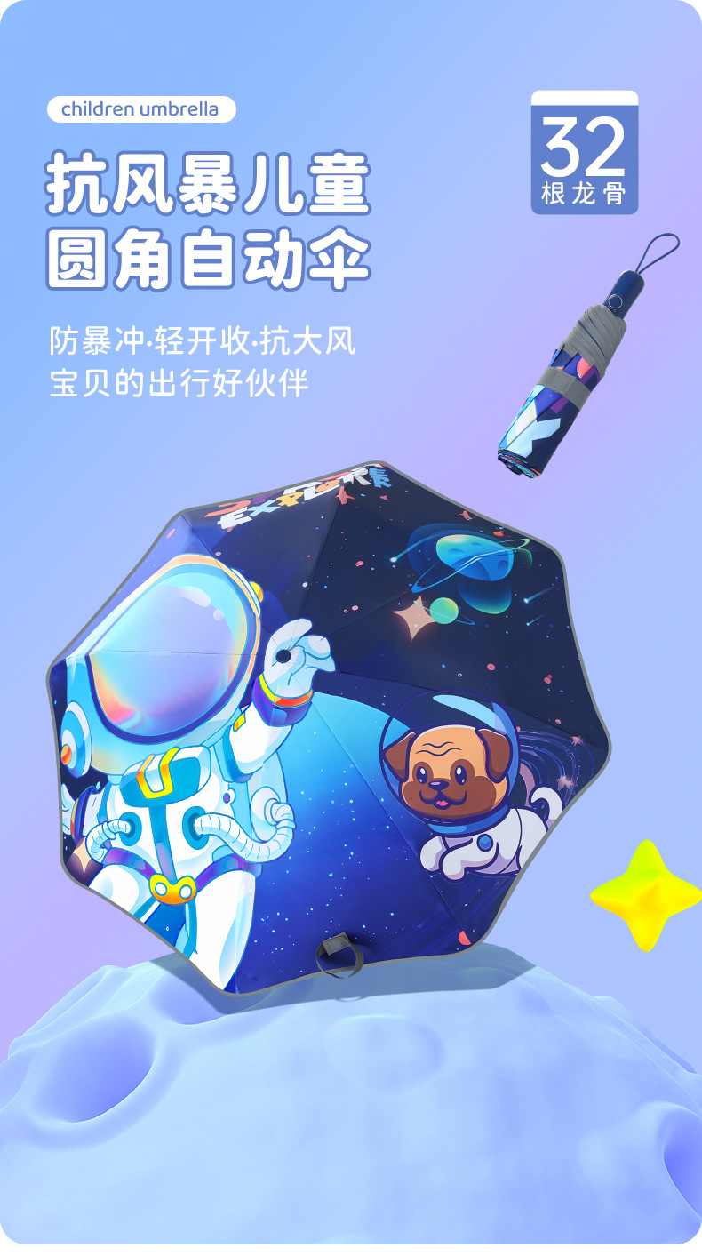• 자동우산 - 우주모험가(둥근 모서리 안티스탬프 버전)