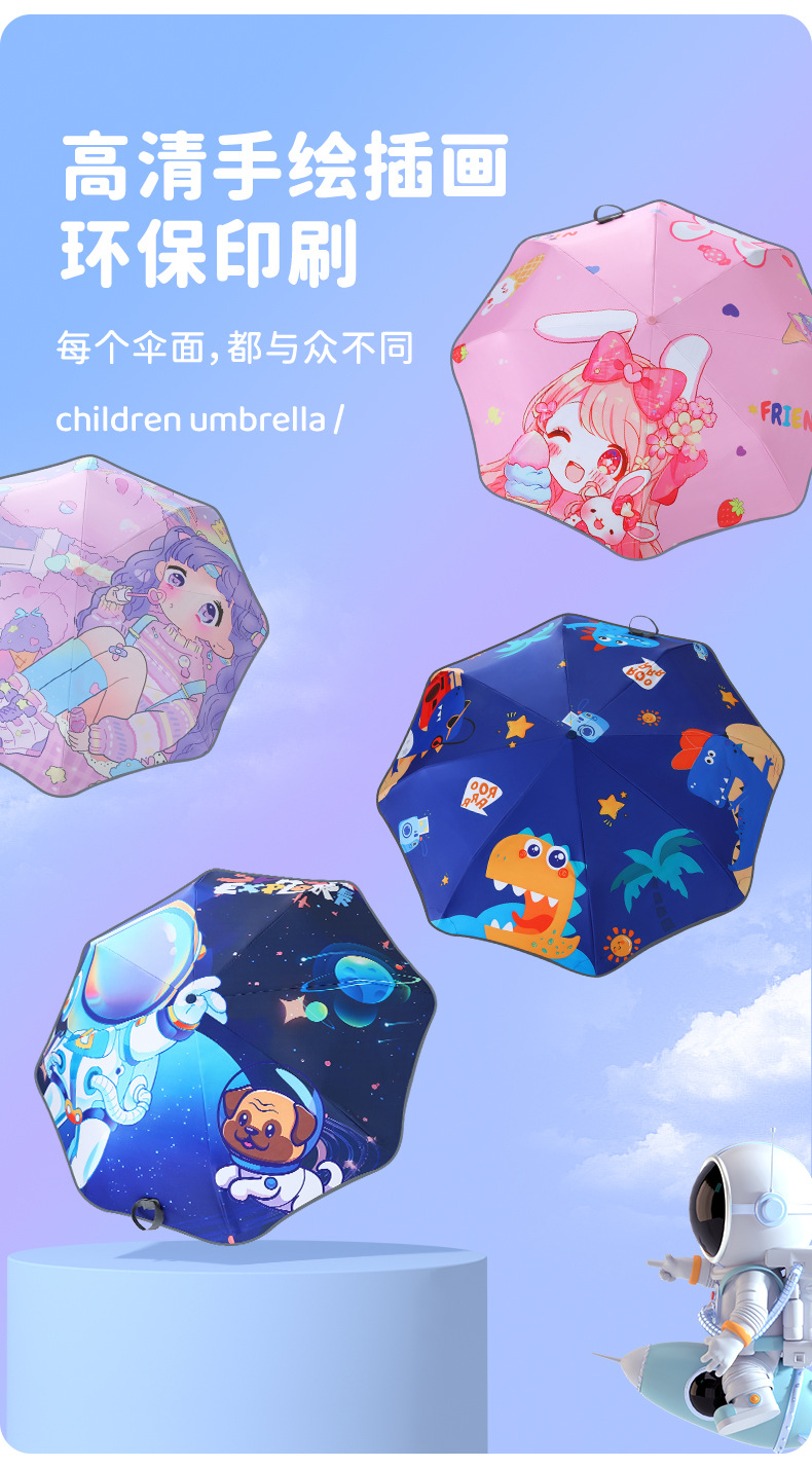 만화 완전 자동 어린이 우산 안전 둥근 모서리 안티 찌르기 어린이 우산 태양 보호 파라솔 안티 리바운드 맑은 우산스토어 가기