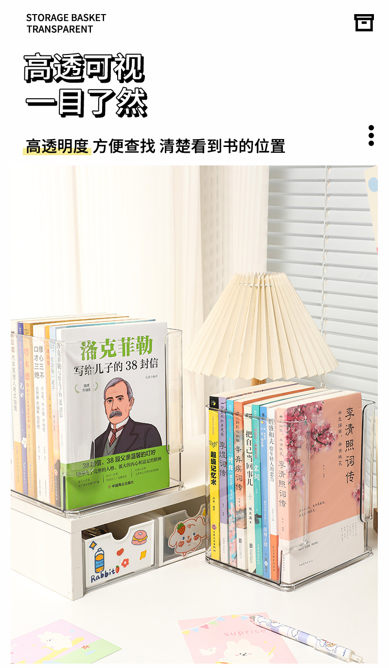 데스크탑 어린이 그림책 보관 상자 투명한 학생 책상 선반 책 화장품 마감 인공물 아크릴스토어 가기