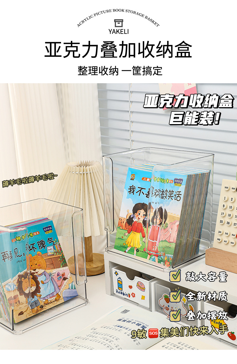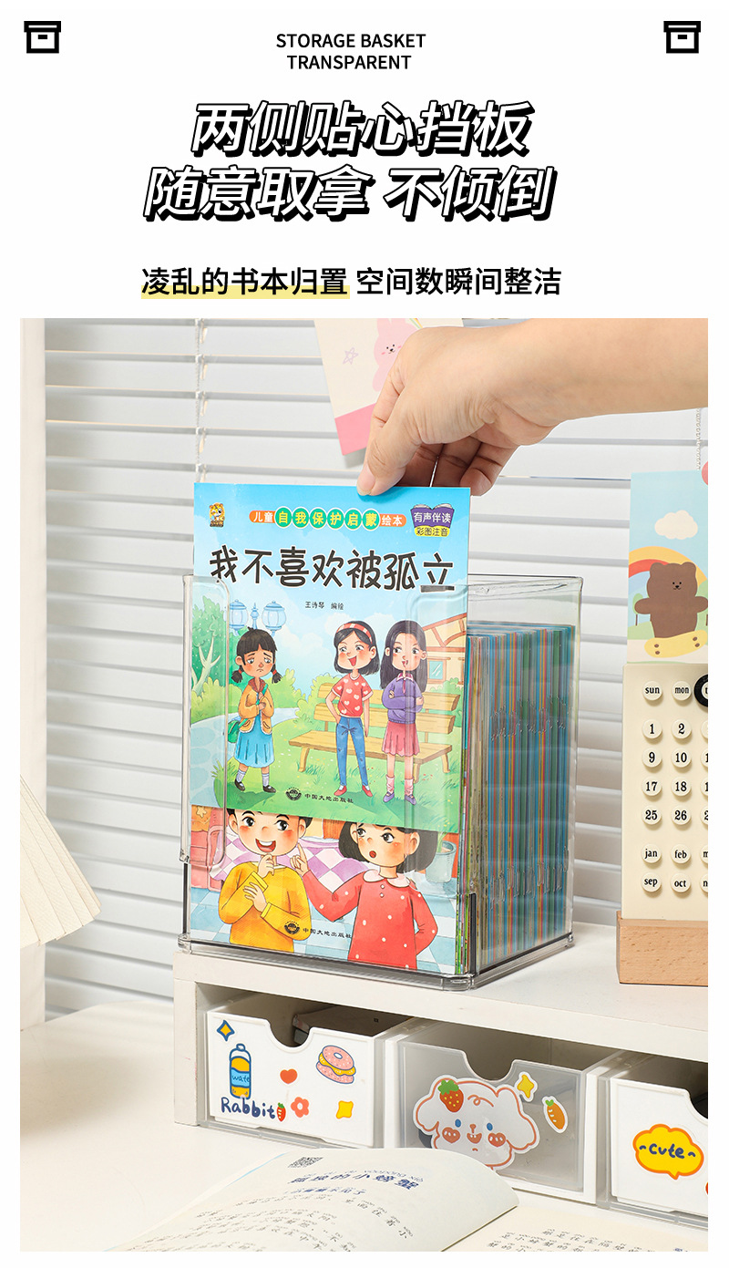 데스크탑 어린이 그림책 보관 상자 투명한 학생 책상 선반 책 화장품 마감 인공물 아크릴