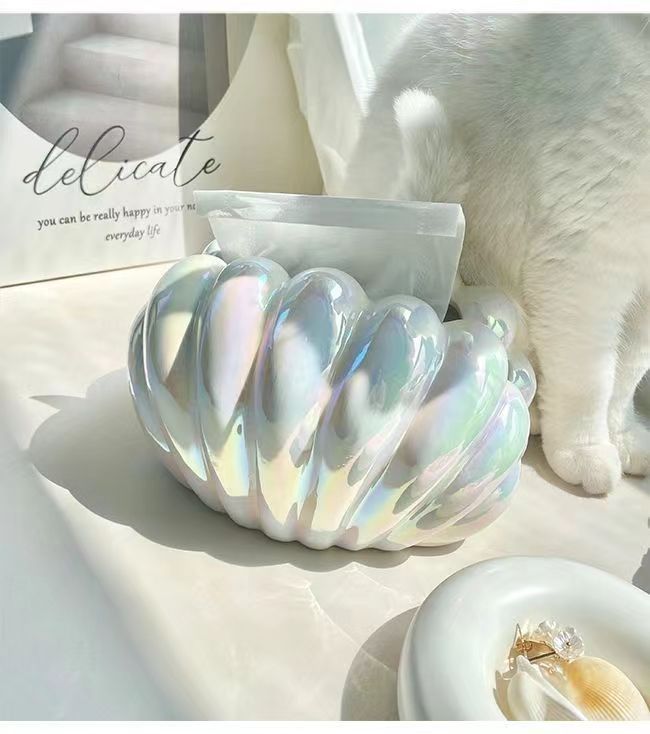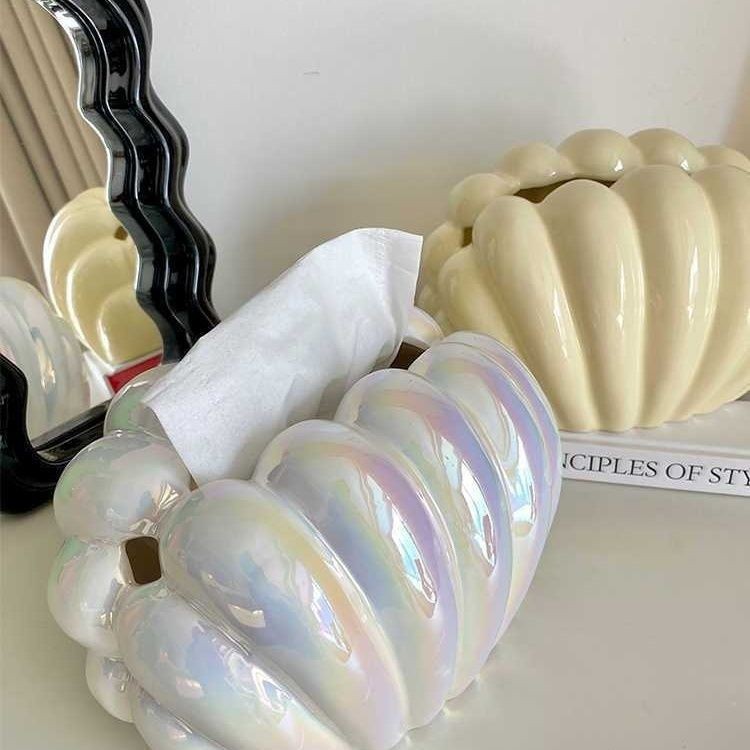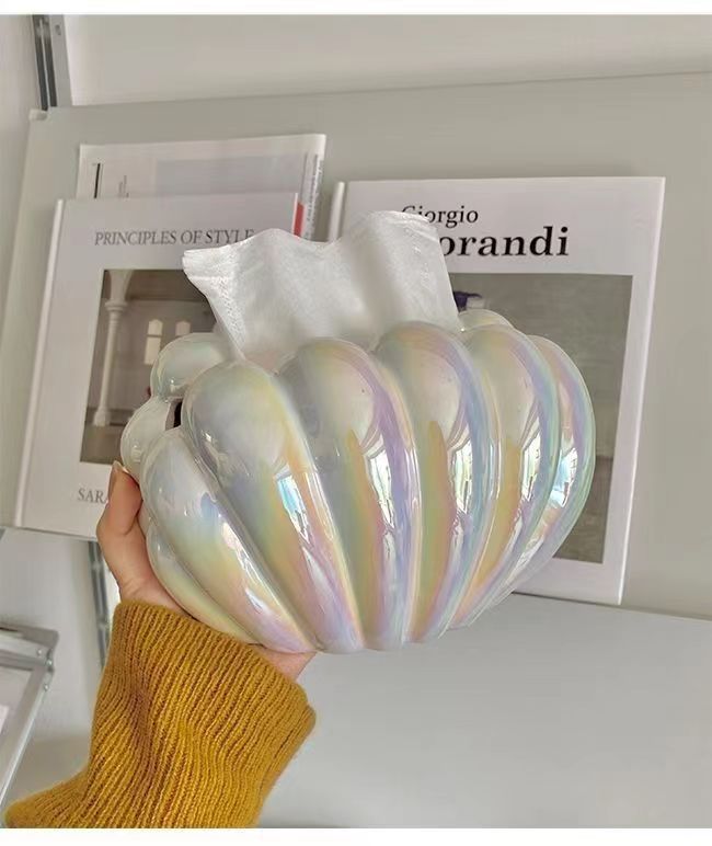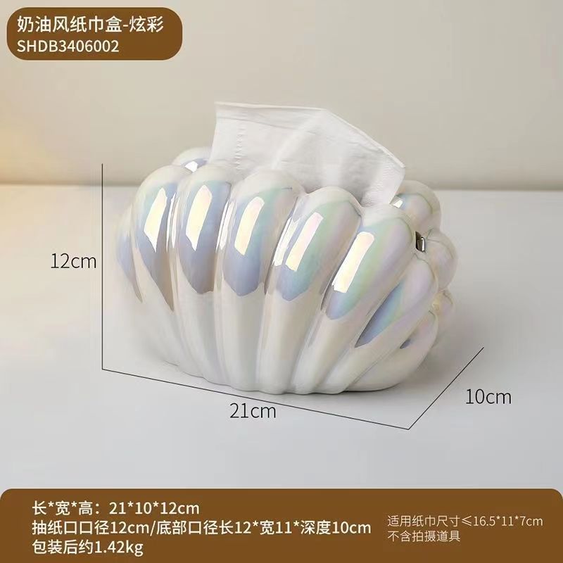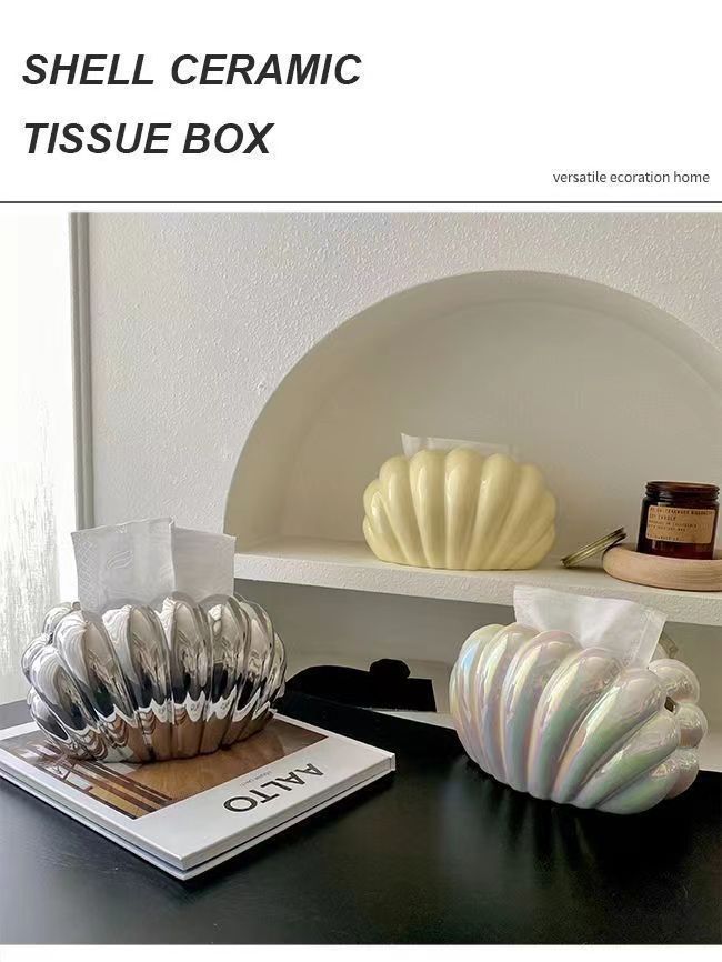 인 스타일 세라믹 펄 쉘 티슈 박스 홈 장식품 가벼운 럭셔리 거실 커피 테이블 식탁 장식 조직 상자