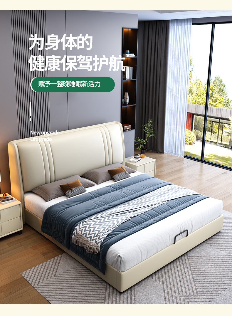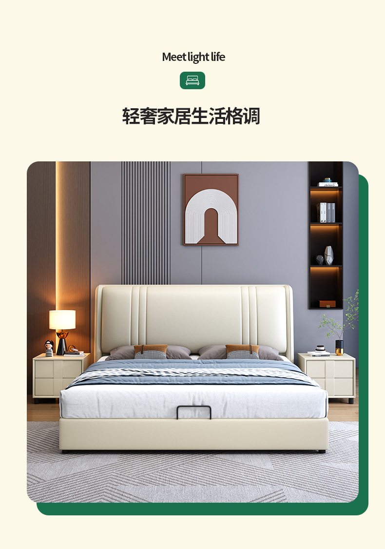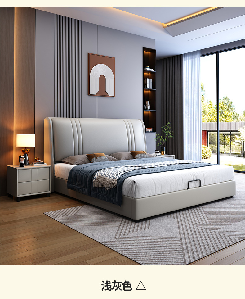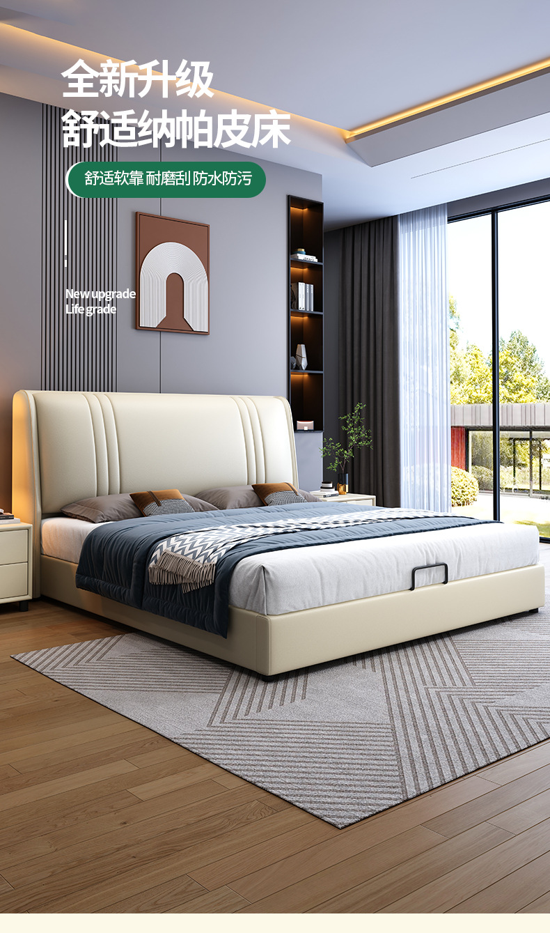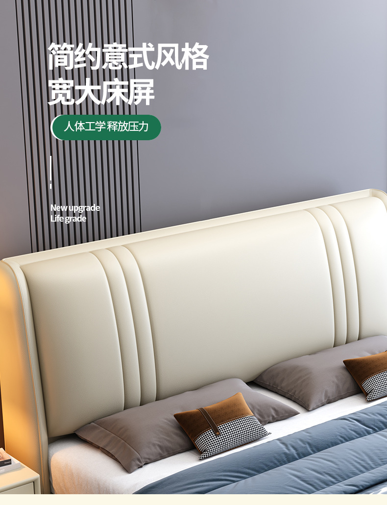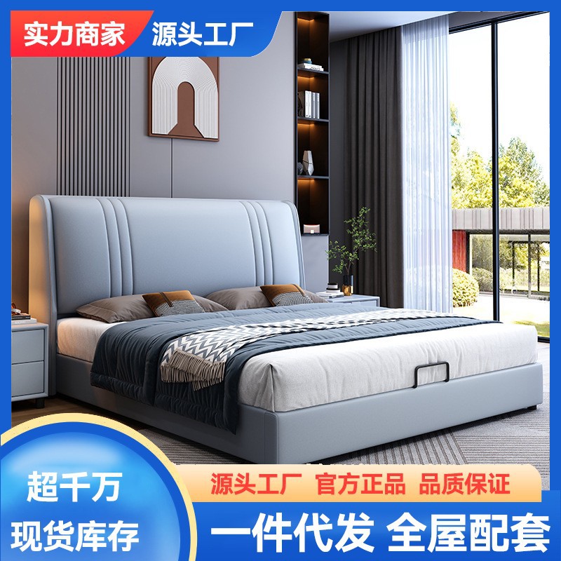 현대 간단한 1.5 m 가죽 침대 노르딕 스타일 가벼운 럭셔리 소프트 침대 작은 아파트 1.8 마스터 침실 더블 이탈리아 미니멀리스트 침대스토어 가기
