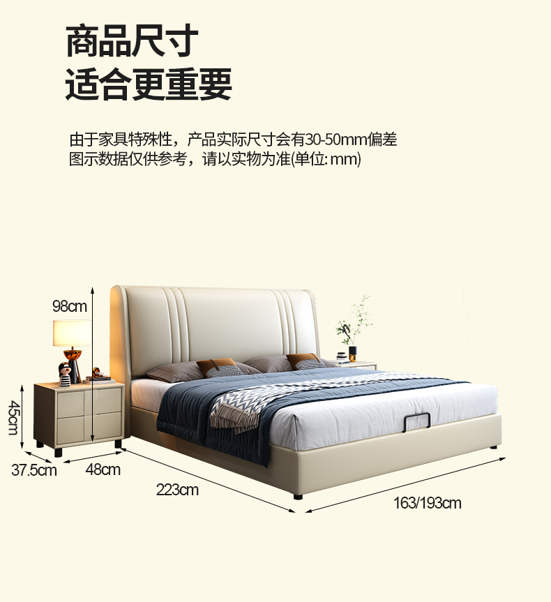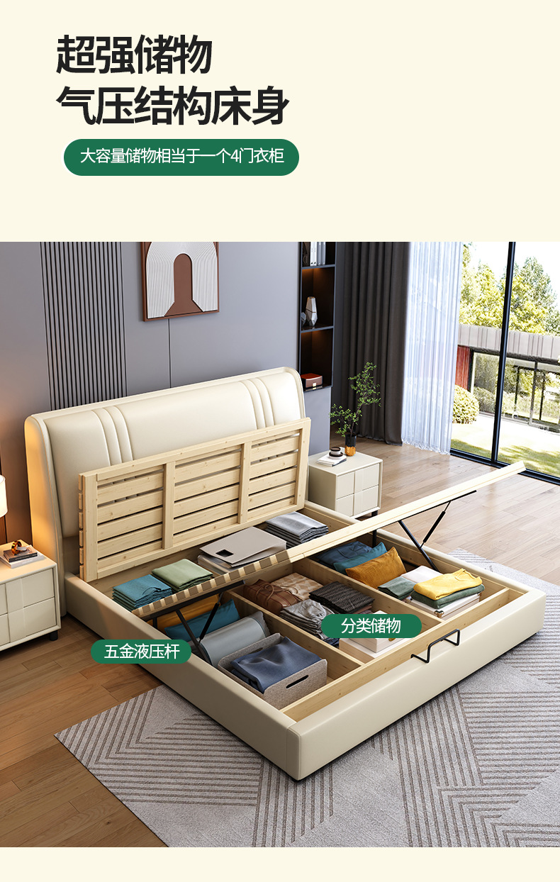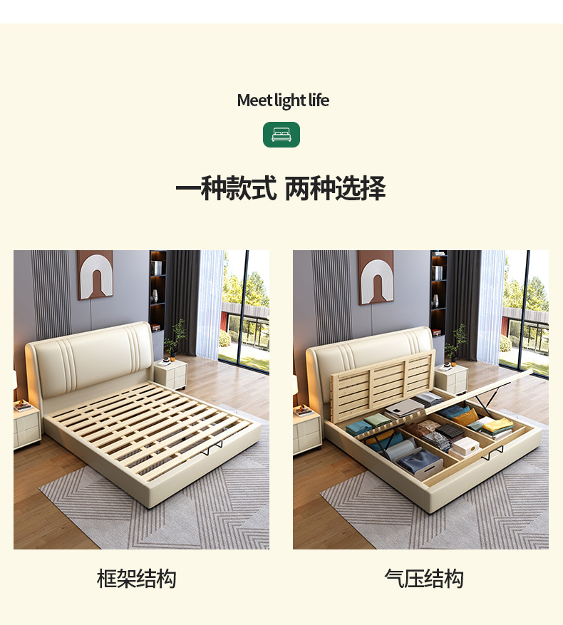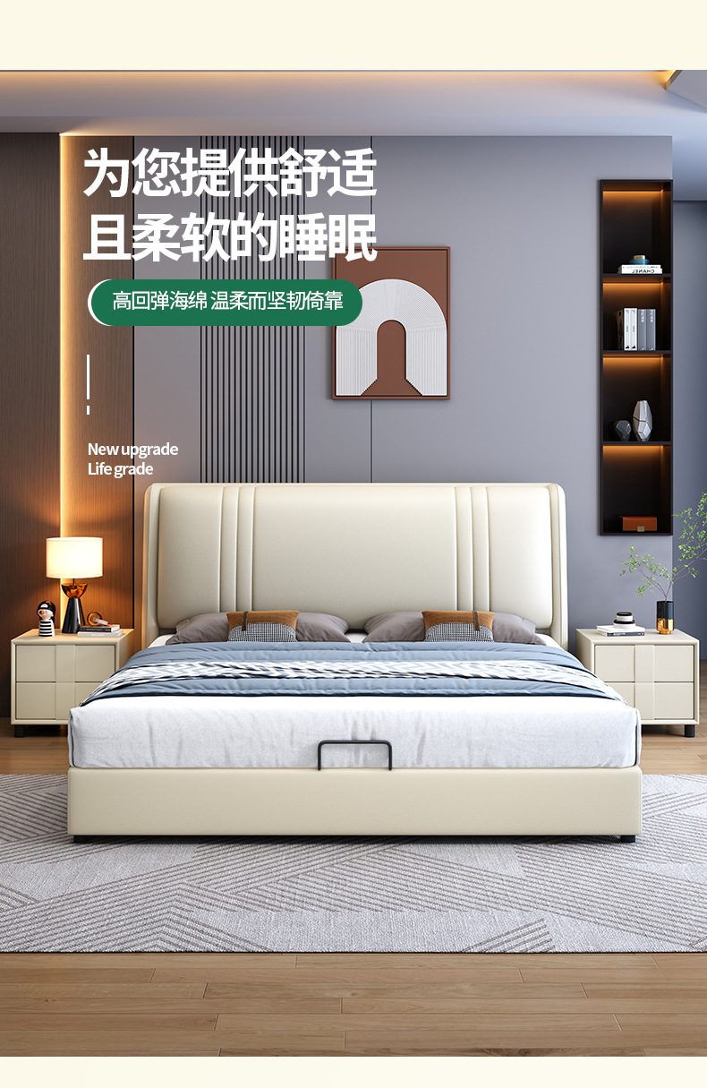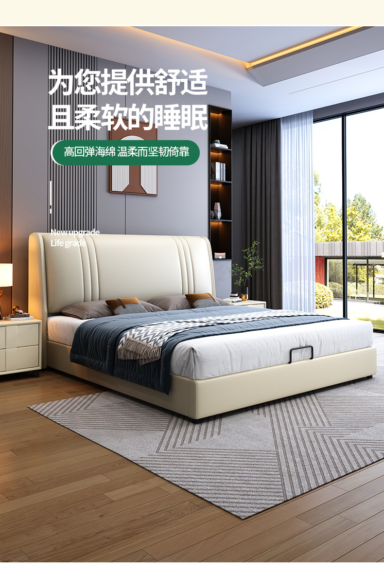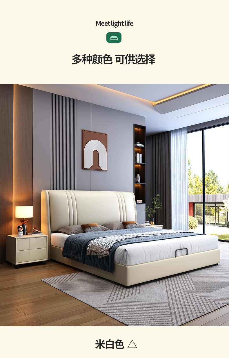 현대 간단한 1.5 m 가죽 침대 노르딕 스타일 가벼운 럭셔리 소프트 침대 작은 아파트 1.8 마스터 침실 더블 이탈리아 미니멀리스트 침대스토어 가기