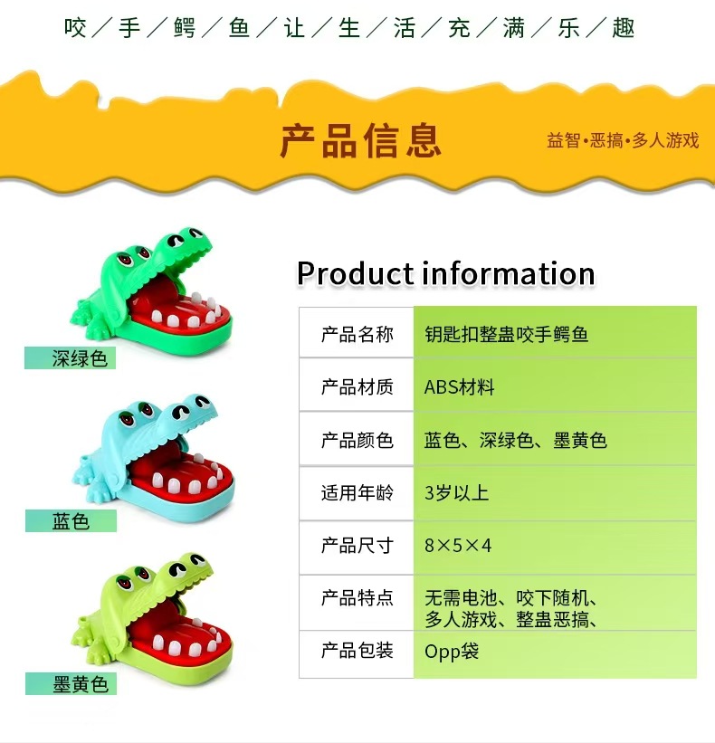 국경 간 손가락 물린 악어 장난감 상어 이빨 당기는 부모-자식 게임 사악한 개 손 물린 장난감 어린이 까다로운 소품스토어 가기