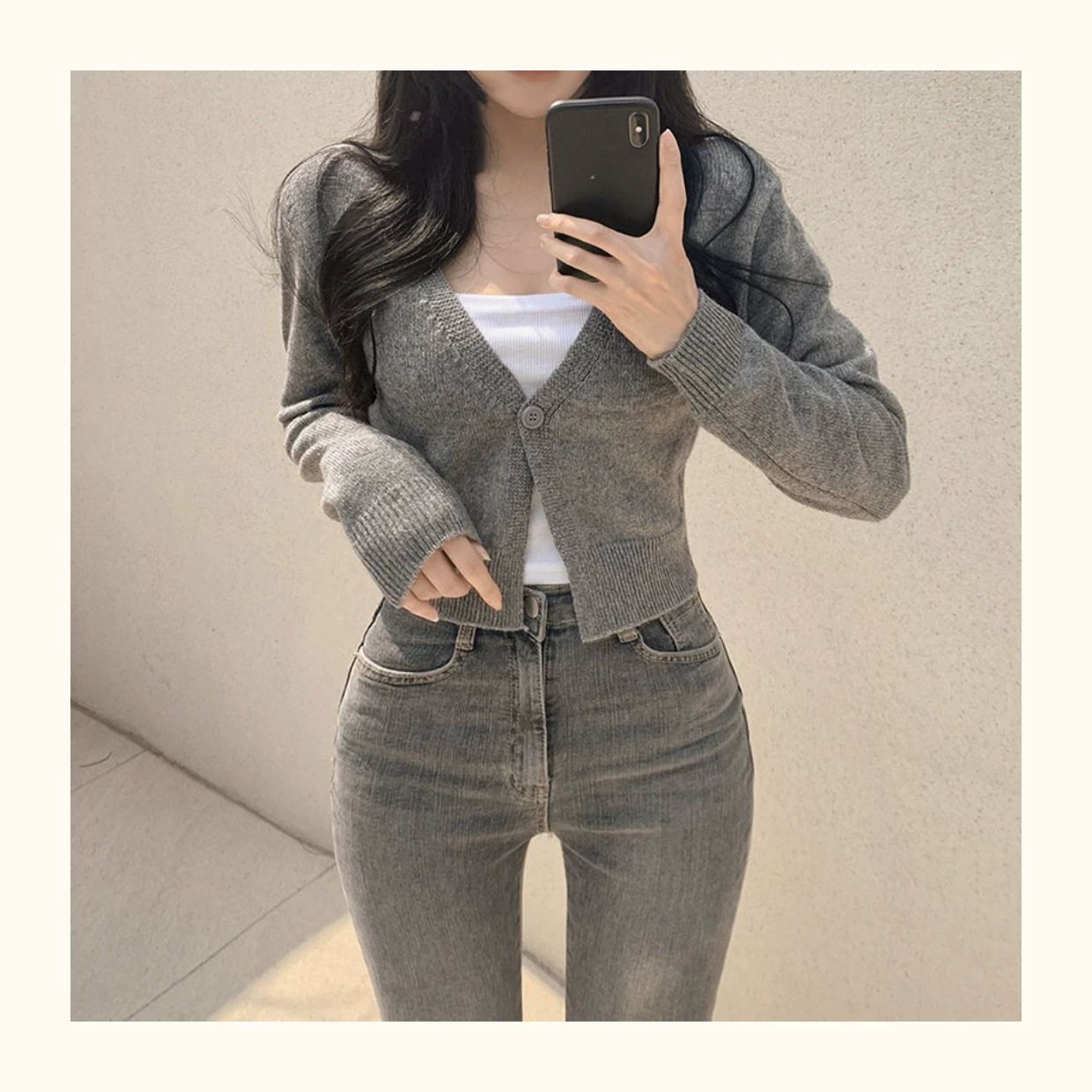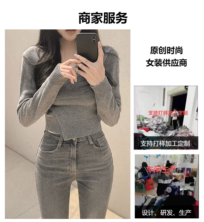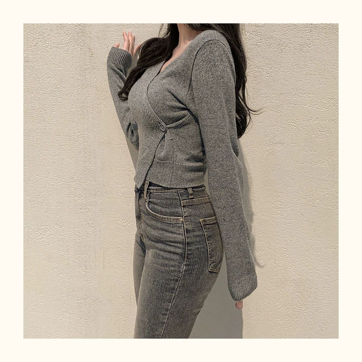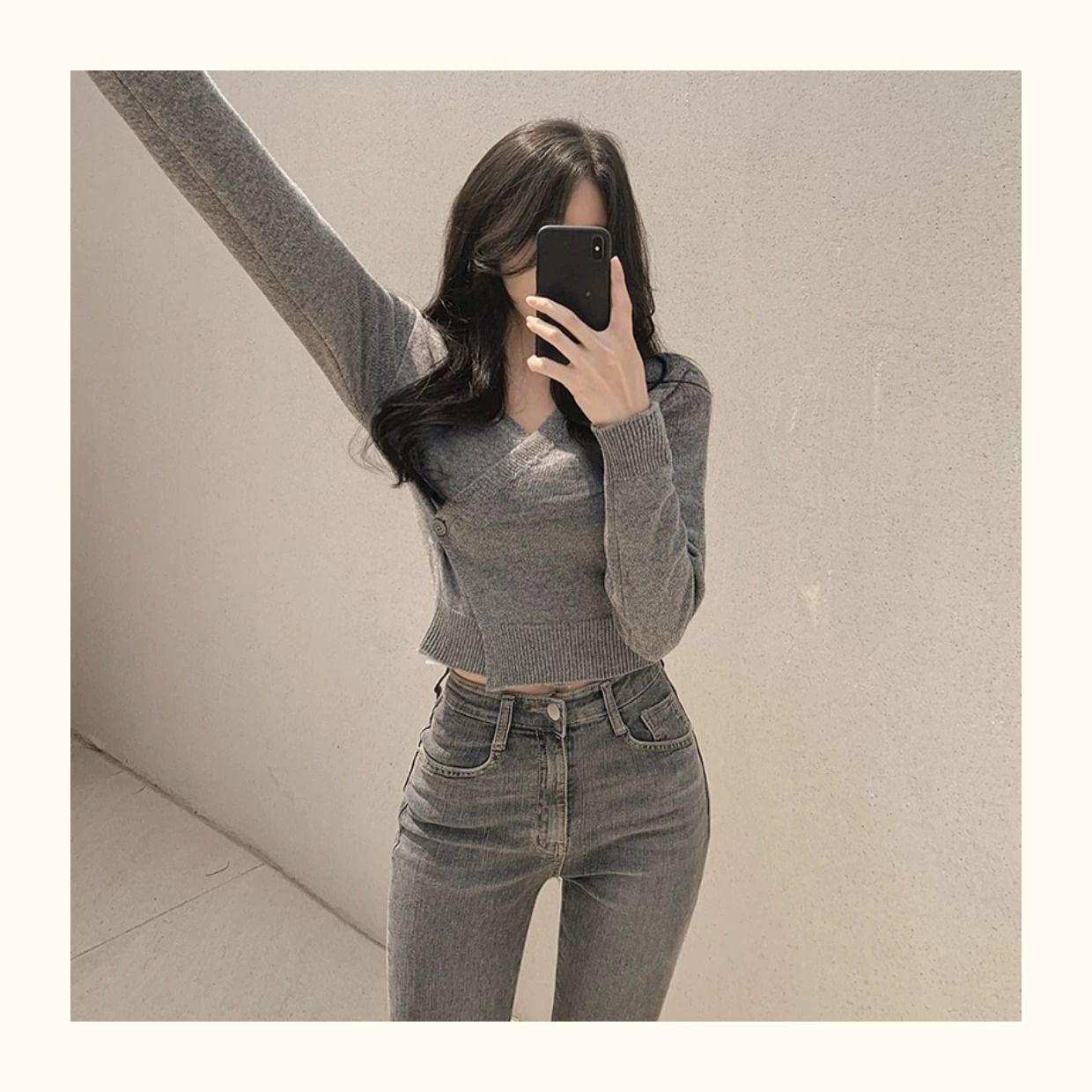 순수한 욕망 스타일 달콤하고 매운 V 넥 울 스웨터 여성의 2024 가을 및 겨울 새로운 슬림 핏 솔리드 컬러 슬리밍 짧은 긴팔 탑스토어 가기