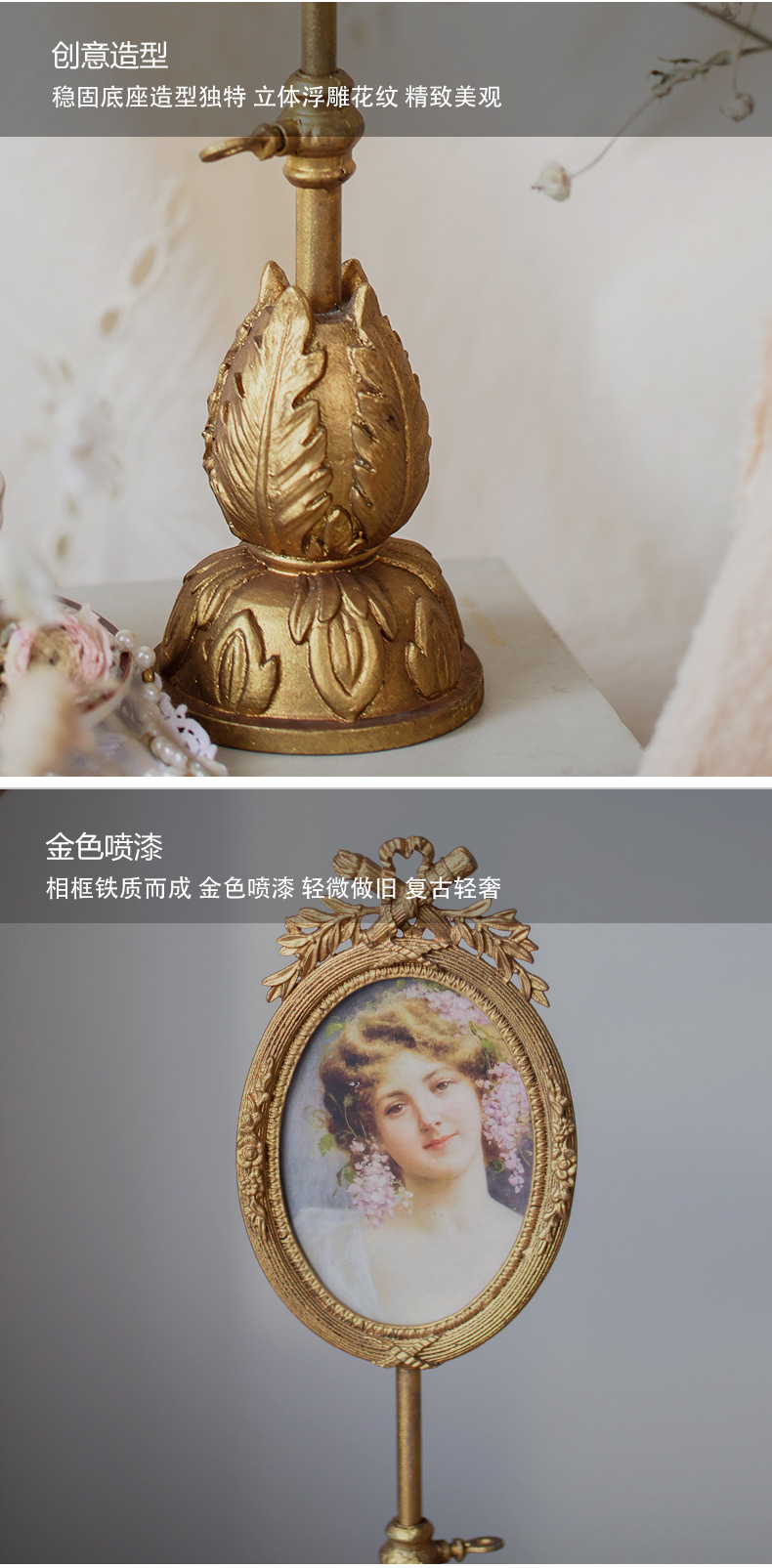 프랑스 금속 사진 프레임 테이블 그림 복고풍 하트 모양의 장식 하이 엔드 감각 황금 홈스테이 장식품에 살 수 있습니다.