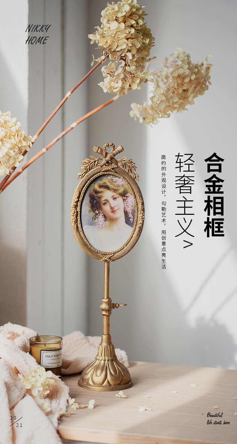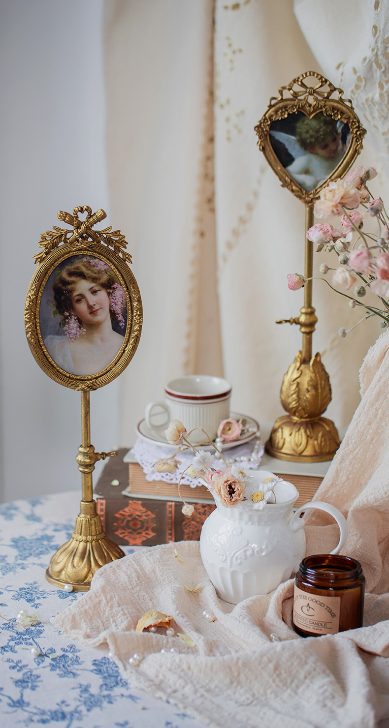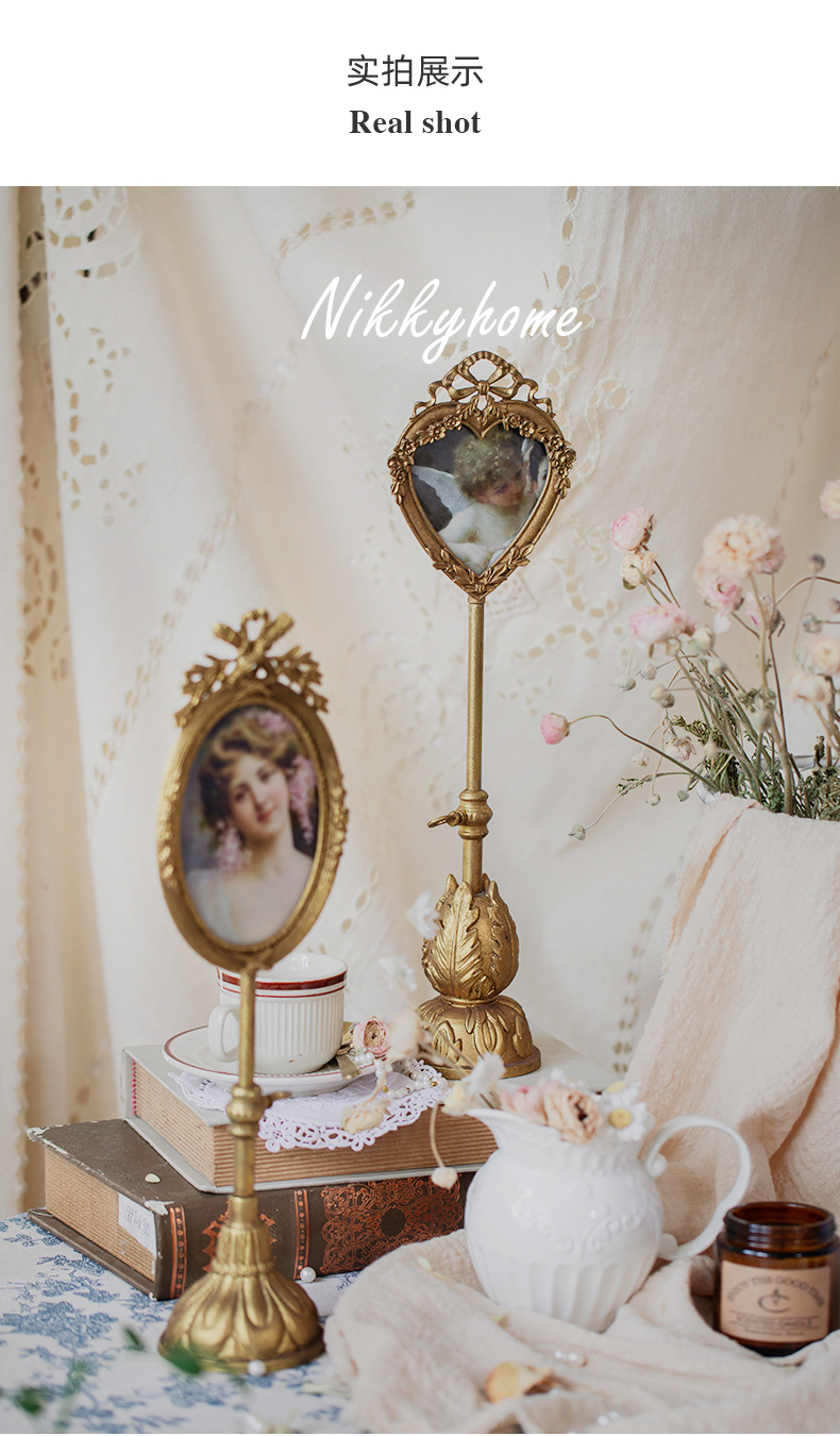 프랑스 금속 사진 프레임 테이블 그림 복고풍 하트 모양의 장식 하이 엔드 감각 황금 홈스테이 장식품에 살 수 있습니다.스토어 가기