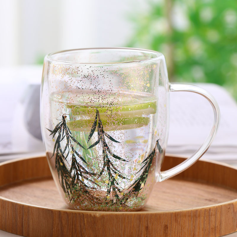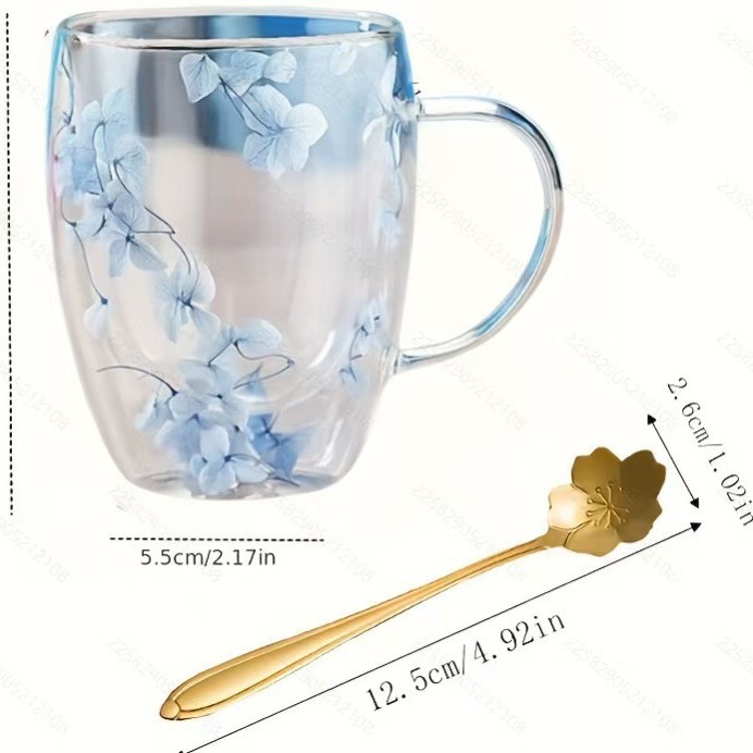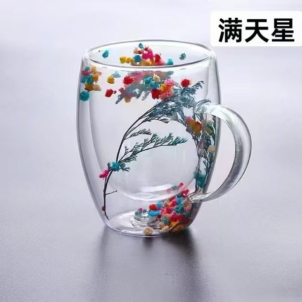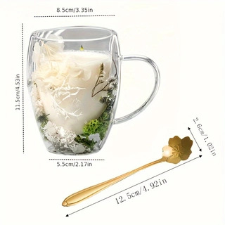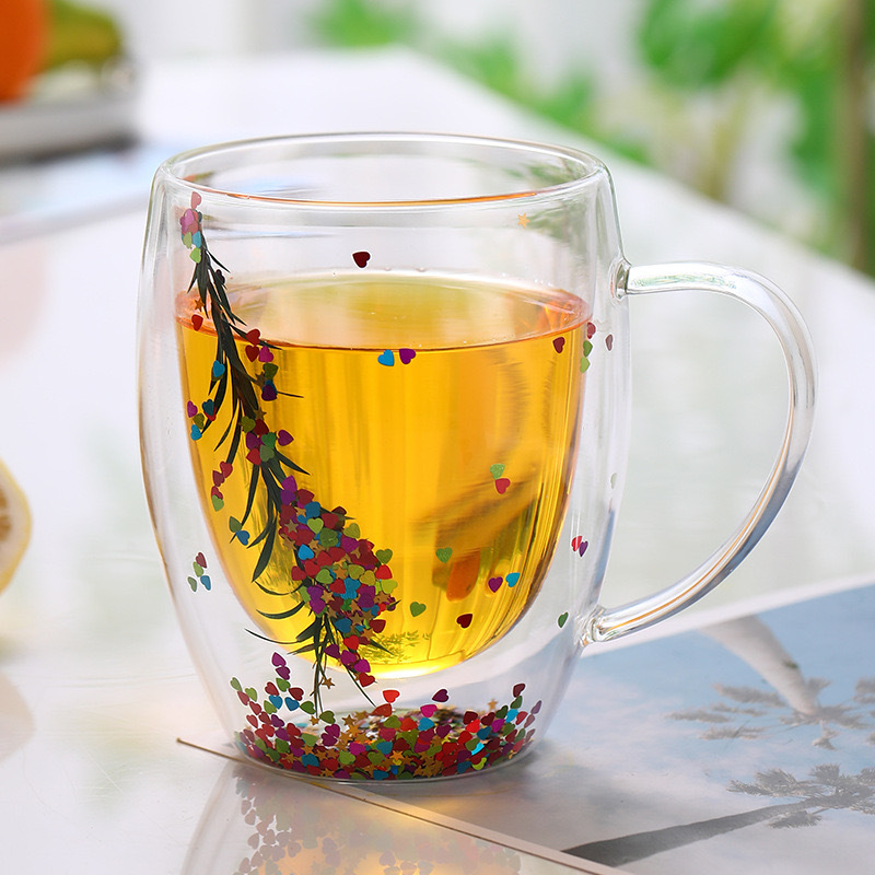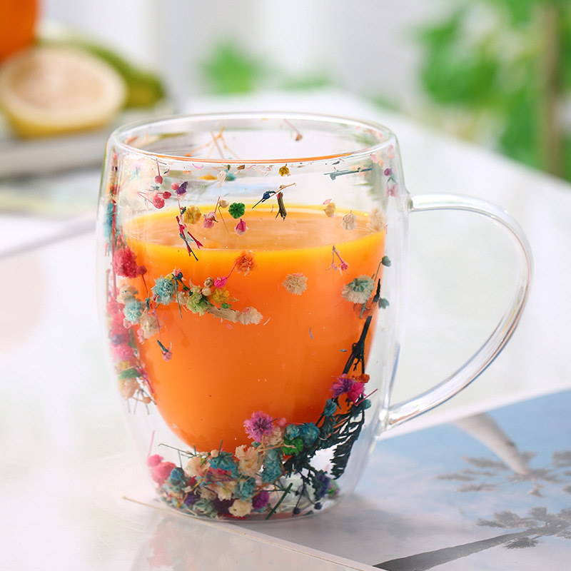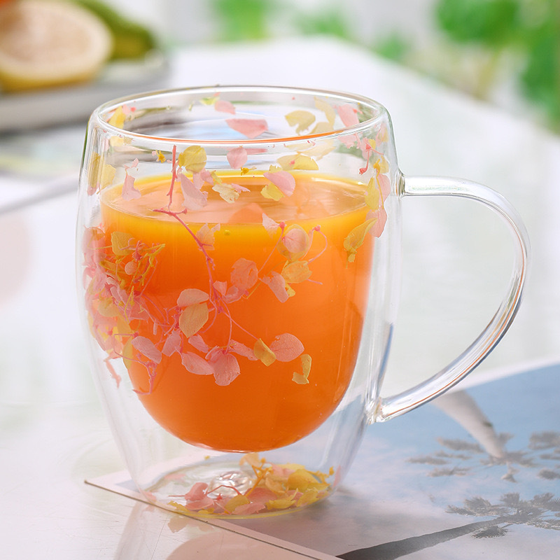 손잡이가 있는 맞춤형 달걀 모양의 이중 꽃잎 유리 컵, 고온 방지 및 고가치 말린 꽃 컵, 이중 컵, 창의적인 컵스토어 가기