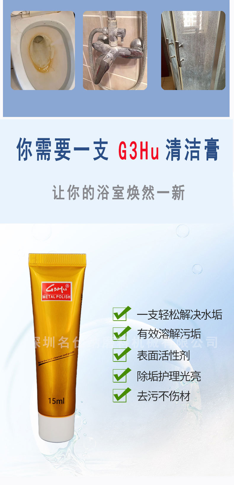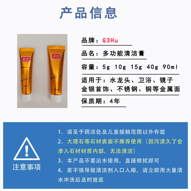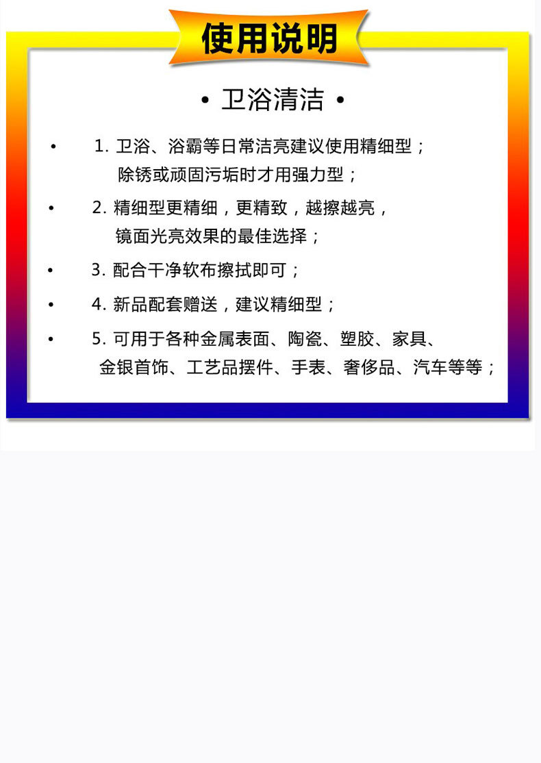 스테인리스 세척제, 가정용 금속 광택제, 화상자국 및 검은때 세척제, 광택 및 녹 제거제, 얼룩 제거제