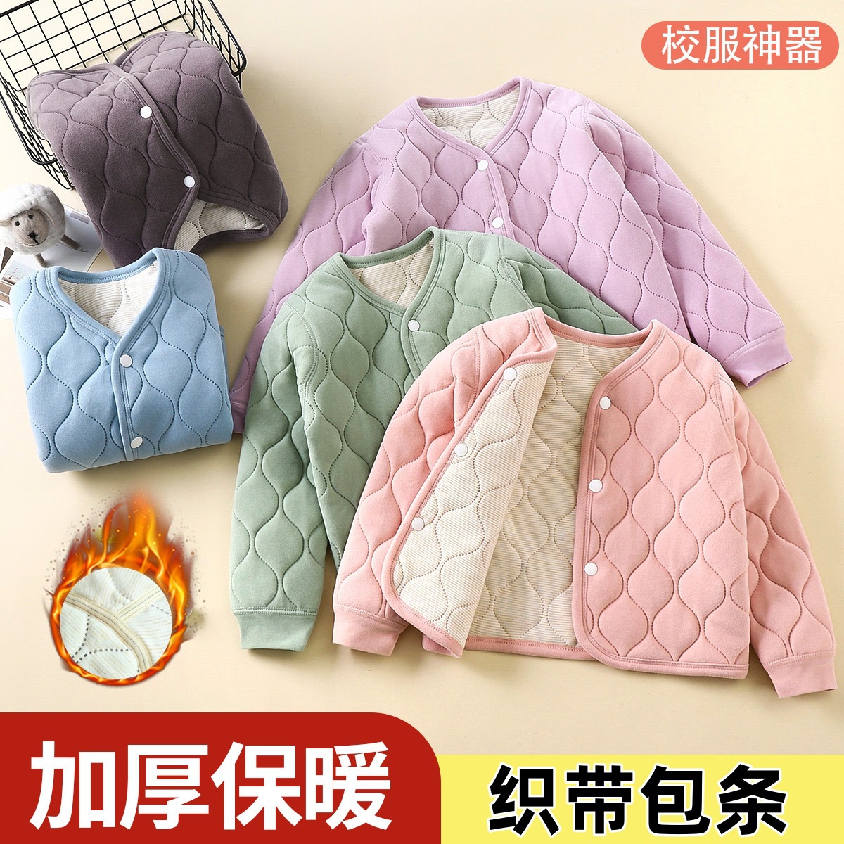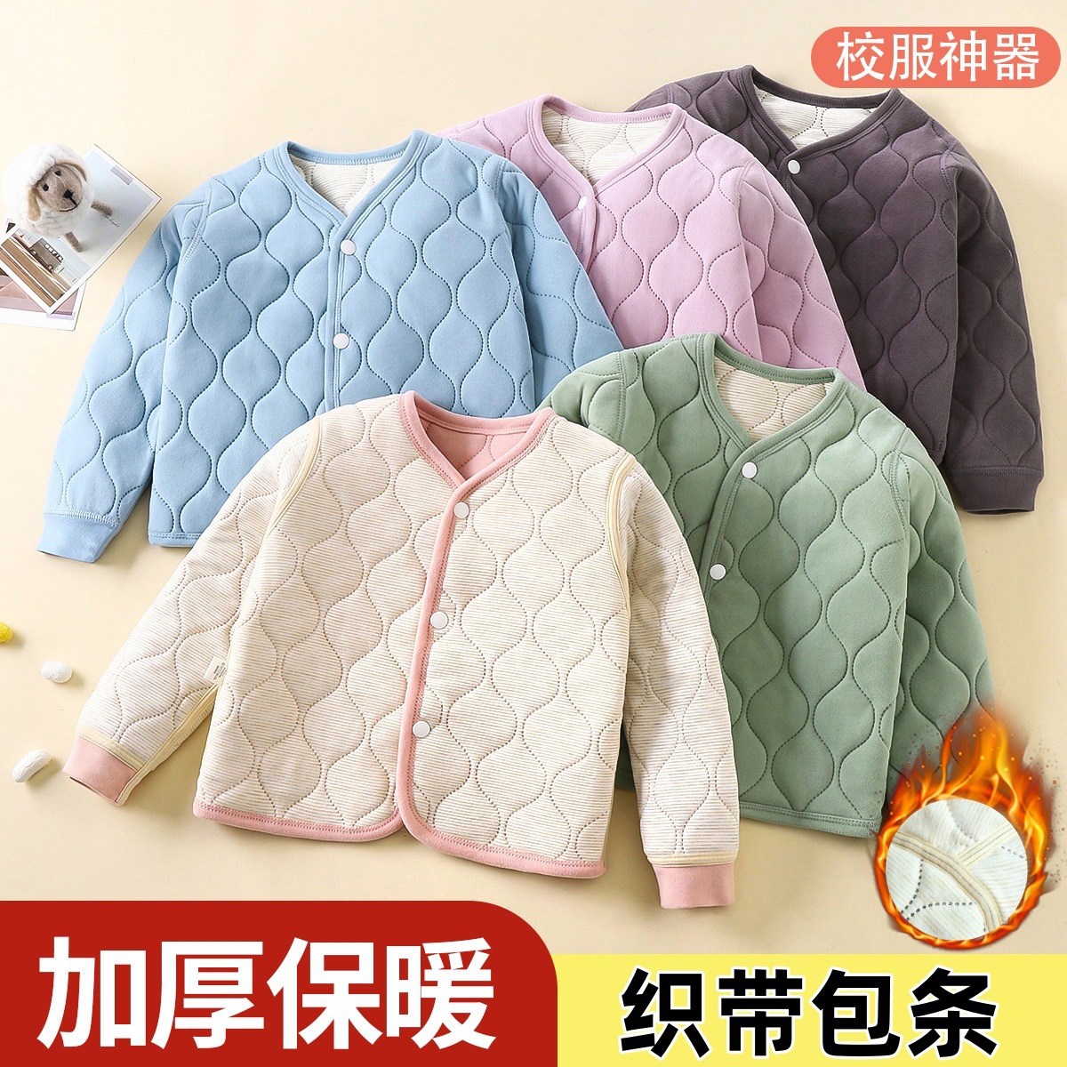 어린이 따뜻한 학교 제복 아티팩트 코트 3 층 코튼 랩 스트립 가을 및 겨울 내부 담즙 두꺼운 면화 옷 소년 소녀 학생스토어 가기