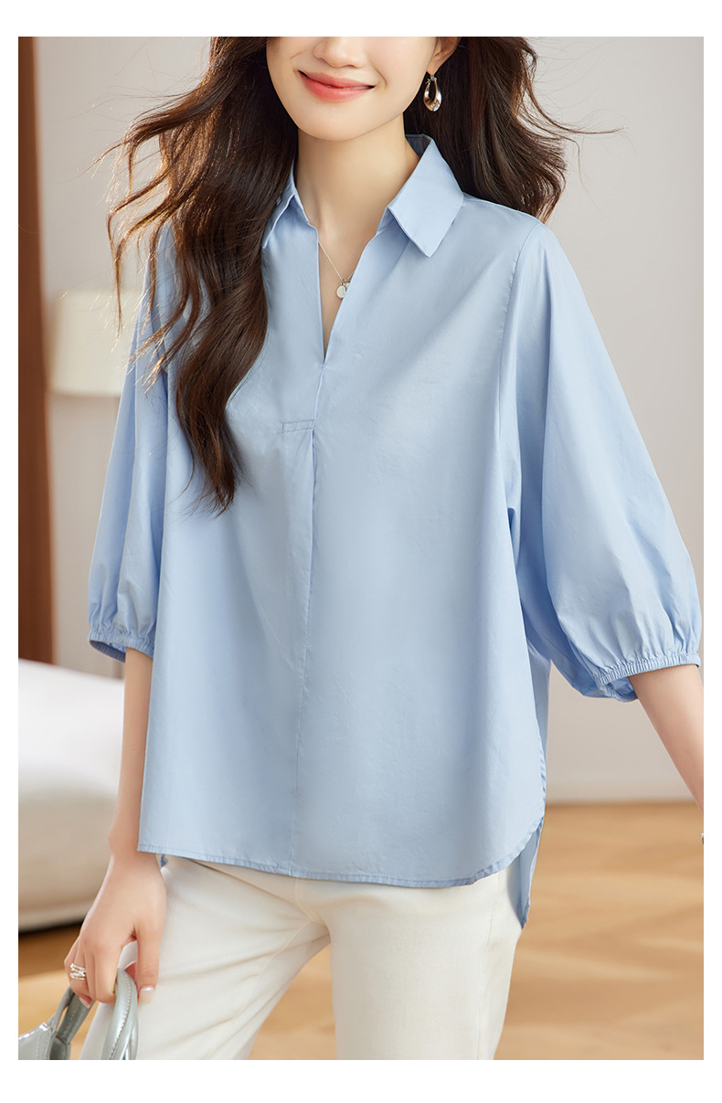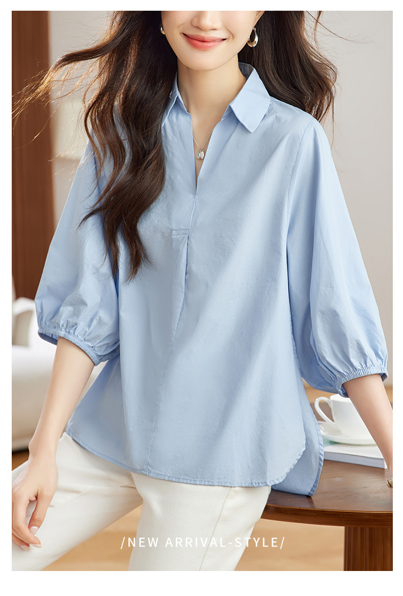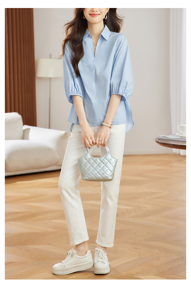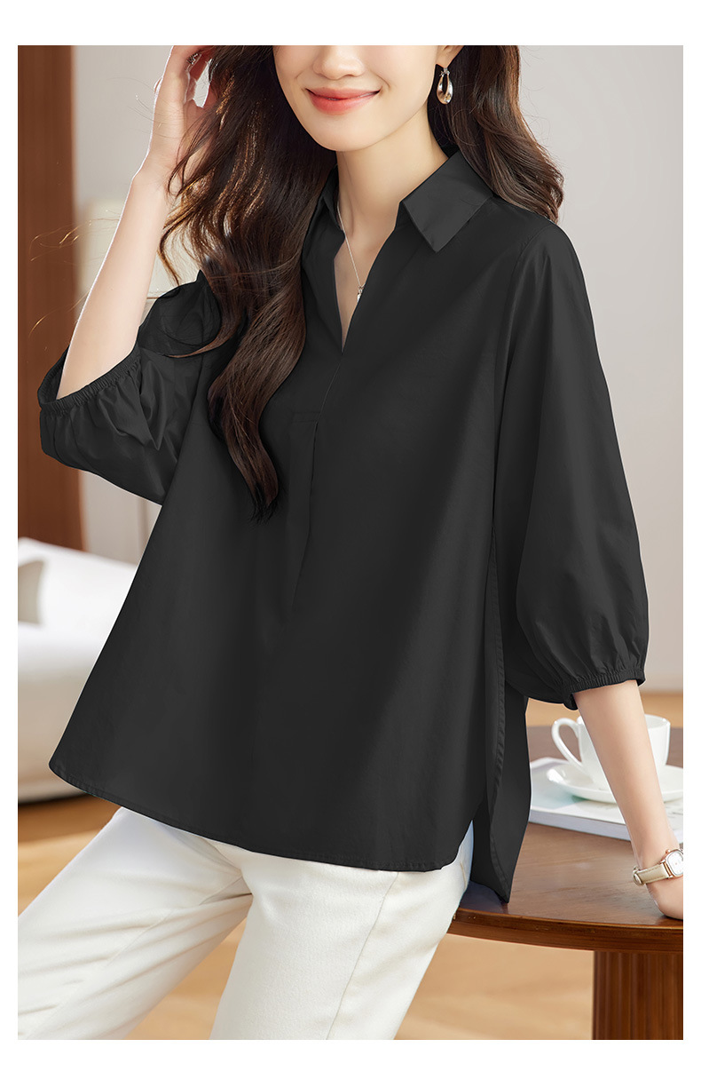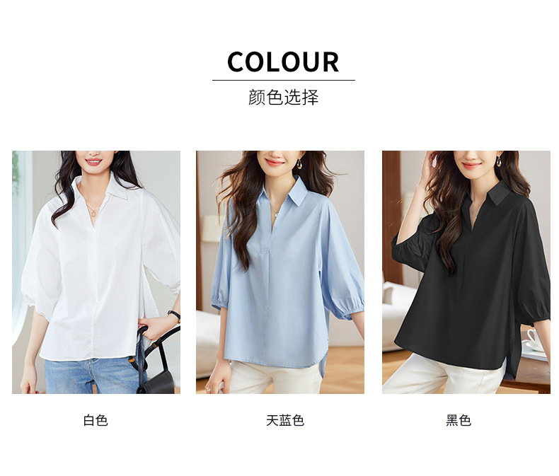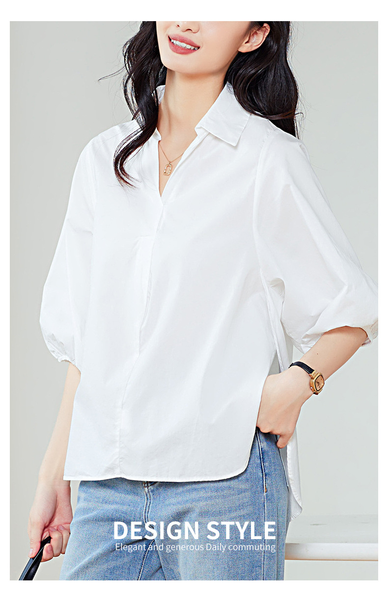 공장 직판 라펠 사이드 슬릿 7부 소매 셔츠 여성용 2026 여름 신상 스타일리쉬 캐주얼 만능 상의스토어 가기
