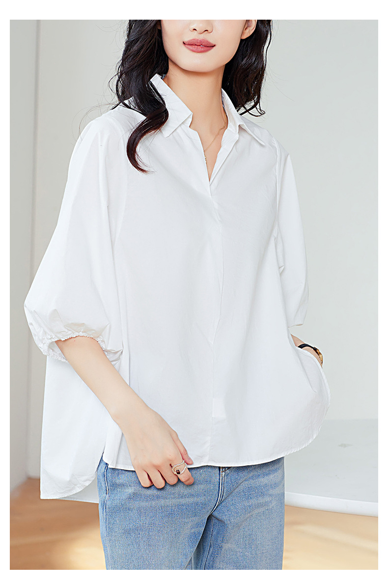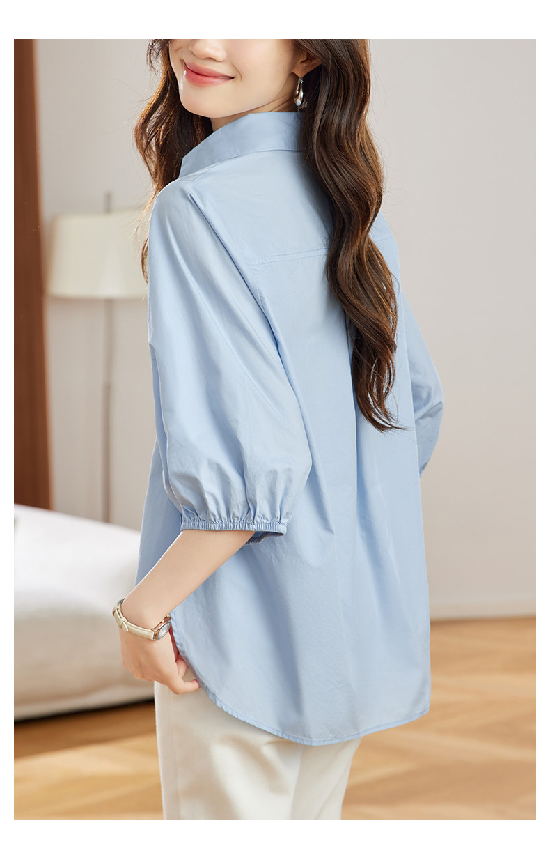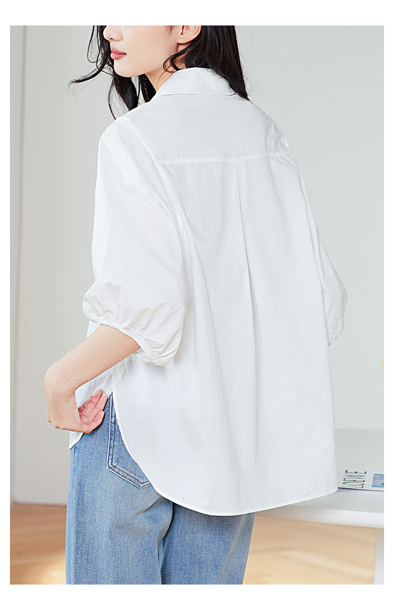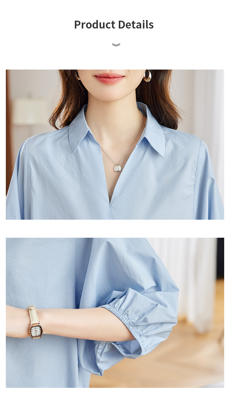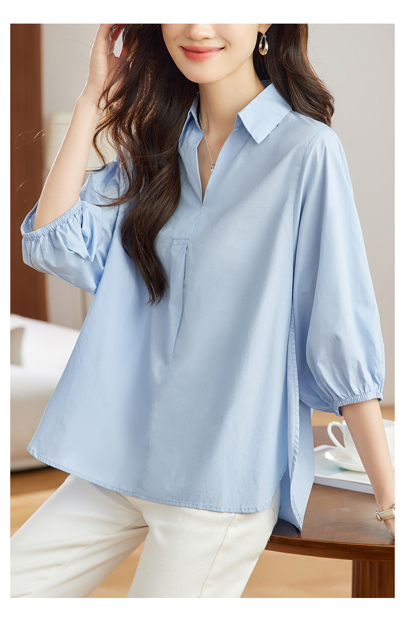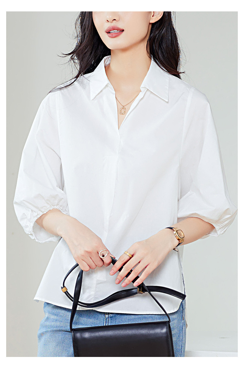 공장 직판 라펠 사이드 슬릿 7부 소매 셔츠 여성용 2026 여름 신상 스타일리쉬 캐주얼 만능 상의스토어 가기