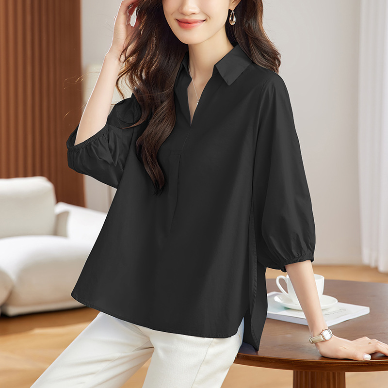 공장 직판 라펠 사이드 슬릿 7부 소매 셔츠 여성용 2026 여름 신상 스타일리쉬 캐주얼 만능 상의