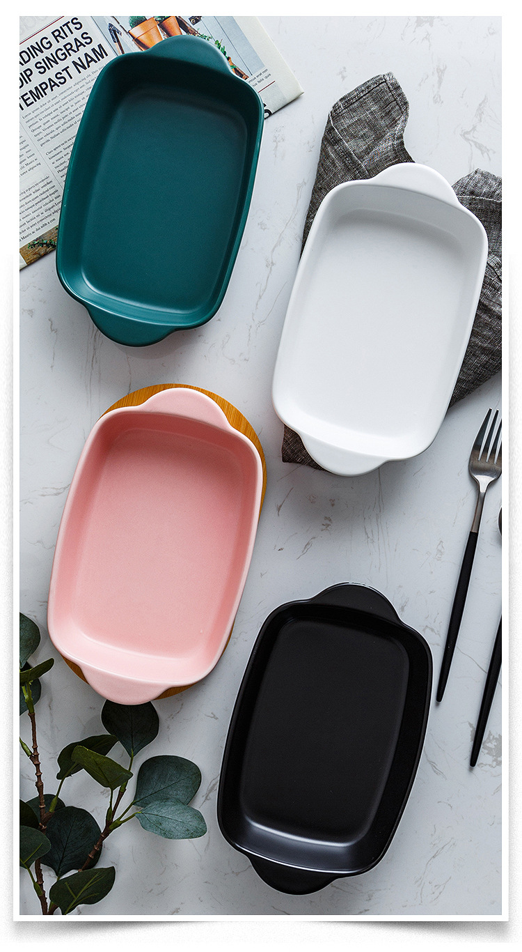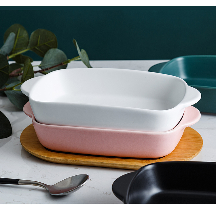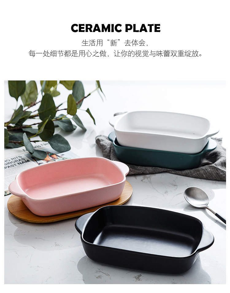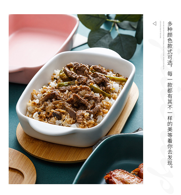 나무 커버 트레이가있는 이진 베이킹 플레이트 오븐 세라믹 플레이트 전자 레인지 베이킹 플레이트 구운 쌀 플레이트 홈 조식 플레이트