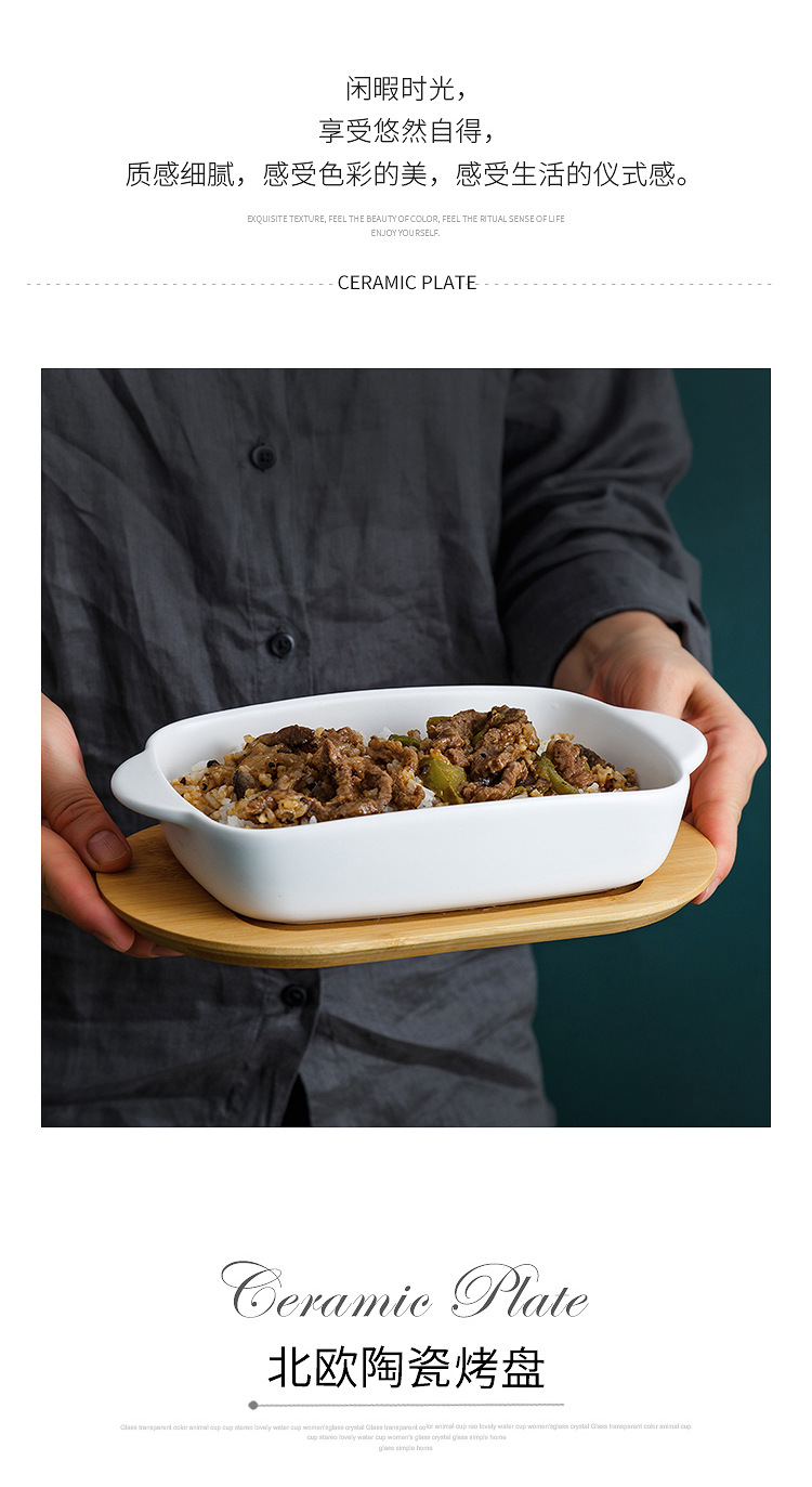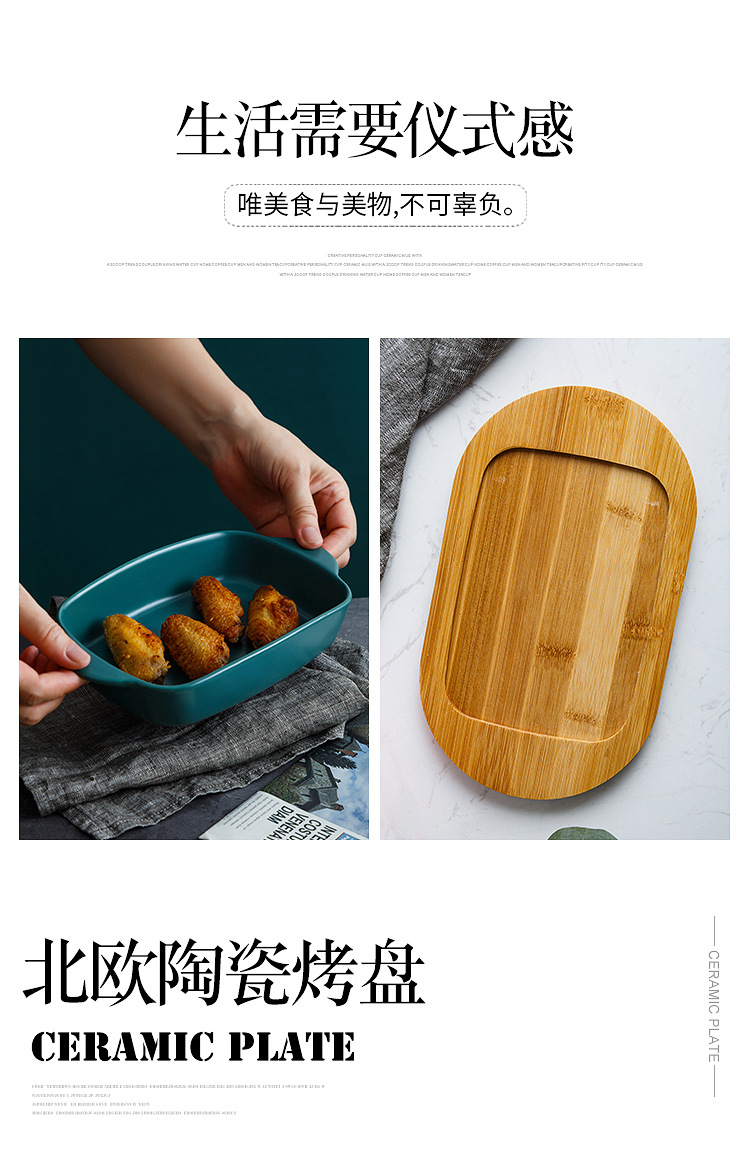 나무 커버 트레이가있는 이진 베이킹 플레이트 오븐 세라믹 플레이트 전자 레인지 베이킹 플레이트 구운 쌀 플레이트 홈 조식 플레이트스토어 가기