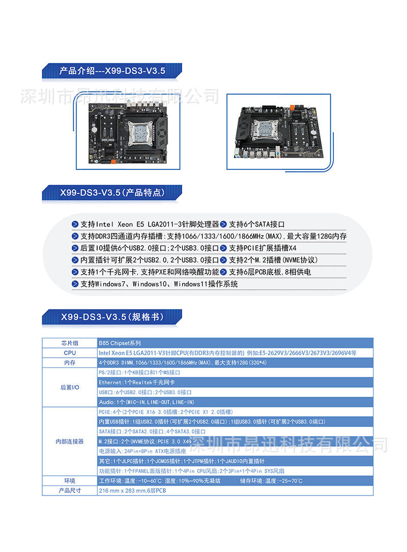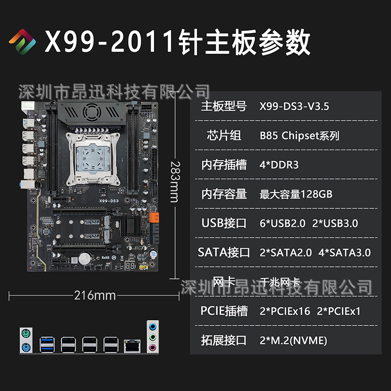 새로운 X99-DS3-DDR3 데스크탑 컴퓨터 마더보드 LGA2011-3 고전력 소비 CPU 8층 PCB