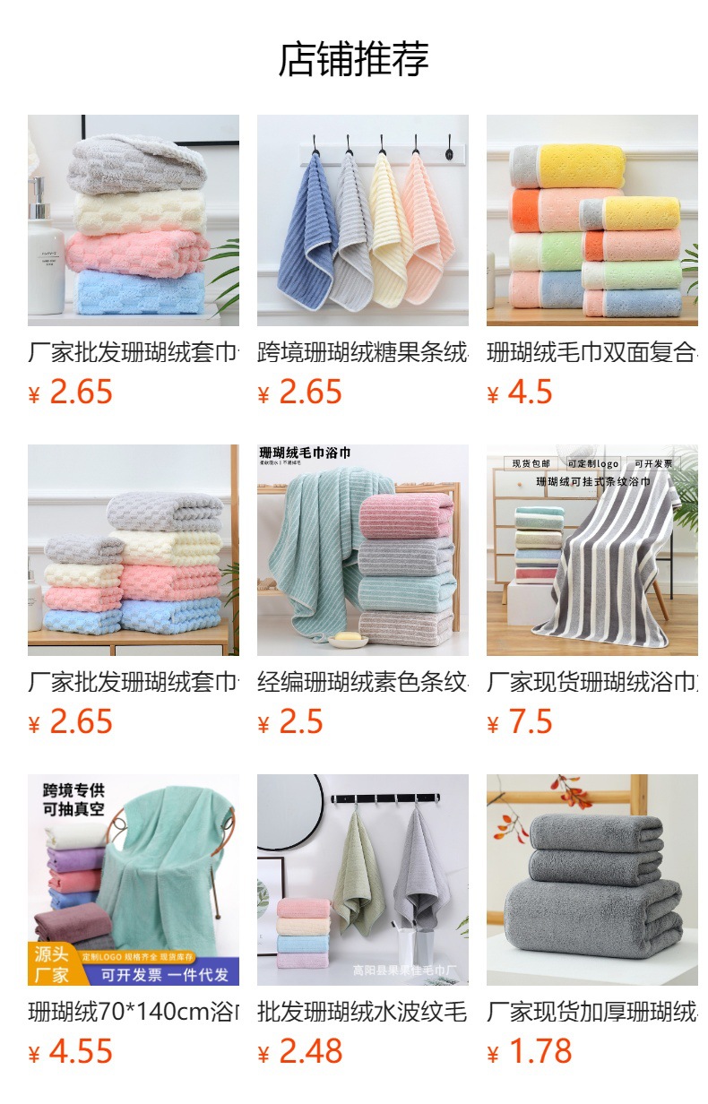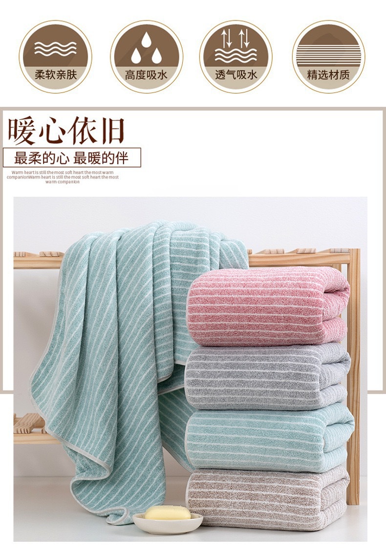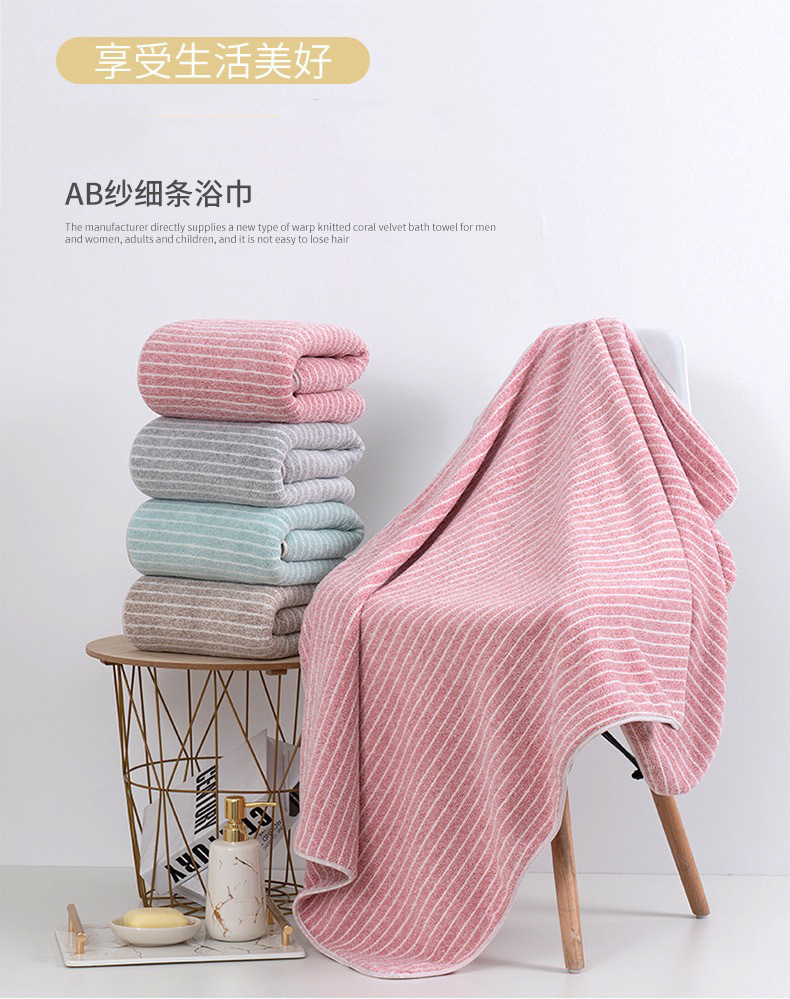 워프 니트 산호 양털 일반 줄무늬 수건 목욕 타월 부드러운 흡수성 남성과 여성의 가정용 목욕 타월 도매스토어 가기