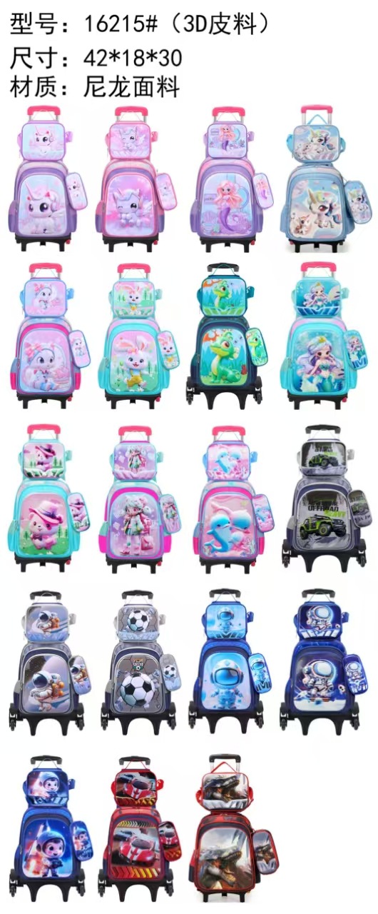 공장 도매 재고 폭발 비 침해 3 조각 트롤리 가방 만화 어린이 숄더백 트롤리 백팩