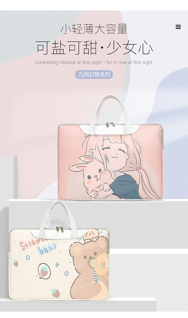 소녀들을 위한 새로운 노트북 가방, 고급스러운 만화 귀여운 라이너 가방, 대학생을 위한 대용량 수납