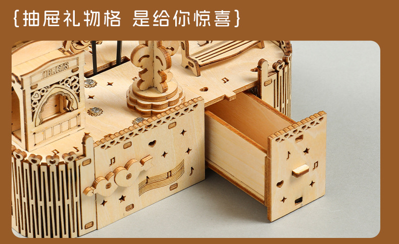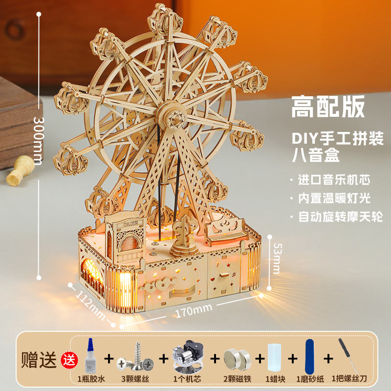 나무 퍼즐 뮤직 박스 관람차 3D 스테레오 조립 모델 어린이 선물 수제 빌딩 블록 장난감스토어 가기
