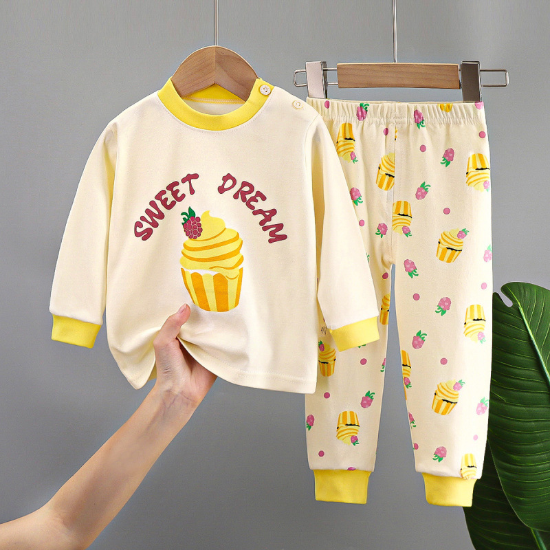 어린이 면화 속옷 세트 아기 따뜻한 가을 옷 가을 바지 소년 소녀 바닥 셔츠 아동복 홈 의류 도매