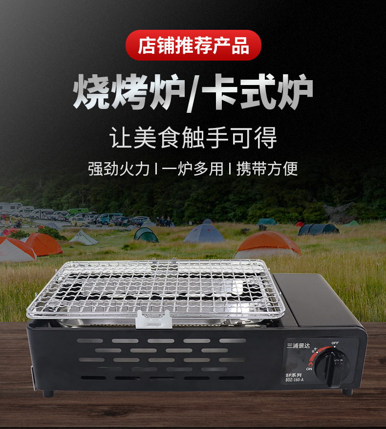 바베큐 휴대용 스토브 마그네틱 밸브 베이킹 트레이 캠핑 이중 목적 오븐 통합 가스 피크닉 미니 바베큐 스토브 도매스토어 가기