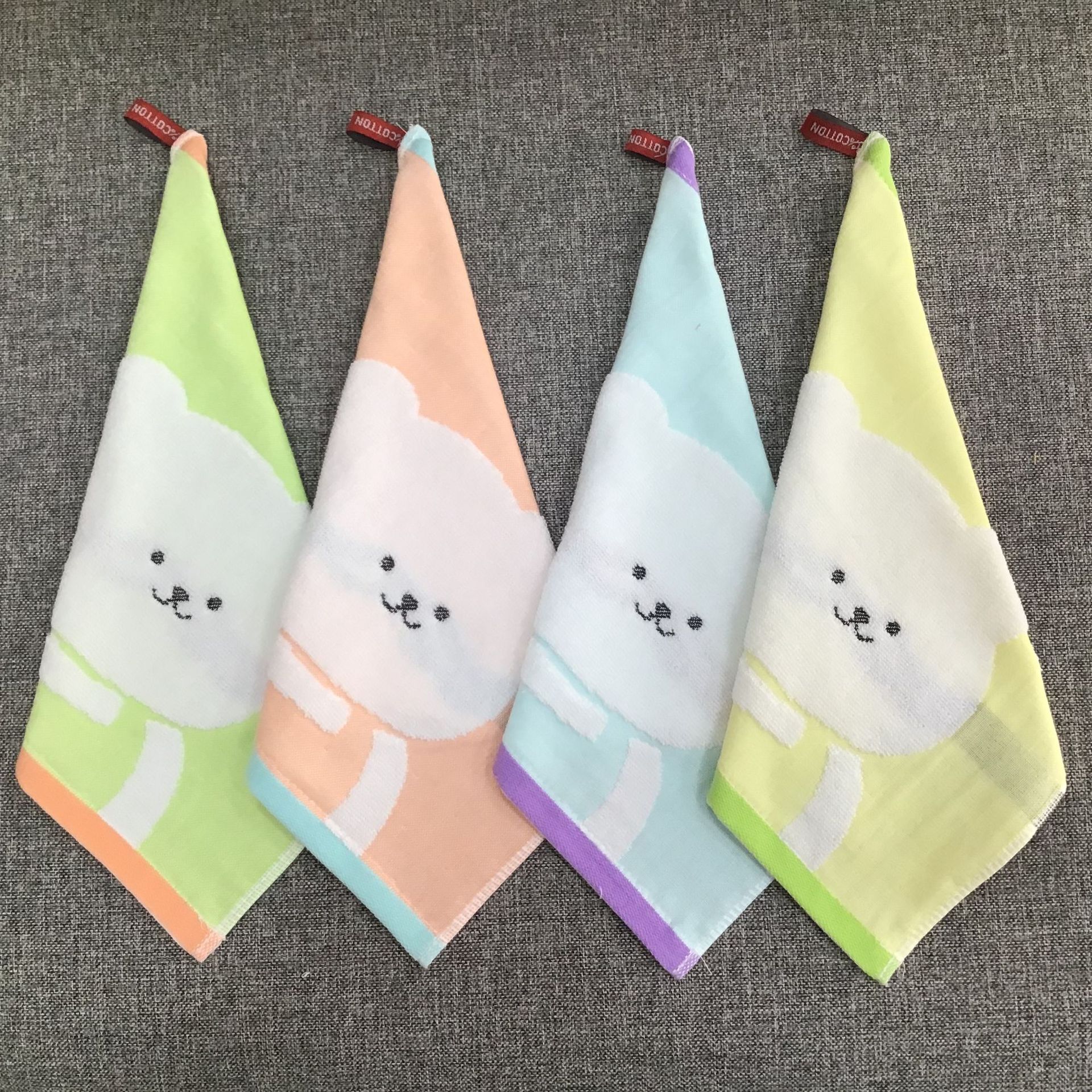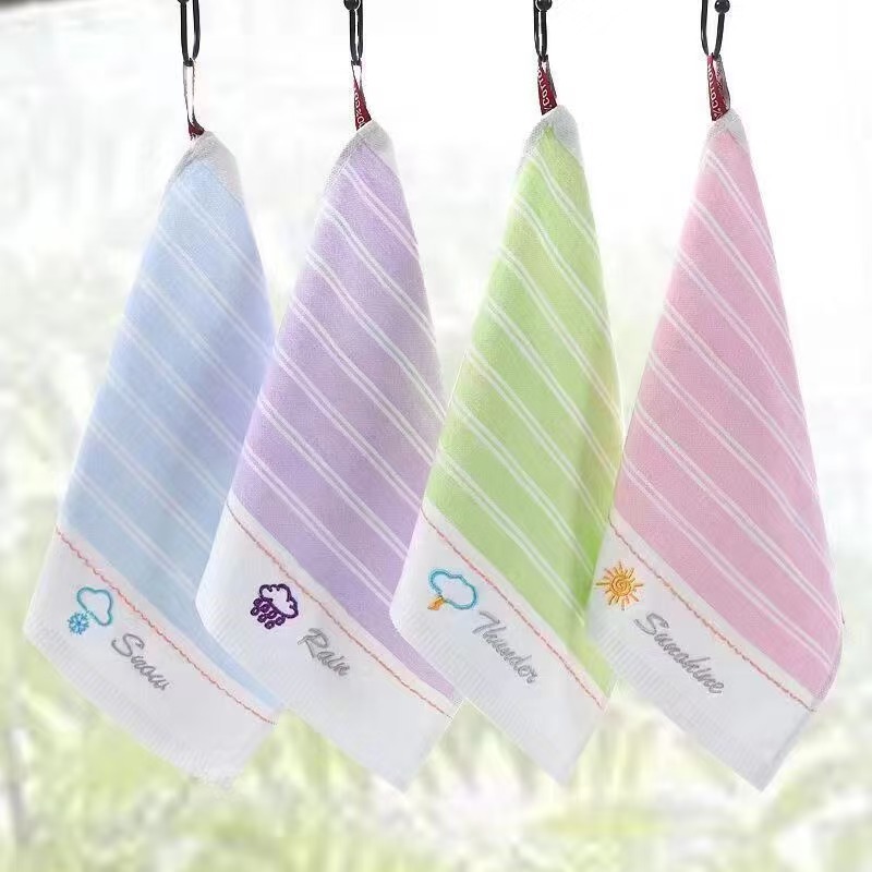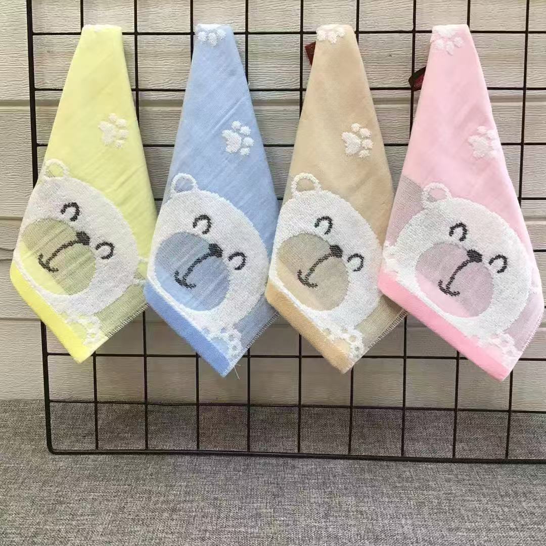 순면 자카드 만화 무지 두꺼운 부드러운 작은 수건 가정용 흡수성 유치원 걸이형 사각 수건 25*25스토어 가기