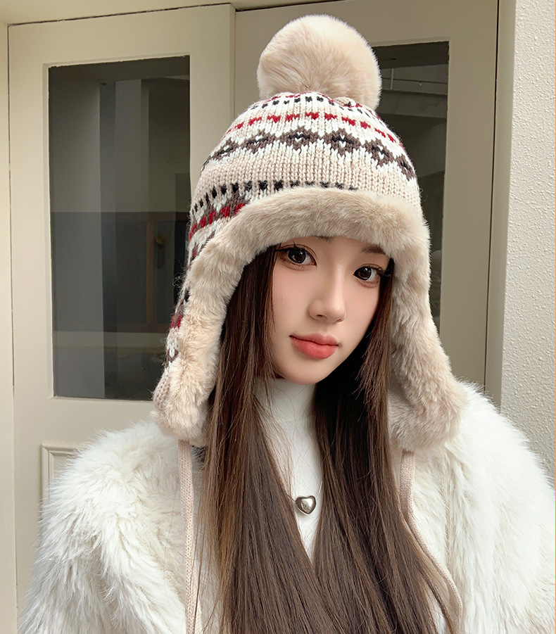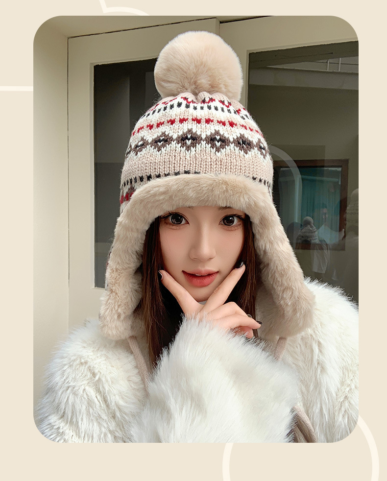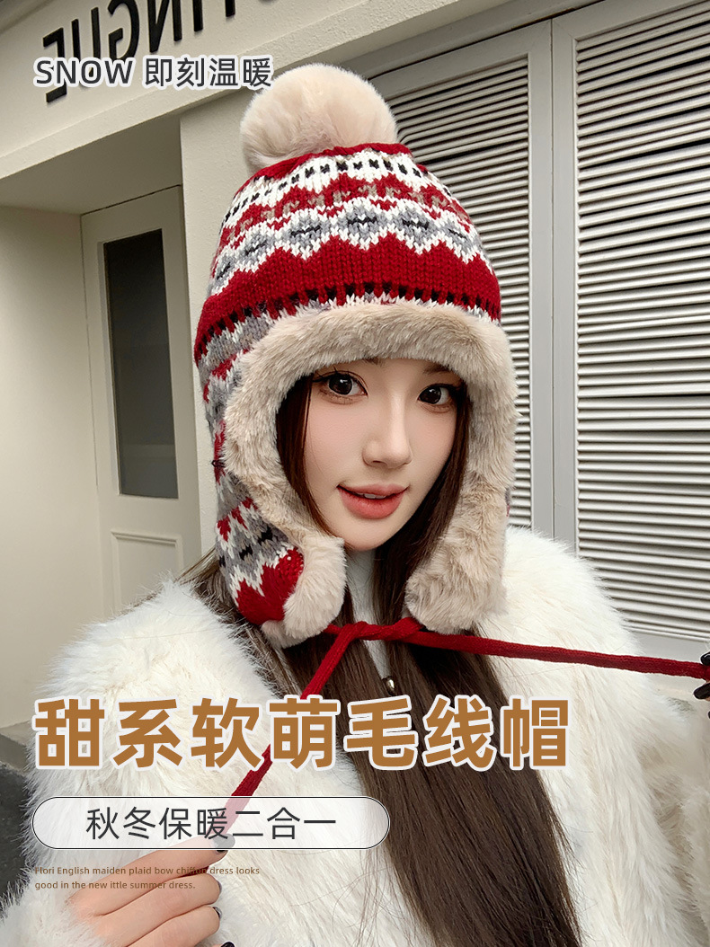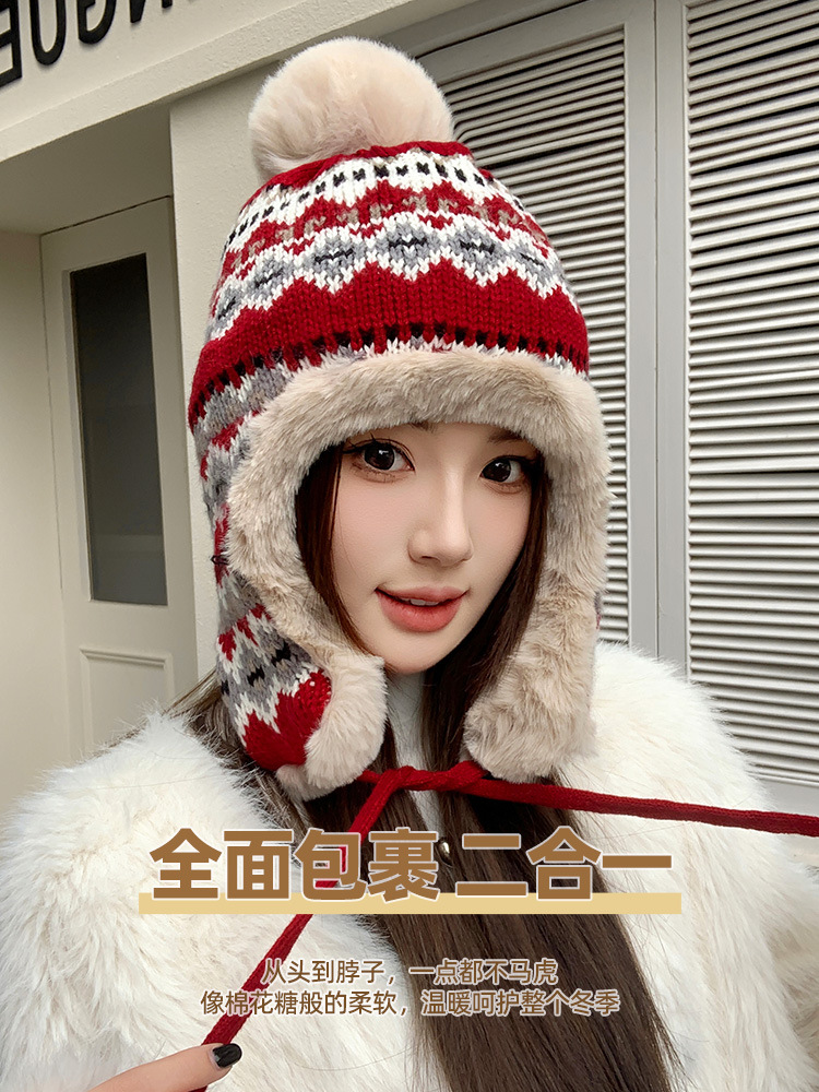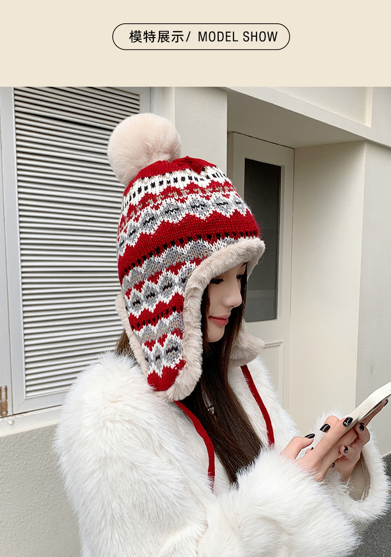 기모 두꺼운 양모 모자 여성의 가을과 겨울 한국 스타일 얼굴 작은 따뜻한 승마 귀 보호자 냉장 큰 머리 레이 펑 모자