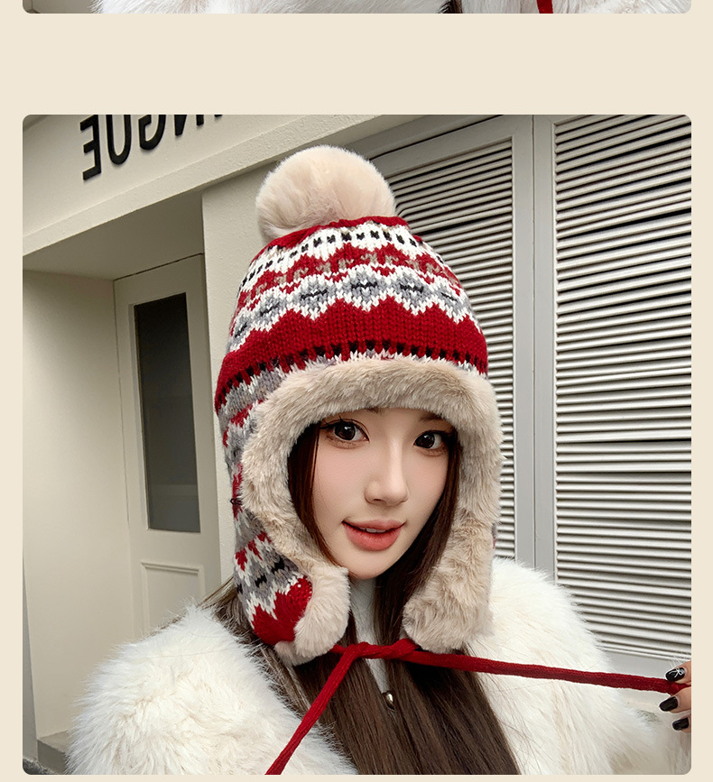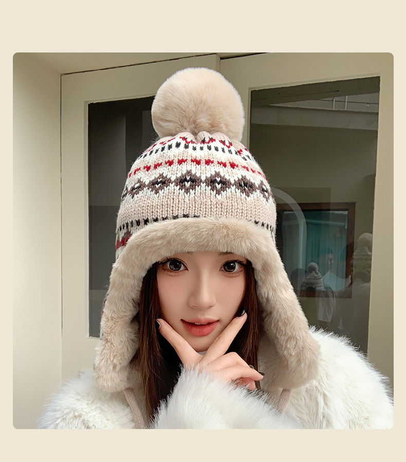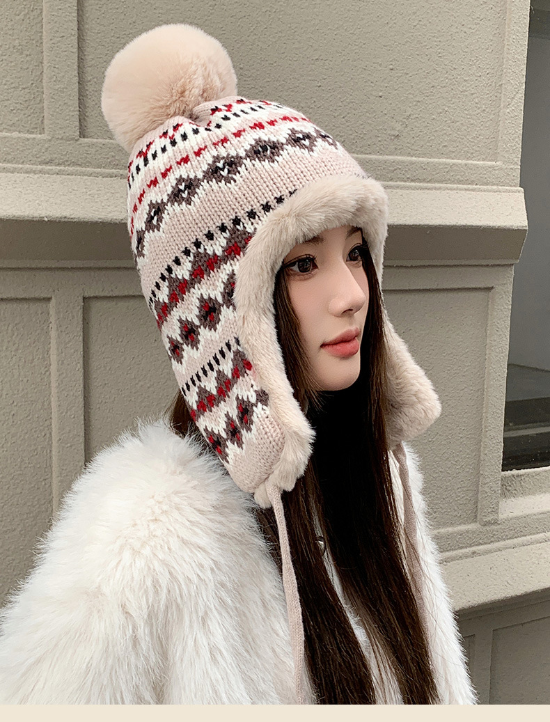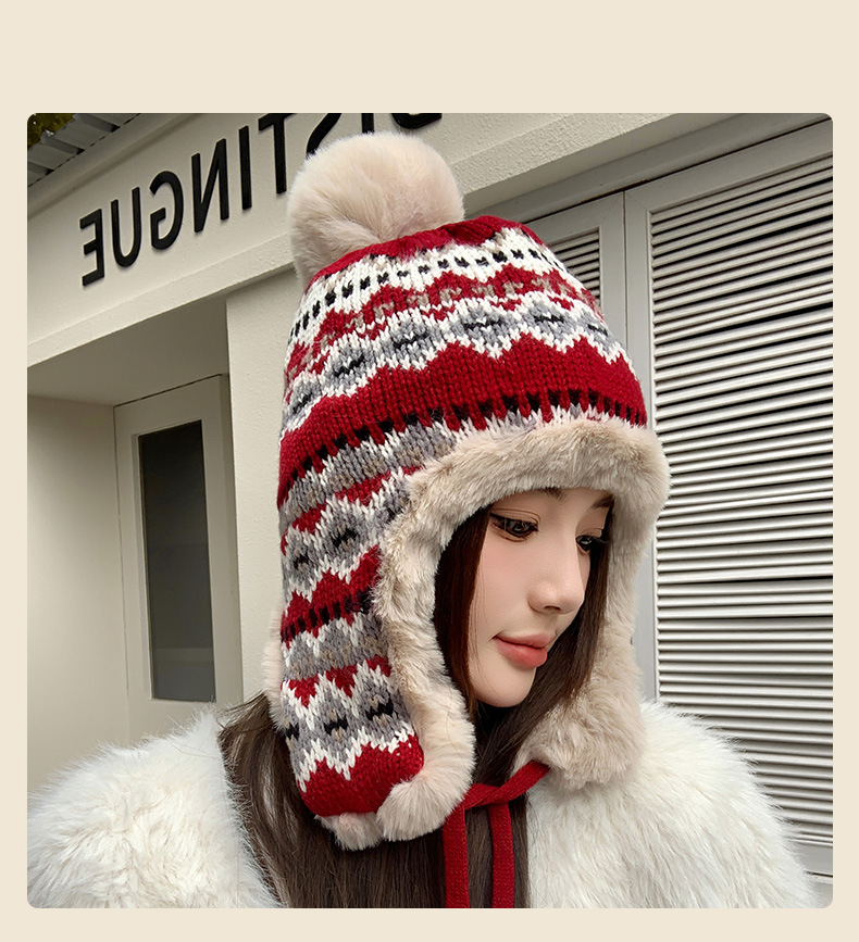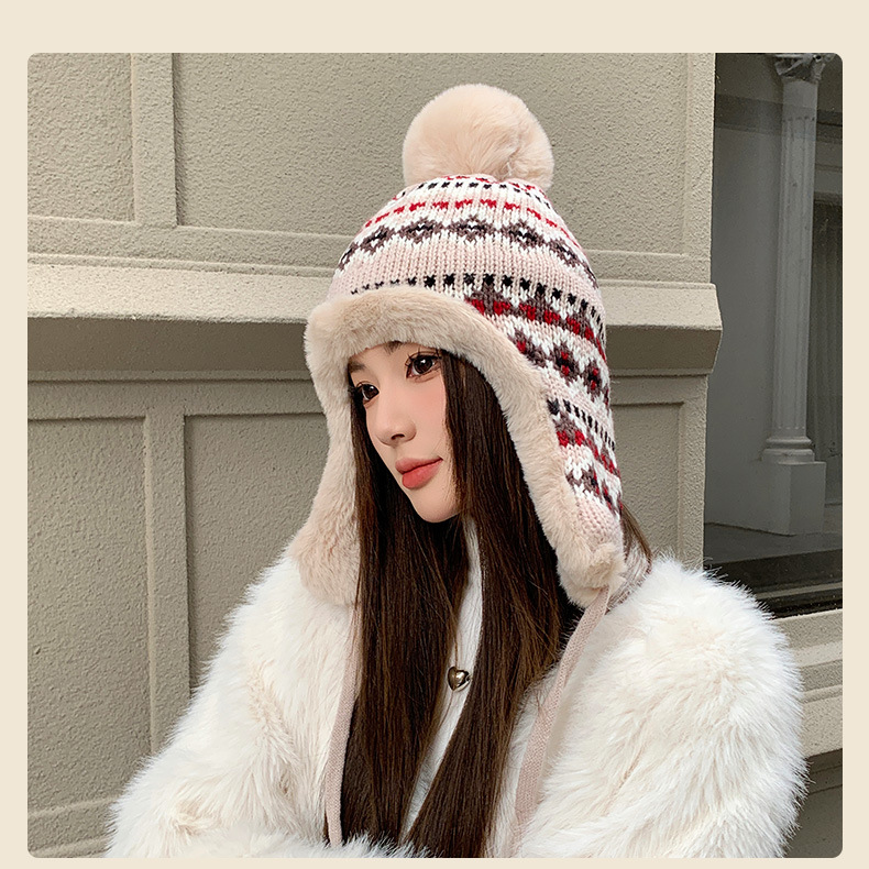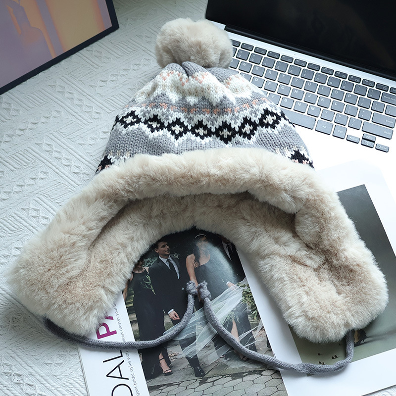 기모 두꺼운 양모 모자 여성의 가을과 겨울 한국 스타일 얼굴 작은 따뜻한 승마 귀 보호자 냉장 큰 머리 레이 펑 모자