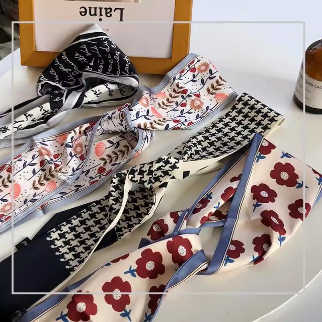 빈티지 프랑스 스타일 긴 장식 리본 한국 헤어 넥타이 실크 스카프 헤어 벨트 얇은 리본 여성의 봄과 가을 헤어 스카프