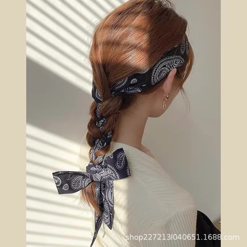 빈티지 프랑스 스타일 긴 장식 리본 한국 헤어 넥타이 실크 스카프 헤어 벨트 얇은 리본 여성의 봄과 가을 헤어 스카프스토어 가기