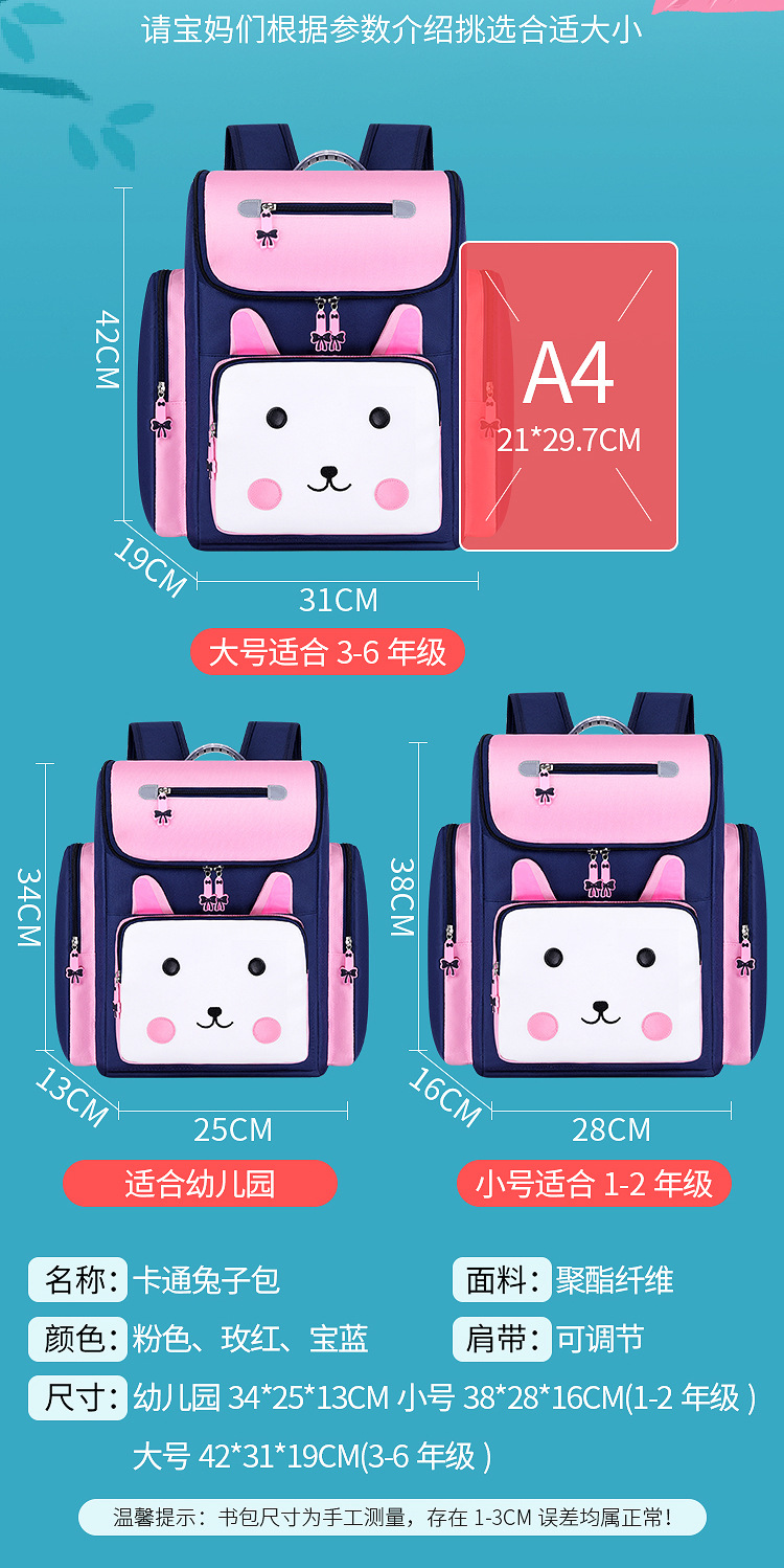 여아 책가방 초등학생 1-2-3-4-5-6학년 어린이 백팩 유치원 3-6세 경량 가방