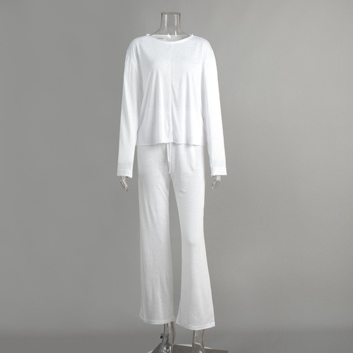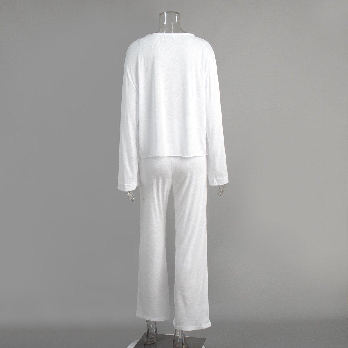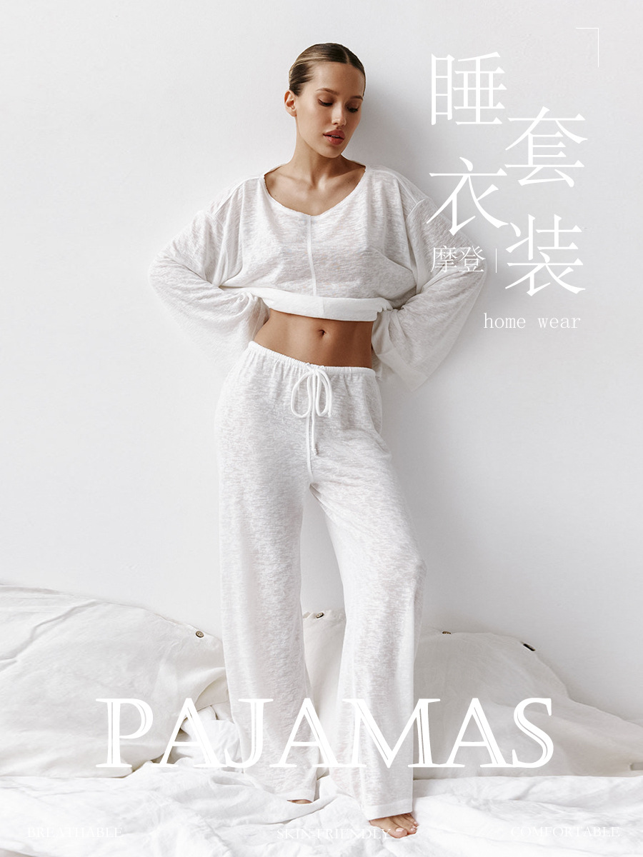 국경 라운드 넥 긴팔 레이스 업 바지 잠옷 세트 가을 새로운 레이온 잠옷 여성을위한 대외 무역 홈웨어스토어 가기